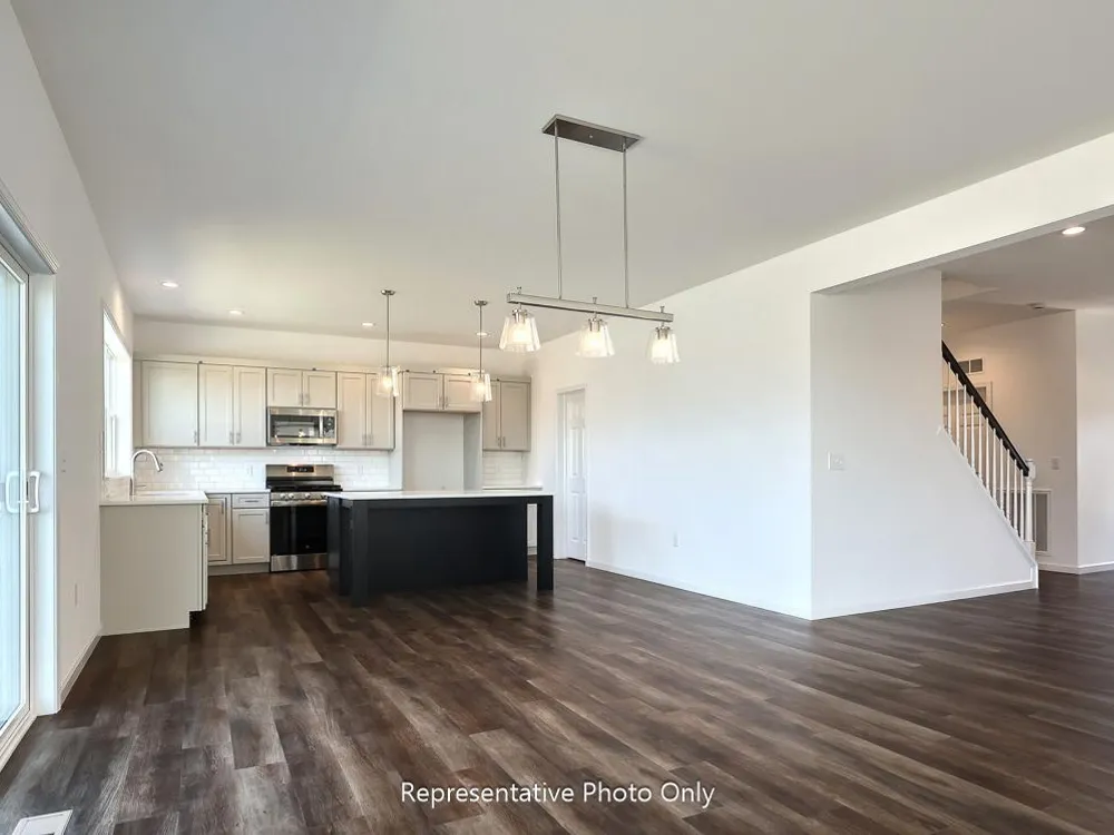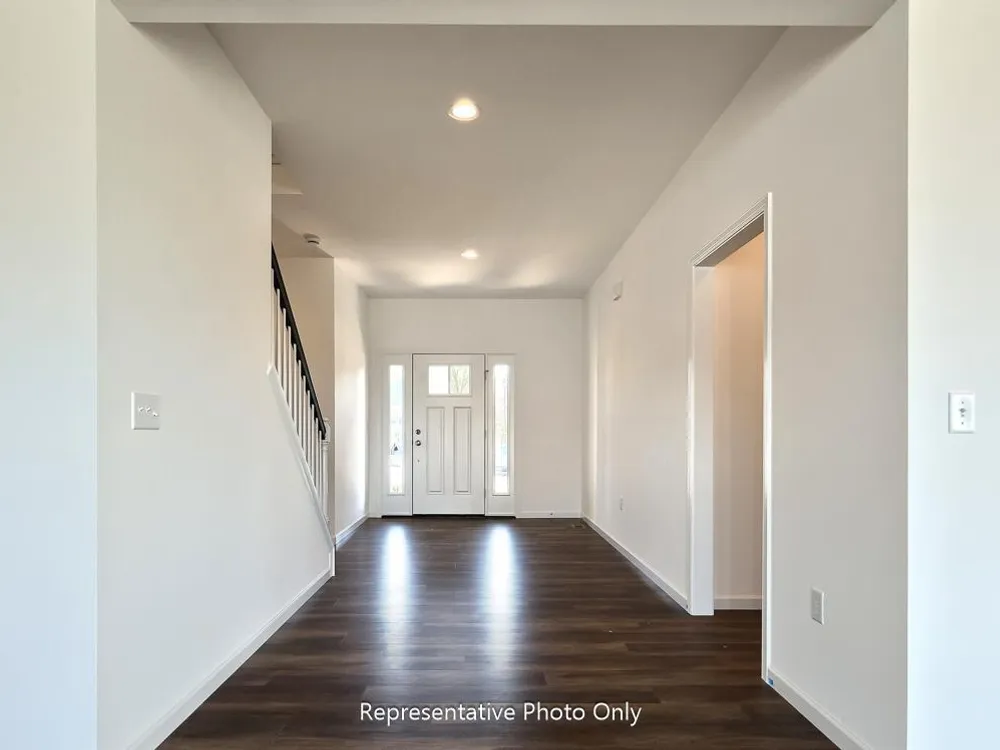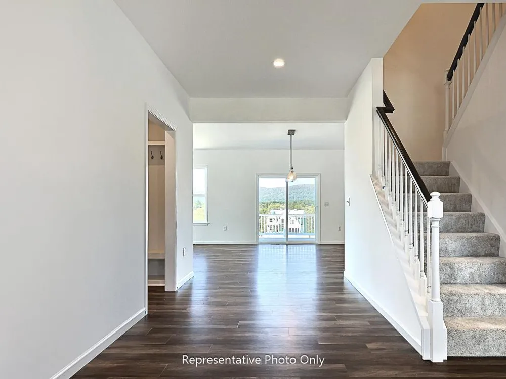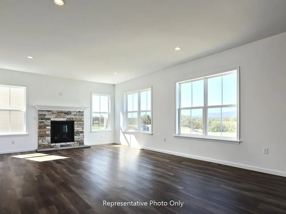 This thoughtfully designed 2-story home with 5 bedrooms, including one on the first floor, features 9’ ceilings on the first floor and luxury vinyl plank flooring throughout the main living areas. The 2-car garage with an extra storage area opens to a mudroom complete with built-in lockers. The kitchen is well-equipped with stainless steel appliances, quartz countertops, a tile backsplash, and a large center island and pantry. The dining area provides access to a screened in, covered patio with plenty of privacy and the family room is warmed by a gas stone fireplace. On the second floor, the owner’s suite includes a private bathroom with a tile shower, double bowl vanity and an expansive closet. Adjacent to the suite are 3 additional spacious bedrooms with large closets, a full bathroom, laundry room and loft space.