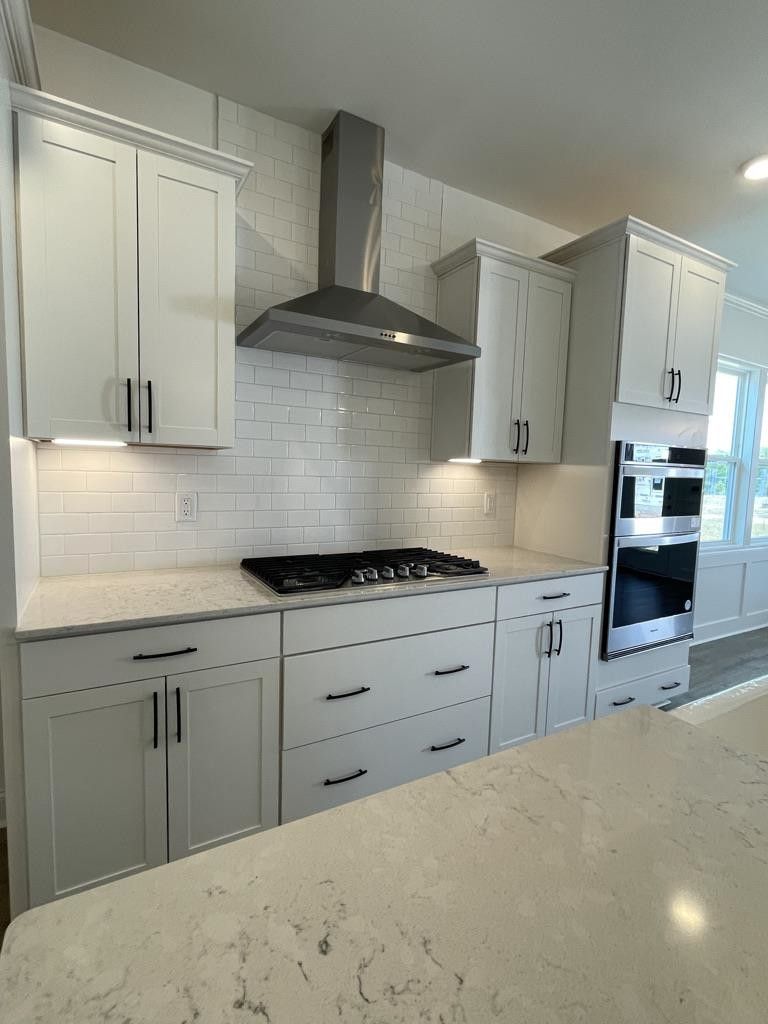 Welcome to Clayton's Premier Active Adult Community: The Walk at East Village. Sycamore D - This is the same plan as our model so come see it decorated! Kitchen boasts upgraded cabinets, a gas cooktop, hood vent, wall oven, microwave and quartz countertops. Primary bath has a zero entry shower for easy access. Enjoy this amenity rich 55+ community with pool, clubhouse, pickleball courts, putting green, walking trails and much more. [The Walk at East Village] [Sycamore]