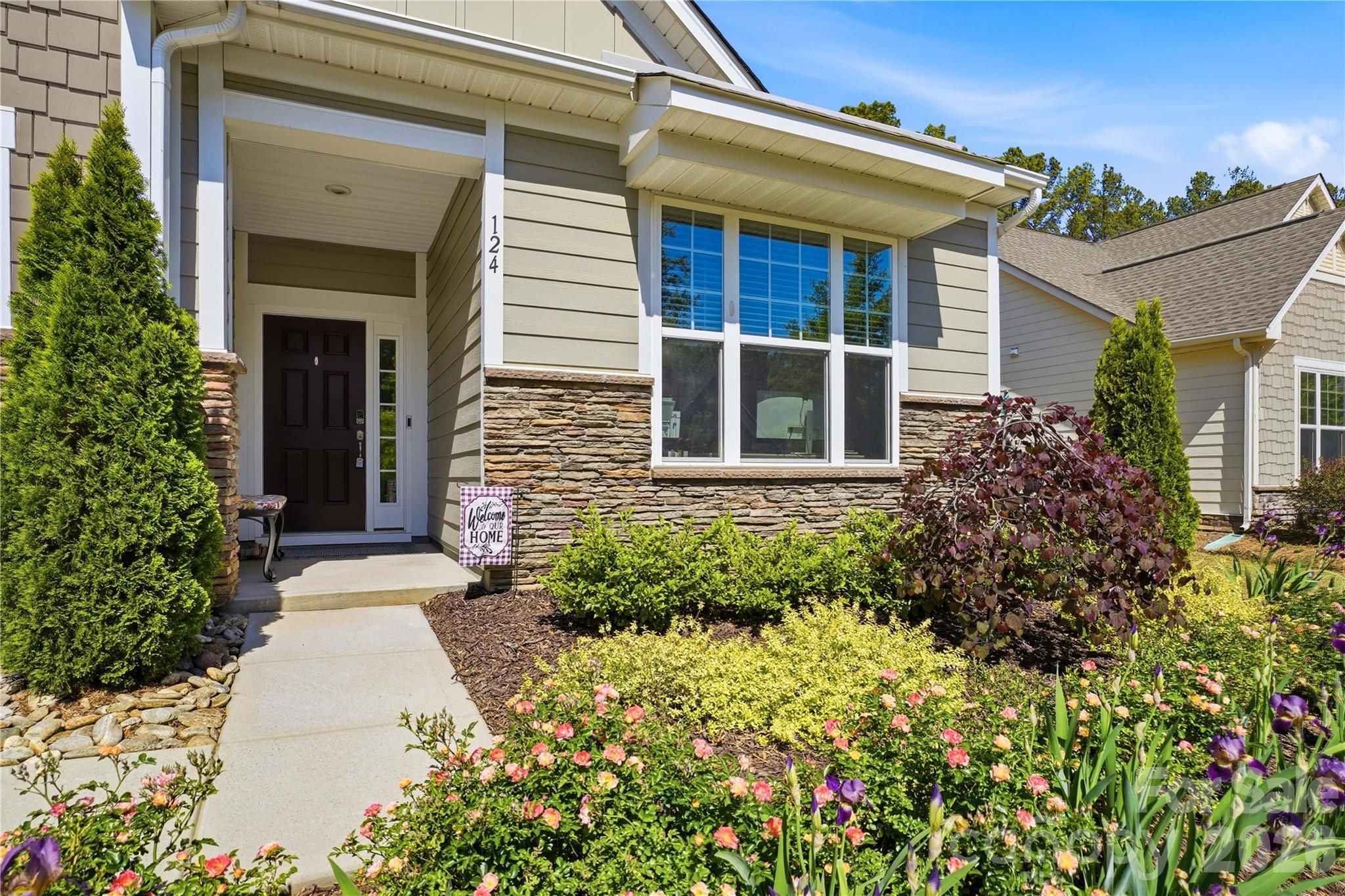 Step into this beautifully appointed 4-bedroom, 3-bath home in a lakefront 55+ community, offering well-maintained upgrades and refined finishes throughout. The main level features engineered hardwood flooring throughout and fresh interior paint (4/2026), with carpet in the secondary bedrooms and upstairs, creating a warm, cohesive, and updated feel. The Great Room showcases a linear fireplace, crown molding, and in-ceiling surround sound, creating a comfortable yet elevated living space that flows seamlessly into the all-season sunroom. The kitchen is designed for both everyday living and entertaining, featuring a large center island, gas cooktop, double ovens, stainless steel appliances, quartz countertops, soft-close cabinetry, pullout shelving, and a Container Store pantry. The primary suite offers a private retreat with a sitting area and access to the sunroom, a spacious walk-in closet, and a spa-inspired bath with dual vanities, quartz countertops, a glass-enclosed shower, new mirrors, and new carpet in the primary closet. Upstairs provides exceptional flexibility with a large loft, additional bedroom, and full bath. Outdoor living is equally impressive with an extended paver patio and a StruXure motorized pergola complete with lighting, fan, heaters, and rain sensor for year-round enjoyment. The exterior has been freshly painted (4/2026), further enhancing the home’s curb appeal and low-maintenance appeal. Additional features include a whole-house Generac generator, radon mitigation system, EV Level II charger, Ring doorbell, blinds and ceiling fans throughout, garage storage racks, and attic shelving. Residents enjoy a resort-style, amenity-rich lifestyle with lake access, pool, pickleball and tennis courts, walking trails, fitness center, arts studio, dog parks, and a vibrant social calendar, all conveniently located near shopping, dining, I-485, Charlotte Douglas International Airport, Uptown, and medical facilities.