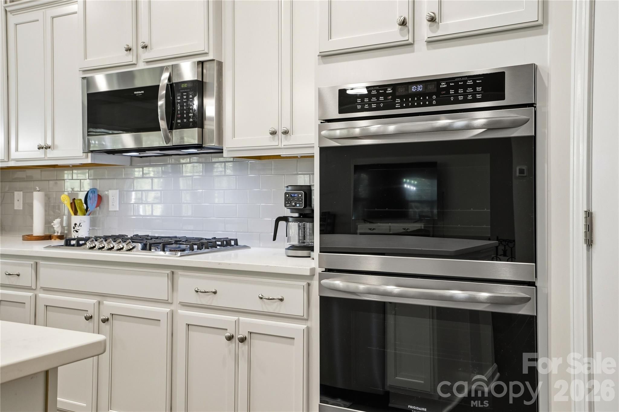 - Dishwasher, Disposal, Double Oven, Electric Water Heater, Exhaust Fan, Filtration System, Gas Cooktop, Microwave, Plumbed For Ice Maker, Self Cleaning Oven