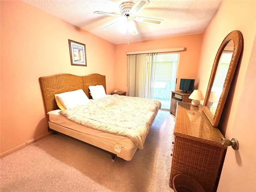 This clean & bright CORNER 2 bedrm, 1.5 bath furnished condo is PRICED RIGHT & ready for you to MAKE IT YOUR OWN! Located on the 2nd flr of a 2 story bldg, this unit features tile flrs in dining room/kit, carpet in liv rm & bedrms, primary bath w/tub/shower combo & glass shower doors & ceiling fans in every room. The encl patio has roll up shutters, ext storage closet & overlooks a nice garden view! Walking distance to pool & tennis! Bldg has a BRAND NEW ROOF! Come enjoy RESORT STYLE living in this gated community w/24 hr sec, free busses, pools, tennis, pickleball, putting green, cafe, BBQ area, an amazing CLUBHOUSE w/movies, shows, indr/outdr pools, gym, sauna, theater, classes, clubs, billiards Located min to beach, dining, shopping & hwys! YOU WILL LOVE LIVING HERE! Assoc. Claims 55+