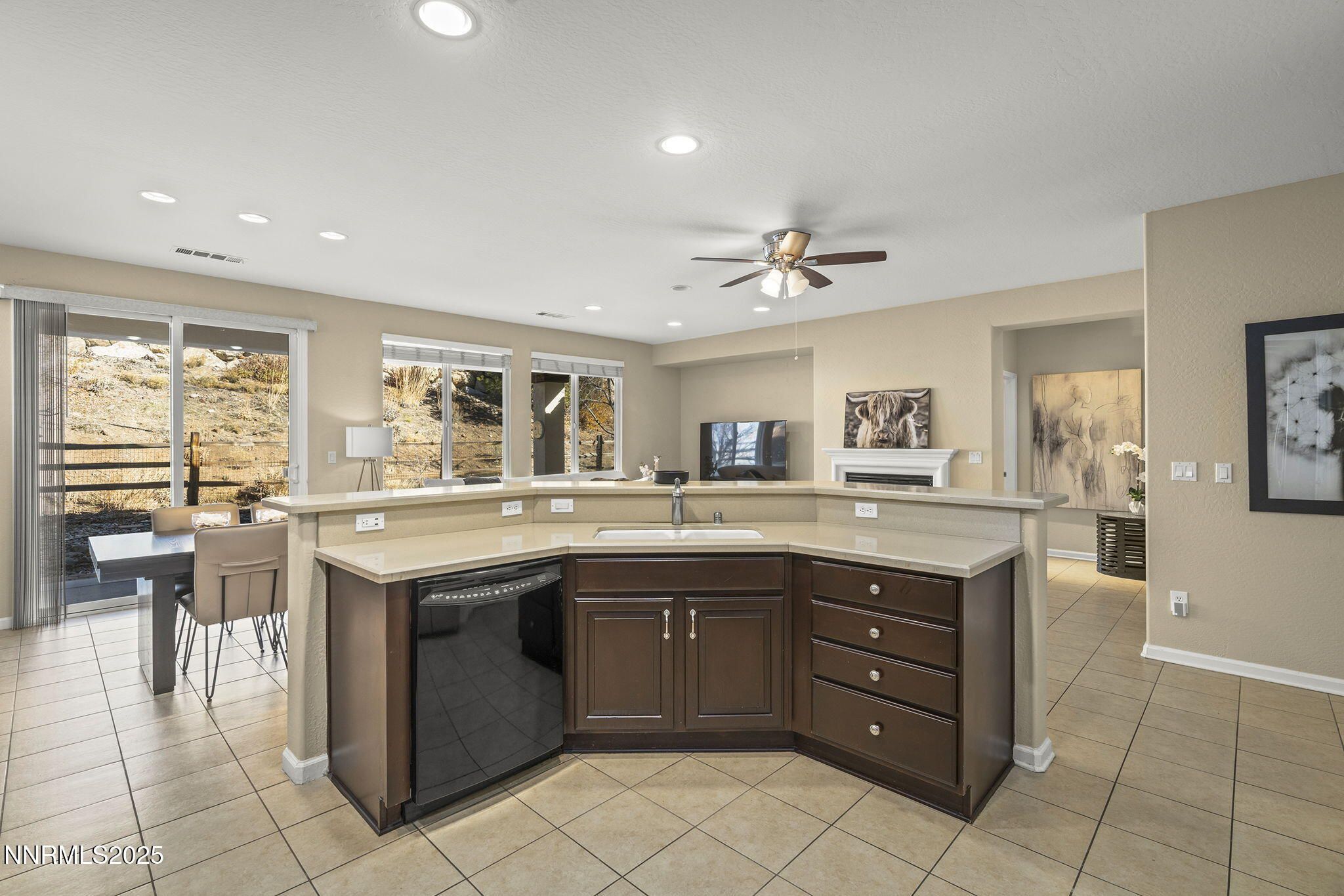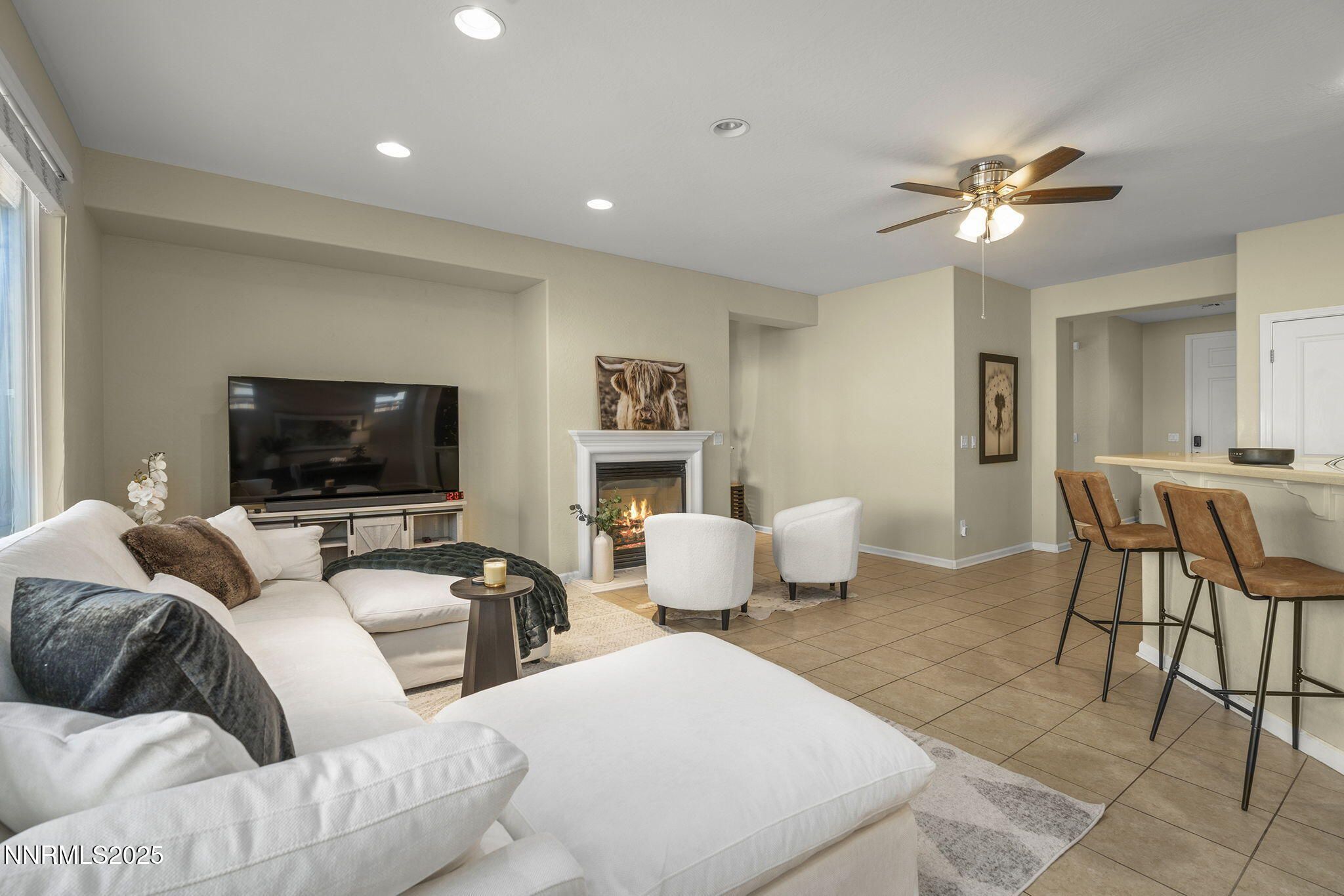 Discover the popular Northstar model in Sierra Canyon—a beautifully maintained 2-bed, 2-bath home with an additional office/den and a desirable south-facing driveway that helps melt snow with ease. Step inside to find tile flooring, newer carpet, gas-log fireplace, ceiling fans, and an inviting living space that flows into an upgraded kitchen featuring rich walnut-finished cabinetry, upgraded appliances, double ovens and plenty of storage. The spacious primary suite offers a bay window, dual-vanity bath with jetted tub, and a large walk-in closet, while the guest bathroom also enjoys upgraded vanity and flooring. Outdoor living shines with a covered patio and welcoming front courtyard, perfect for enjoying Reno's abundant sunshine. Added bonuses include solar panels and a well-designed 2-car garage. Located in the premier 55+ Sierra Canyon community, residents enjoy exclusive access to the Aspen Lodge, complete with a state-of-the-art gym, indoor pool, spa/hot tub, billiards room, library, indoor walking track, fire pits, and a vibrant schedule of social activities. Outdoor enthusiasts will appreciate the tennis and pickleball courts, golf, and miles of scenic walking trails. This is resort-style living at its finest.