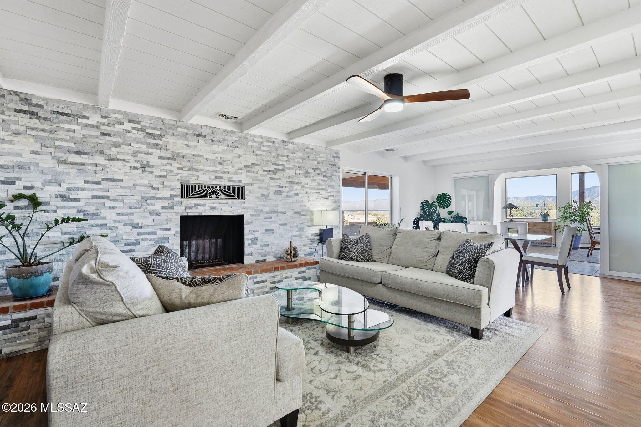 Spectacular views!! Beautiful and fully remodeled in 2025 2 bedroom 2 bath main home with attached 1 bedroom/1 bath fully self contained mother in-law apartment. Roomy master bath and walk-in closet. New Kitchen and appliances with large breakfast bar into the great room, ledger stone fireplace, dining room/area and vaulted solarium with among the finest mountain-range views in Green Valley. Wrap around covered porch with open brick patio and views, views, views! 3 garage with a storage room. Located on just over 1 acre for privacy. 55+ community, has GVR. in addition, mature landscape with several orange, tangerine and cocktail grapefruit. Away from freeway and traffic noise or overhead power.