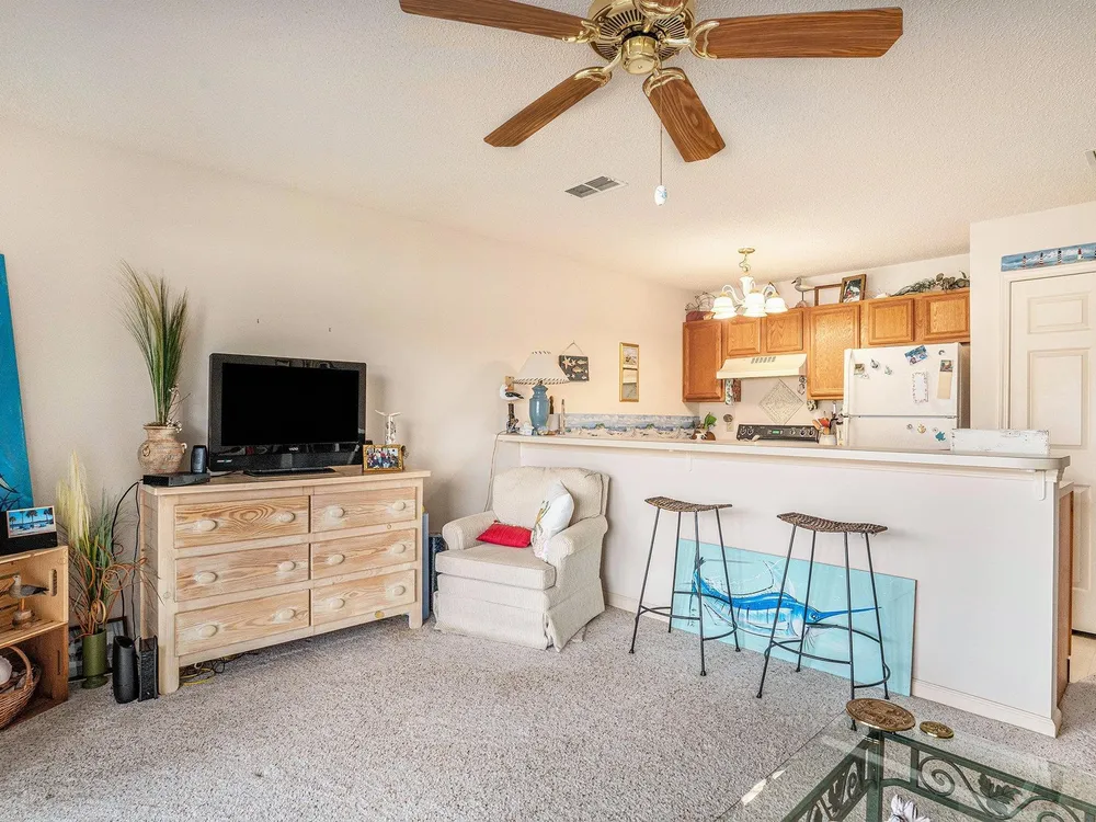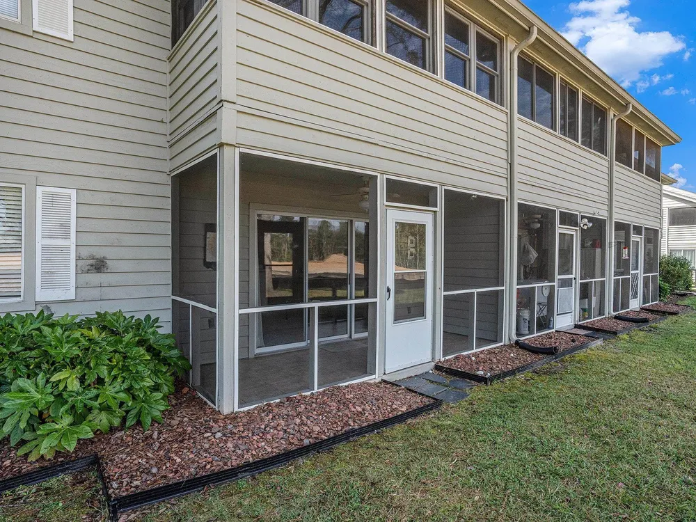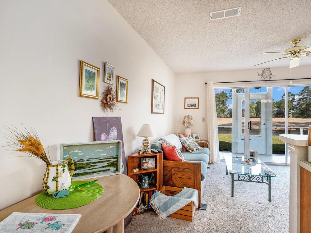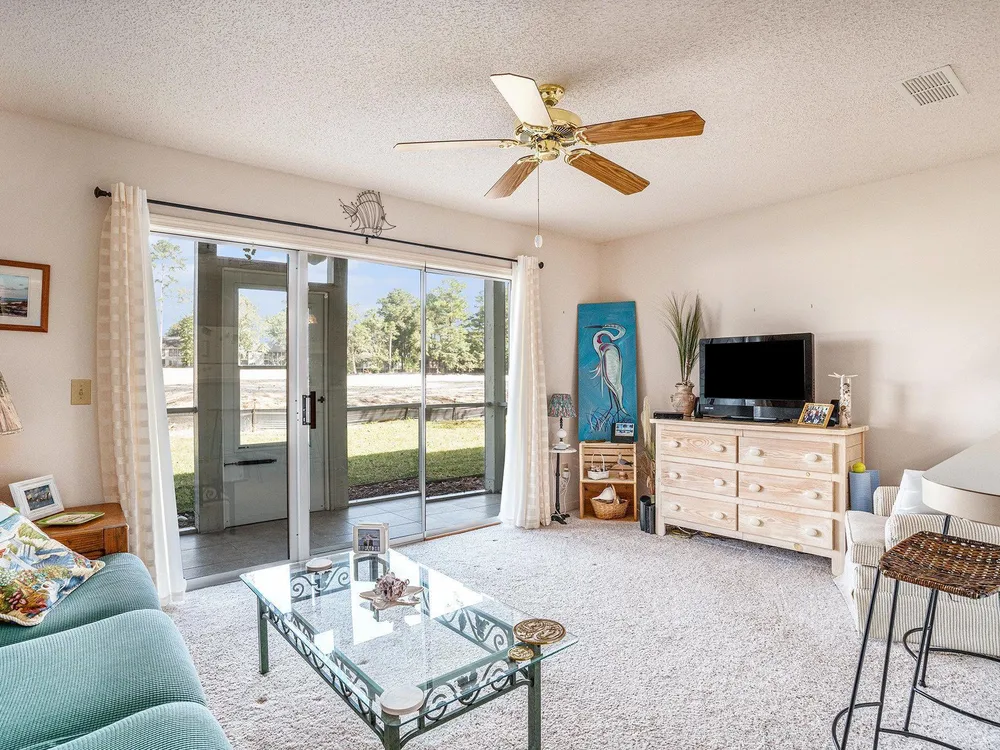 Looking for your dream vacation getaway? This is it! Located at Green Tree in the popular Island Green community, this immaculate first floor 1 bed 1 bath condo has so many great features, is just steps from the pool, and is move in ready! Wonderful open floor plan boasts a spacious living room with ceiling fan and direct access to the rear porch and a dining area adjacent to the fully equipped kitchen with abundant cabinet and counter space, double sink, an extended breakfast bar and a pantry. The nice sized bedroom has a ceiling fan, paneled accent wall and plenty of closet space and the bath has tile floors, a vanity, and tub/shower. There is also a stack washer and dryer in the unit. The expansive screen porch features tile floors and a ceiling fan and is the perfect spot to enjoy your morning coffee or relax with cocktails at the end of the day. HOA dues include water/ sewer, trash, outdoor pool, landscaping, pest control, Spectrum cable/internet, and exterior building insurance. Great location just minutes from shopping, dining, golf, the airport, Market Common, and, best of all, the beach and everything the Grand Strand has to offer in amusements and entertainment! Perfect as a primary home, private coastal retreat or as a great investment property as both short- and long-term rentals are permitted. This is a fantastic opportunity! Don't miss it! Make an appointment to view this charming condo today!