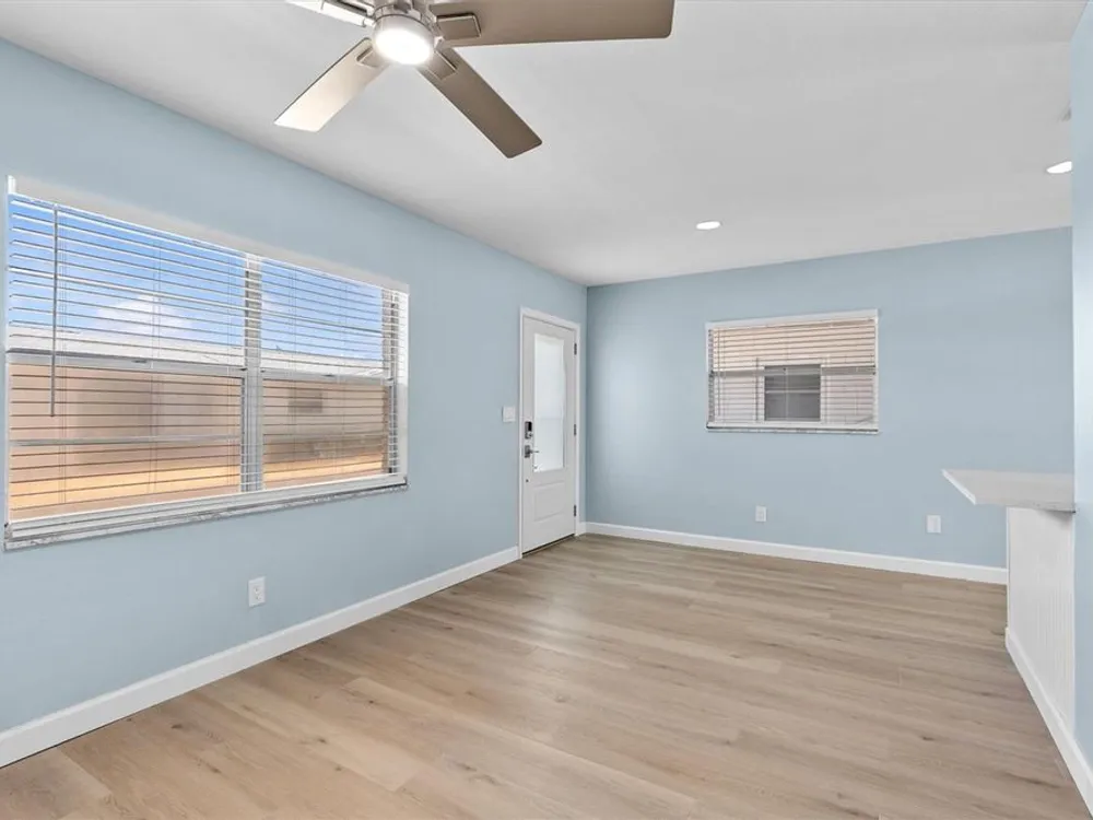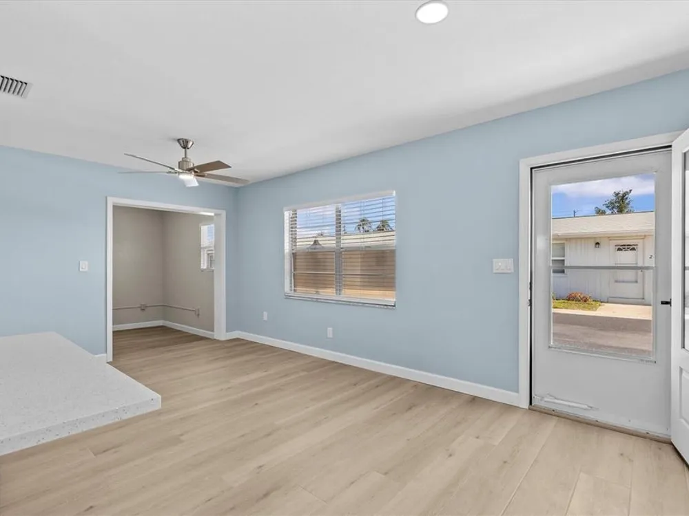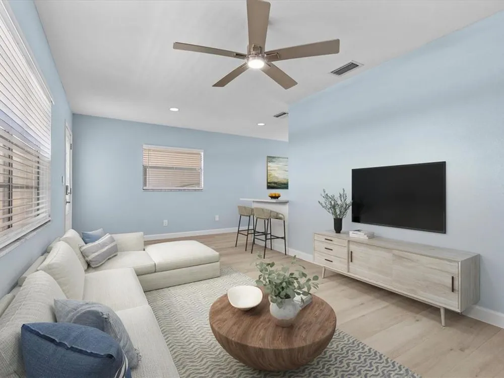 One or more photo(s) has been virtually staged. Seller is willing to Pay HOA Monthly Fee TILL END OF YEAR - Priced to sell, in this NON Land Lease community and NOT a Co-Op - Buy CONFIDENTLY - Here’s your opportunity to own a maintenance-free, beautifully renovated villa in the warm and welcoming 55+ community of Seminole Hill Villas. Ideally located just 7 minutes from Indian Shores Beach and only 4 minutes from major shopping and dining options including Publix, Fresh Market, HomeGoods, Talbots, Outback Steakhouse, Miller’s Ale House, and more, this home combines convenience with coastal charm. This stylish, move-in ready condo features a covered carport and a private laundry room with stackable washer/dryer hookups. Inside, you’ll be welcomed by an abundance of natural light and brand-new luxury vinyl flooring throughout. The home offers 640 heated square feet, its smart and open layout feels surprisingly spacious. The living room flows into a versatile den area, ideal for a home office, guest space, or custom storage. The kitchen has been tastefully renovated with soft-close shaker cabinetry, pull-out drawers, quartz countertops, stainless steel appliances, a gas stove, a sleek new sink with a produce washing station, and a generous pantry that leads toward the owner’s suite and bathroom. Major system updates include a new HVAC system and water heater, both installed in 2019, and a brand-new electrical panel, offering added peace of mind and energy efficiency. The updated bathroom features a walk-in shower with dual shower heads, modern low-maintenance tile, and a clean, stylish vanity. Throughout the home, new interior doors and brushed nickel fixtures add a cohesive, high-quality finish. The owner’s suite is well-sized and includes a deep closet for ample storage. Seminole Hill Villas is a true community, with owner-occupancy only meaning rentals are not permitted, encouraging long-term friendships and neighborly connections. Amenities include a clubhouse with a kitchen and regular social events, an exercise room, a game area, coin-operated laundry, an outdoor clothesline, shuffleboard courts, and a gated pool with plenty of lounge chairs and tables. The HOA fee is $453/month and includes water, sewer, trash, cable, internet, property taxes, and exterior and community maintenance, offering excellent value and worry-free living. Don’t miss this rare opportunity to own a fully updated villa in a quiet, friendly community just minutes from the beach!