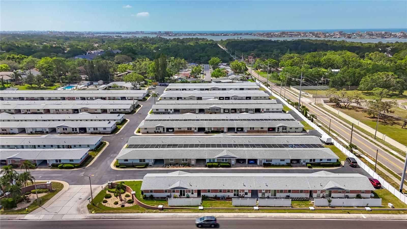 One or more photo(s) has been virtually staged. If you are looking for a quiet & relaxing lifestyle in sunny Florida, you found it here in the Seminole Hill Villas. With a bright open floor design that has windows in every wall, the kitchen has been remodeled with new cabinets & countertops, a built-in pantry with lots of storage space. The bathroom has also been nicely remodeled and UPDATED WITH HANDICAP ACCESSIBLE ROLL-IN SHOWER with wall to wall tile. The modern wood-look tile floor in the common areas and high-grade waterproof floating floors in the bedrooms with walls freshly painted keeps the maintenance inside to a minimum. This reinforced masonry block building has BRAND NEW HURRICANE IMPACT WINDOWS AND DOORS IN ALL THE OPENINGS. Enjoy the convenience of driving right up to your attractive home into your attached private carport with attic storage available. You will have a private laundry room and a patio just outside your new sliding glass doors from your dinette, your own yard that you can plant flowers and design as you please or simply allow the maintenance crew to maintain it as is. The HOA maintains the exterior building and grounds meticulously and regularly and just installed a NEW ROOF over your building including the required hurricane tie downs. Enjoy the well maintained heated swimming pool, shuffleboard courts & clubhouse with pool table and community activities with your friendly and quiet neighbors. The clubhouse includes a resident only laundry and exercise facility and more. The low maintenance fees make this 55+ community a great and sought after location that is high and dry with NO FLOOD INSURANCE needed It is close to the beach, boating, fishing and lovely Seminole and Boca Ciega Millennial parks and just blocks to the Seminole City Center with entertainment, grocery stores, recreation center & restaurants. No renters are allowed in the enclosed community. Service pets are welcome. With a motivated seller, you want to make this your home before someone else takes it.