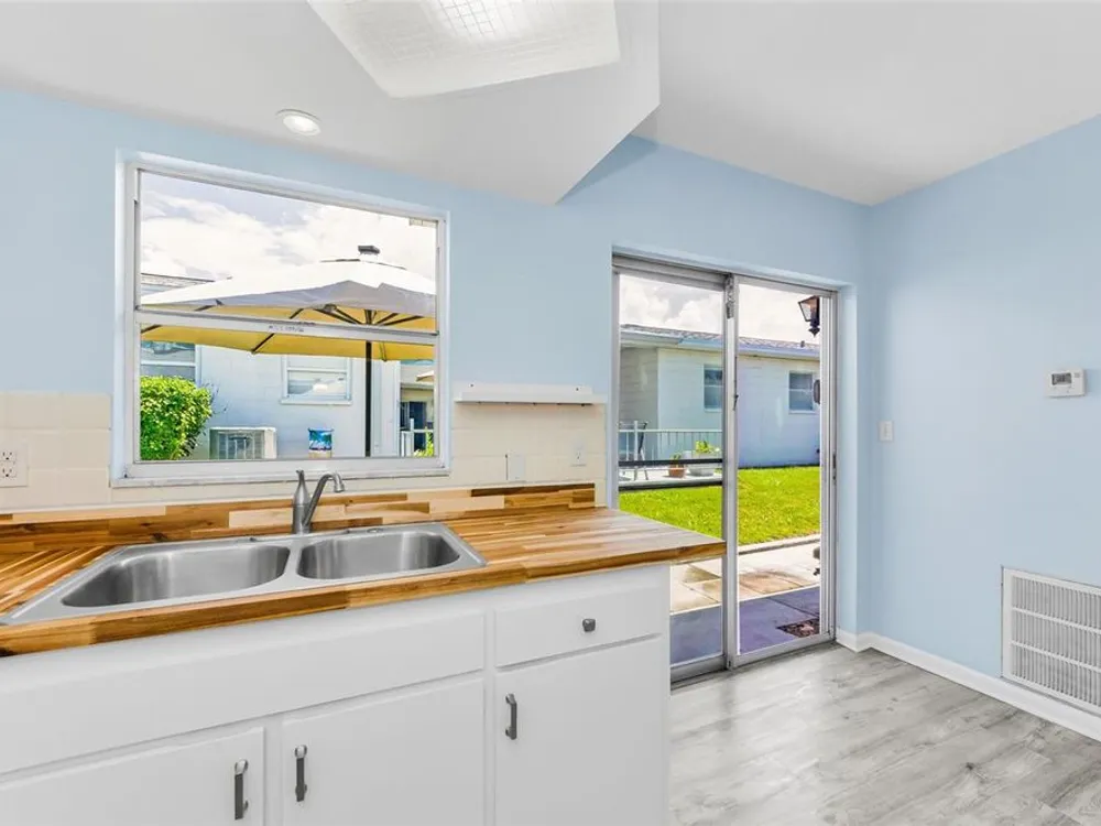 Welcome to your perfect coastal retreat! This beautifully updated 1 bedroom, 1 bath condo with a versatile bonus room offers comfort, style and convenience-all just 10 minutes from the Gulf’s stunning sandy beaches and 5 minutes from a variety of shopping, dining, and entertainment options. Located in a non-flood zone, you can enjoy peace of mind. Step inside and you’ll immediately notice the bright, open layout and modern updates that make this home feel fresh and inviting. The updated kitchen features stainless steel appliances and brand new butcher block countertops. The bathroom has been renovated with elegant subway tile and stylish fixtures including a hand rail and built-in shower seat for accessibility. The bedroom features a spacious closet and brand new luxury vinyl flooring. Appreciate the versatility of the bonus room, which can be used as an office or even a cozy second bedroom. Enjoy sunny Florida days on your outside patio area. The condo also features a dedicated utility room with washer and dryer and an adjacent carport. Located in a beautifully maintained and friendly 55+ community, residents have access to many amenities including a swimming pool, clubhouse, shuffleboard courts, fitness area and a library. Don’t miss your chance to own a slice of paradise-schedule your private showing today!