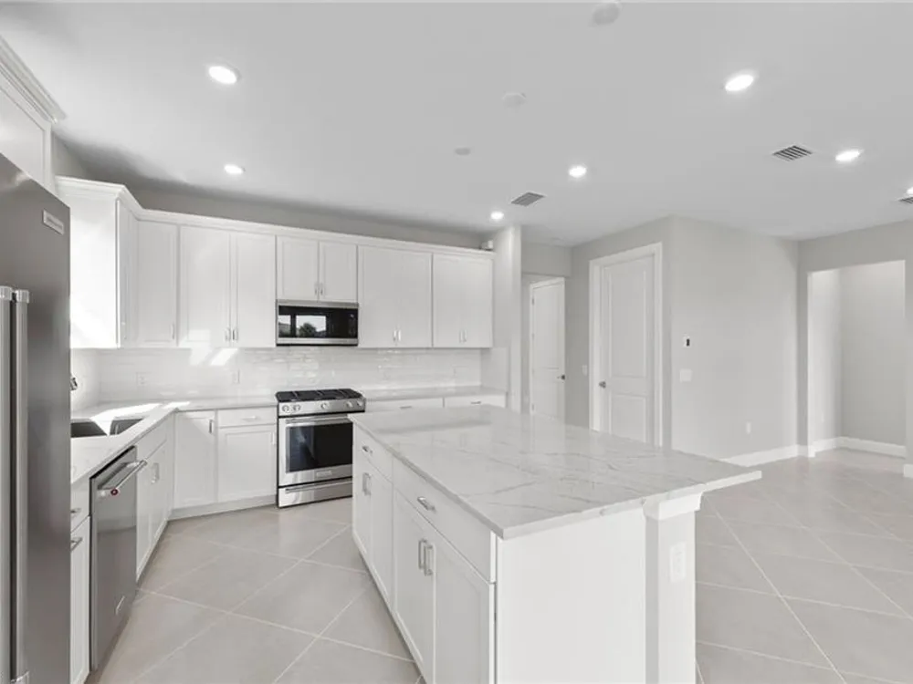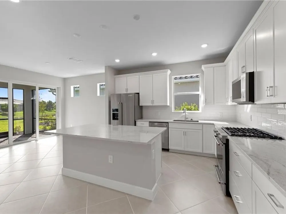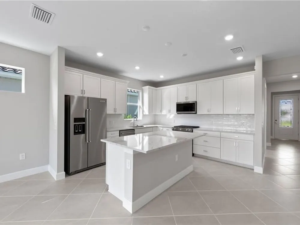 Brand new construction—ready for immediate move-in! This stunning Prosperity floorplan offers 3 bedrooms, 2 bathrooms, and a 2-car garage, thoughtfully designed for modern living. The kitchen features elegant white cabinetry paired with durable Silestone countertops, creating a bright and inviting space. Stylish 22"x22" tile runs throughout the main living areas, while 8' interior doors add a touch of sophistication and spaciousness. Built with quality and longevity in mind, the home includes a tile roof and impact-resistant windows for added security and peace of mind. TerraWalk is a gated community located in Babcock Ranch with a private 8 acres amenity campus featuring internal walking trails throughout the community, pool with spa, fire pit lounge, pickleball courts, tennis courts, bocce ball courts, event lawn, dog park, clubhouse fitness center, exercise studio, locker rooms, card rooms, large community room, catering kitchen, indoor/outdoor social lounge, plus an outdoor bar and grill. . Residents will enjoy expansive green space, abundant amenities, and utility-scale solar generation.