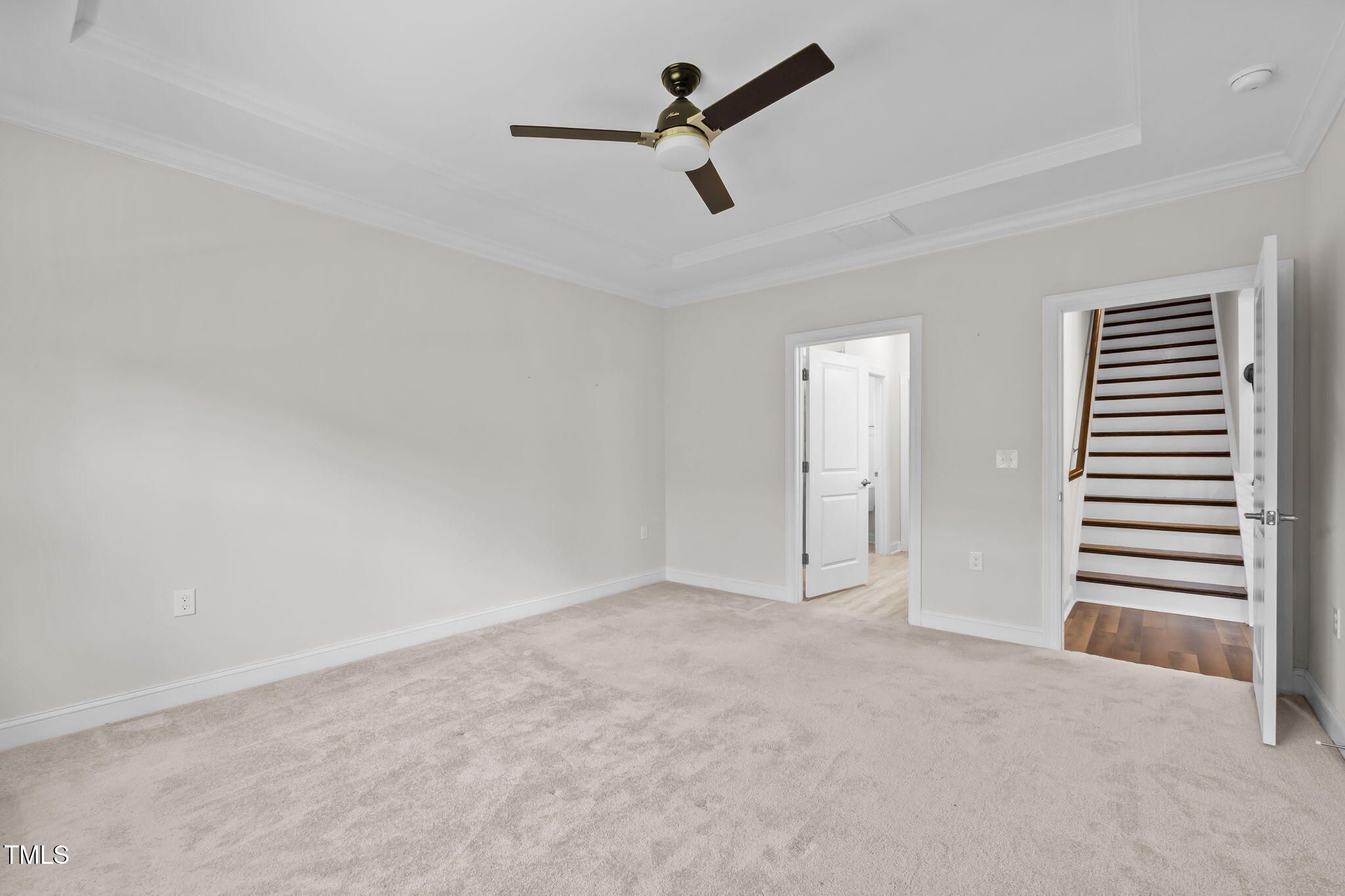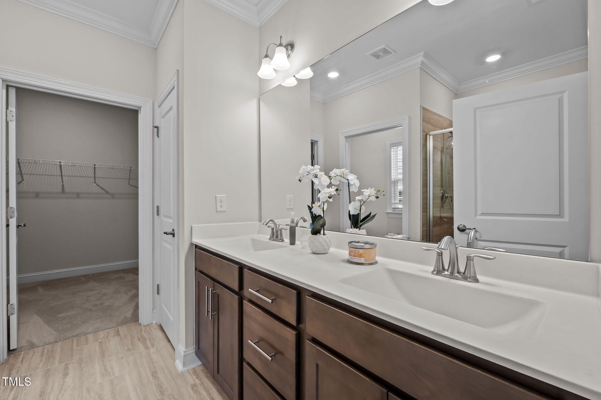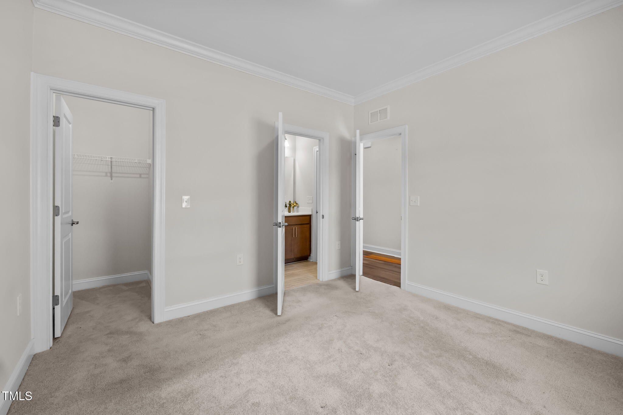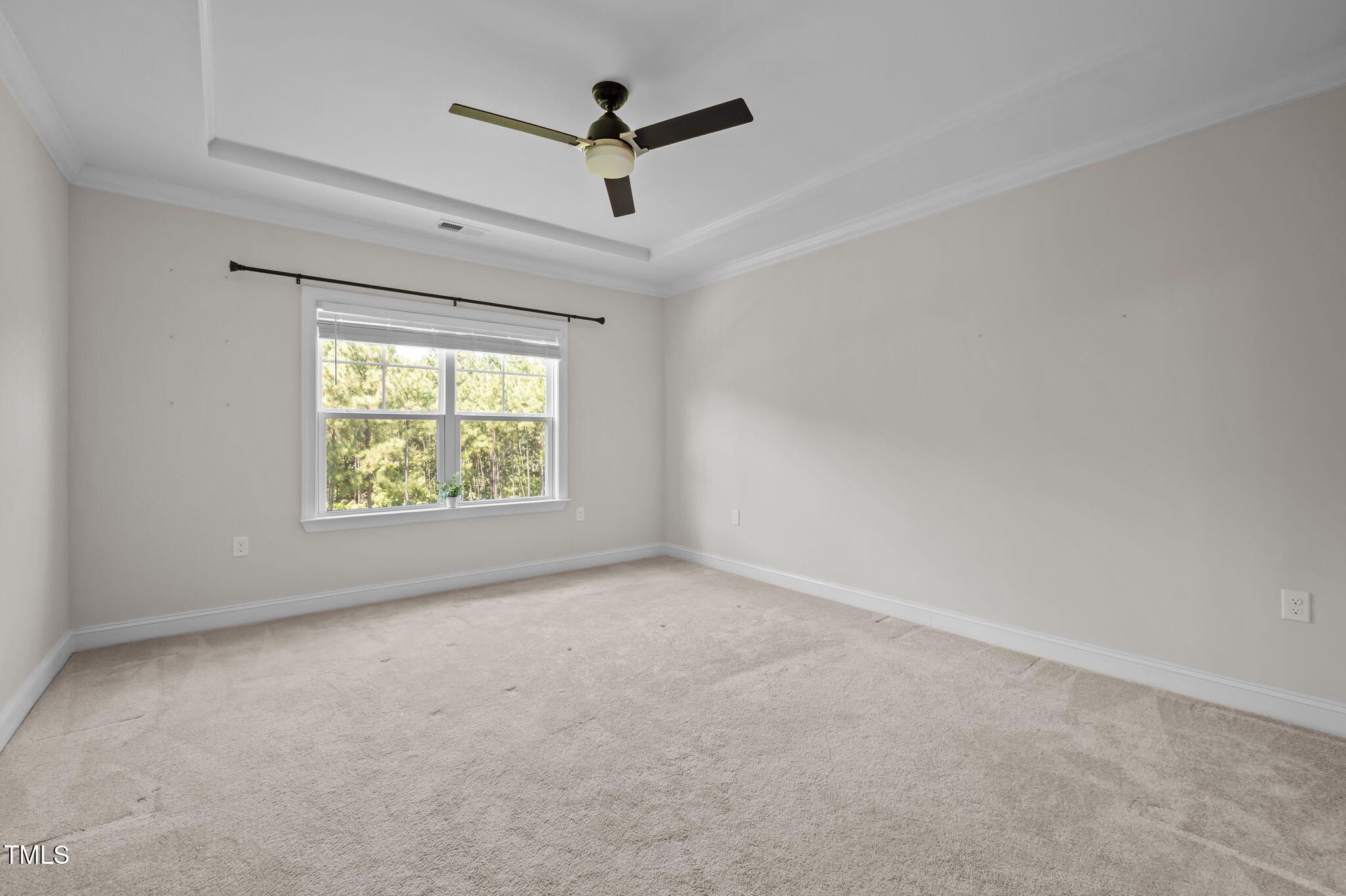 Embrace the Good Life in Fendol Farms - a Premier 55+ Community near Brier Creek Welcome home to peaceful, low-maintenance living in this beautifully maintained, move-in ready retreat in Fendol Farms. Just 2 years old, this 3-bedroom, 3-bath home is perfectly designed for comfort, convenience, and connection. Relax year-round on the spacious screened-in porch and deck, where you can enjoy your morning coffee while overlooking a serene, wooded natural area. This thoughtfully designed home offers main-level living with an open-concept floor plan, high ceilings, and elegant crown molding. The gourmet kitchen is a chef's delight, featuring a large island, gas range, pull-out drawers, granite countertops, and a refrigerator that conveys. The main floor includes two generously sized bedrooms and two full baths. The luxurious owner's suite features tray ceilings, a walk-in closet, dual vanities, and a walk-in shower with a built-in bench. Upstairs, you'll find a versatile loft area along with an additional bedroom and full bath—ideal for hosting visiting family, setting up a home office, or creating a quiet retreat. Enjoy worry-free living with lawn care included and walkable access to the clubhouse and its wide range of amenities: swimming pool, fitness center, billiards room, social clubs, pickleball and tennis courts, bocce ball, dog park, community garden, and more. The home also features a walk-in crawl space offering ample storage, and it comes complete with a brand-new Maytag washer and dryer, as well as the refrigerator. Ideally located just 10 minutes from RDU Airport and close to Brier Creek shopping and dining, this home makes it easy to enjoy the best of the Triangle without the hassle. Schedule your private tour today and discover what it means to truly enjoy your next chapter in Fendol Farms.