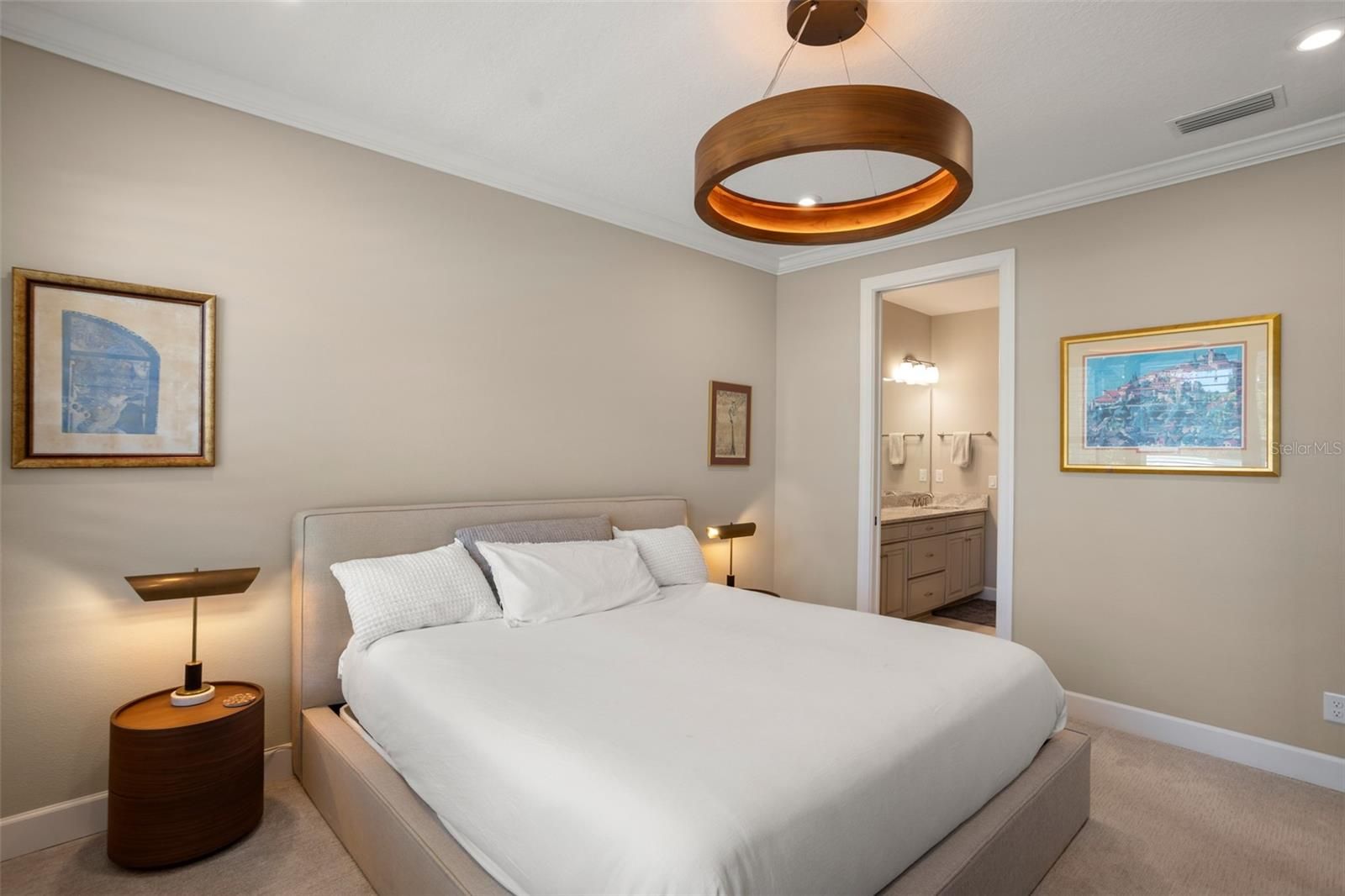 - Built-in Features, Crown Molding, High Ceilings, Open Floorplan, Main Level Primary, Solid-Wood Cabinets, Stone Counters, Thermostat, Walk-In Closet(s), Window Treatments
