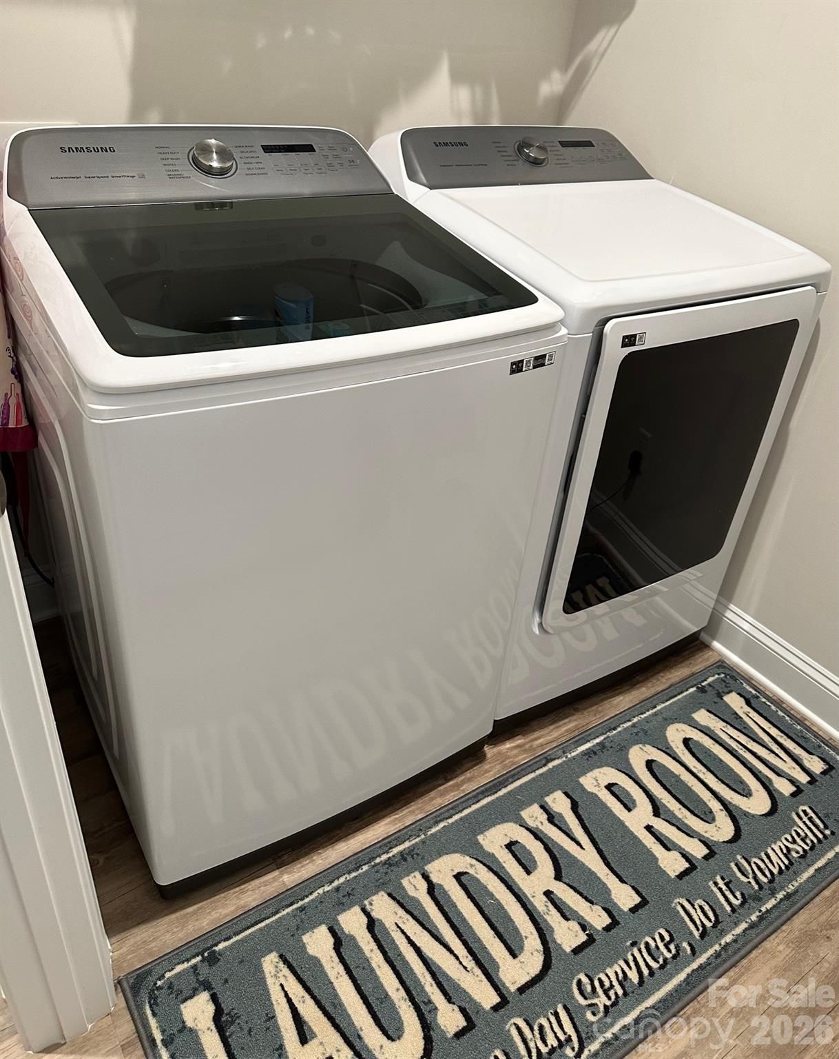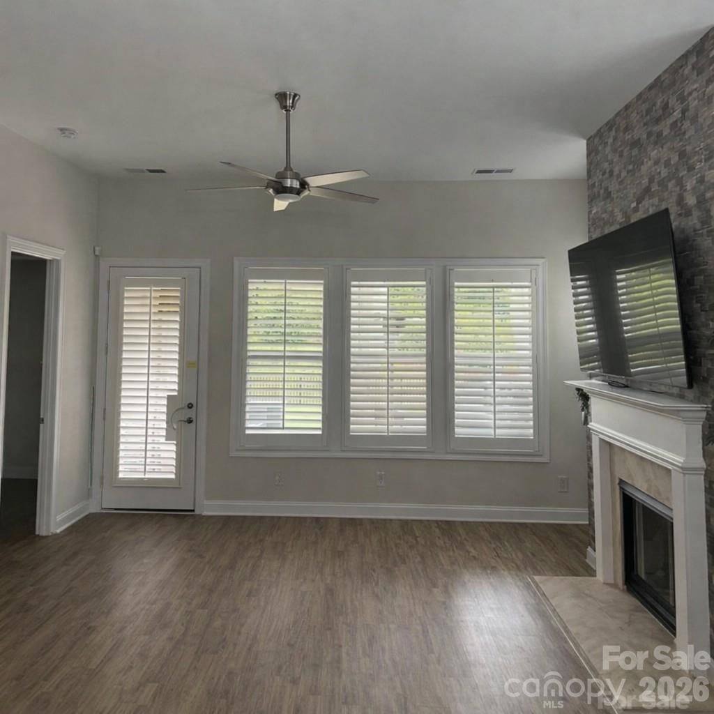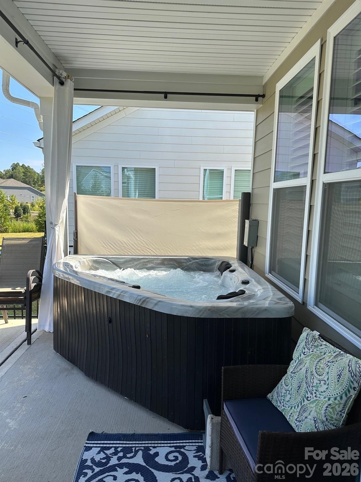 This Kolter built home in 2022 resides in the sought after Cresswind Community. This Ashford floor plan comes 3 bedrooms & 3 full bathrooms and has the extra bonus room upstairs for an In-law suite complete with private bathroom & walk in closet. The Kitchen has been upgraded with stone backsplash, double gas oven, upgraded dishwasher, stainless steel farmers sink and Samsung 4 door with family hub. The dining room flows into family room with gorgeous acrylic glass chandelier with medallion on ceiling. The Family room comes with a Gas Fireplace with remote temperature and faux brick tile to the ceiling including a NEW 75' Smart TV. Master bedroom on first floor with Master bathroom includes glass inlay in shower and dual sinks. Laundry room comes with Samsung Washer/dryer. The whole house has plantation shutters, security system with glass break and RING cameras. A large over sized Fenced in back yard with no neighbors behind you. Sit in your own 3 person jacuzzi with 220 volt wiring with shut off (If you do NOT want it will be removed) while watching football on your outdoor TV. The large extended patio for your entertainment with friends & family. The 17,000 sq ft Club house has indoor pool, Fitness Center, Demonstration Kitchen, Billiards Room, Outdoor resort pool with cabanas, pickleball courts, bocce ball courts and tennis courts and more. Close to new Publix shopping center, close to downtown Charlotte and airport. *** List Agent is Owner