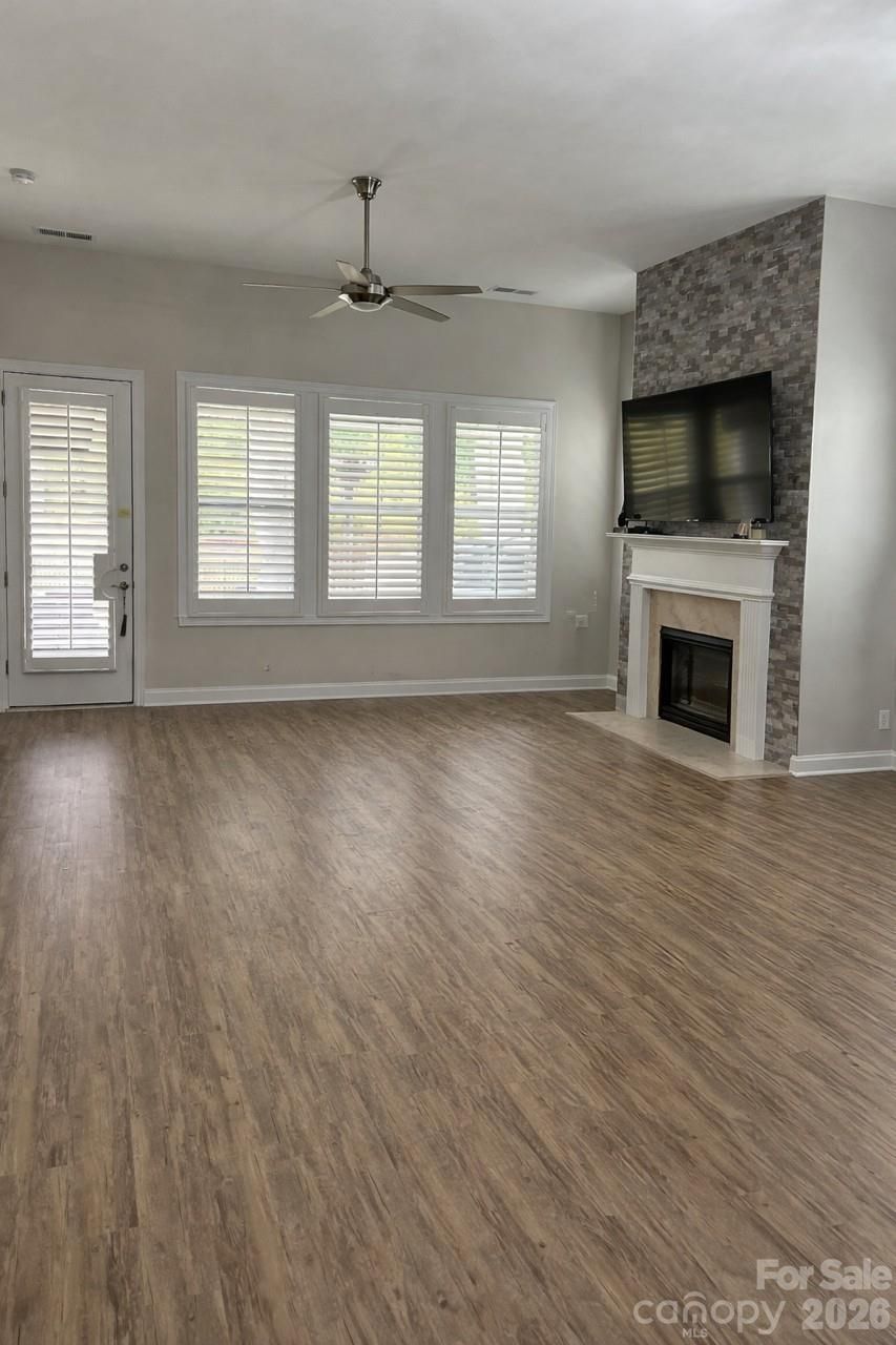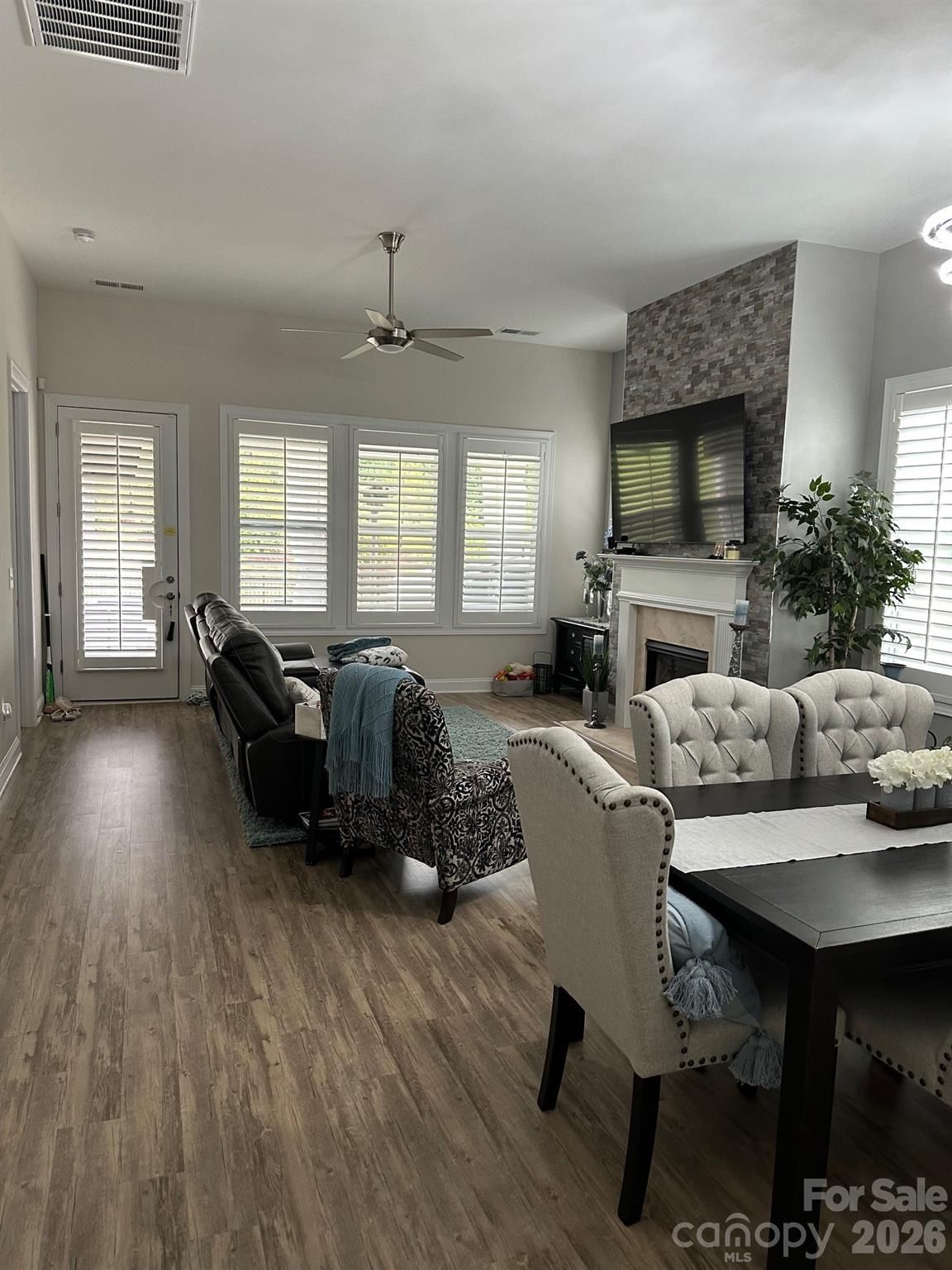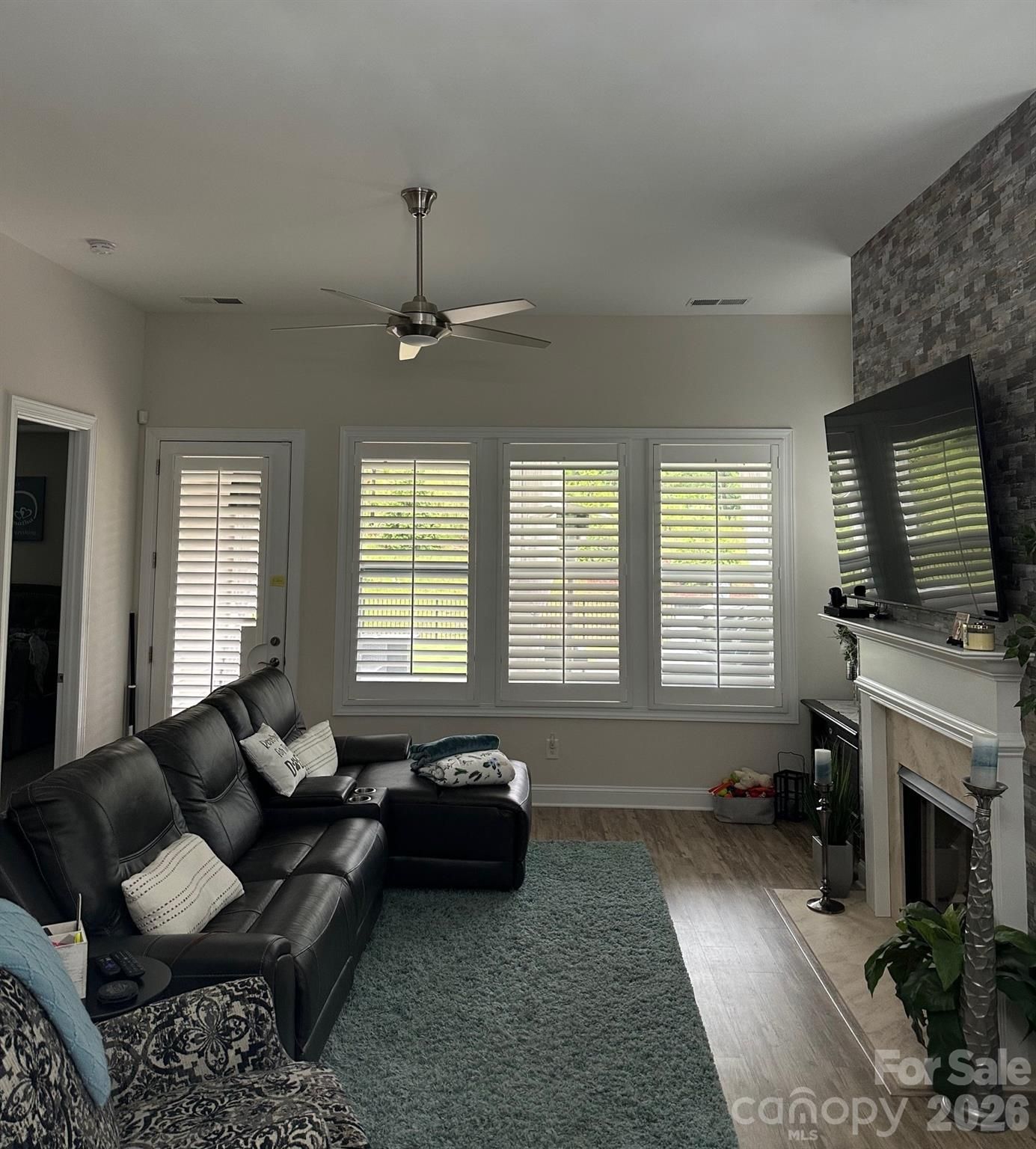 This Kolter built home in 2022 resides in the sought after Cresswind Community. This Ashford floor plan comes 3 bedrooms & 3 full bathrooms and has the extra bonus room upstairs for an In-law suite complete with private bathroom & walk in closet. The Kitchen has been upgraded with stone backsplash, double gas oven, upgraded dishwasher, stainless steel farmers sink and Samsung 4 door with family hub. The dining room flows into family room with gorgeous acrylic glass chandelier with medallion on ceiling. The Family room comes with a Gas Fireplace with remote temperature and faux brick tile to the ceiling including a NEW 75' Smart TV. Master bedroom on first floor with Master bathroom includes glass inlay in shower and dual sinks. Laundry room comes with Samsung Washer/dryer. The whole house has plantation shutters, security system with glass break and RING cameras. A large over sized Fenced in back yard with no neighbors behind you. Sit in your own 3 person jacuzzi with 220 volt wiring with shut off (If you do NOT want it will be removed) while watching football on your outdoor TV. The large extended patio for your entertainment with friends & family. The 17,000 sq ft Club house has indoor pool, Fitness Center, Demonstration Kitchen, Billiards Room, Outdoor resort pool with cabanas, pickleball courts, bocce ball courts and tennis courts and more. Close to new Publix shopping center, close to downtown Charlotte and airport. *** List Agent is Owner