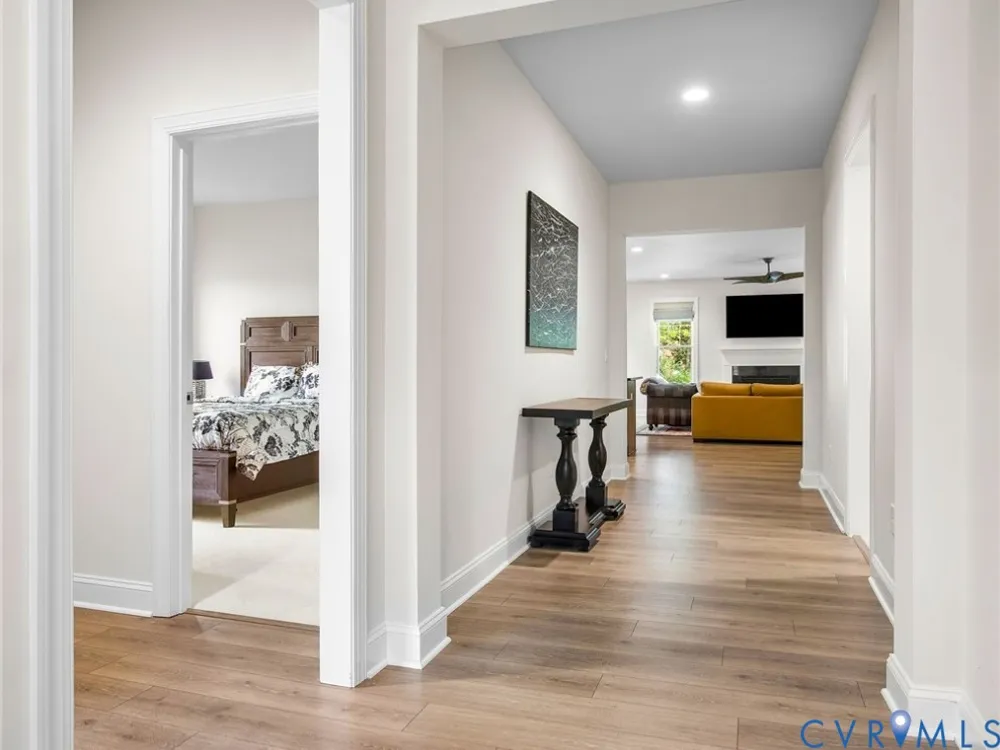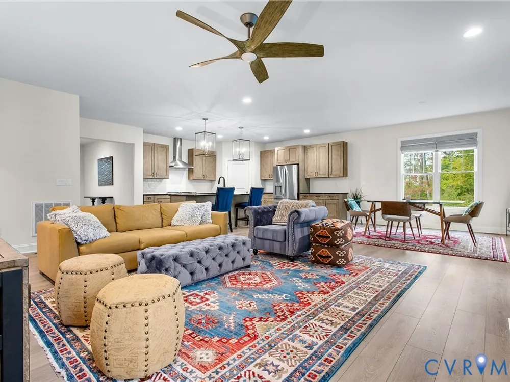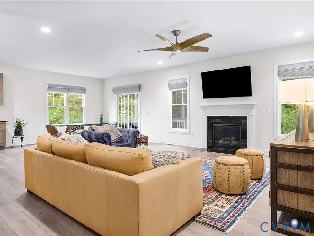 This beautiful, one owner, one level, 2123 SQFT home built in 2022 is located in a private setting in Readers Branch located in Goochland. The primary suite opens to the bathroom equipped with a serenity shower which leads to a large walk-in closet which is adjacent to the laundry room (washer/dryer). At the front of the home is two bedrooms divided by a full bath. Each bedroom has double windows and closets with double doors. Down the hall is an open area which has a kitchen nook with a pantry. There is also a sitting area at the bar. There is also a large open area that can be used for a family area with gas fireplace and overhead fan. Also in this area there is room for dining area. This area leads to a screen porch which leads to a patio and to a private back yard with a wrought iron fence. The home has an in house security system and Ring door bell. There is a finished attached two car garage with paved driveway. Home also includes a conditioned crawl space. The home is located 4 miles from Short Pump and Interstates 64, 288, 295, 95.