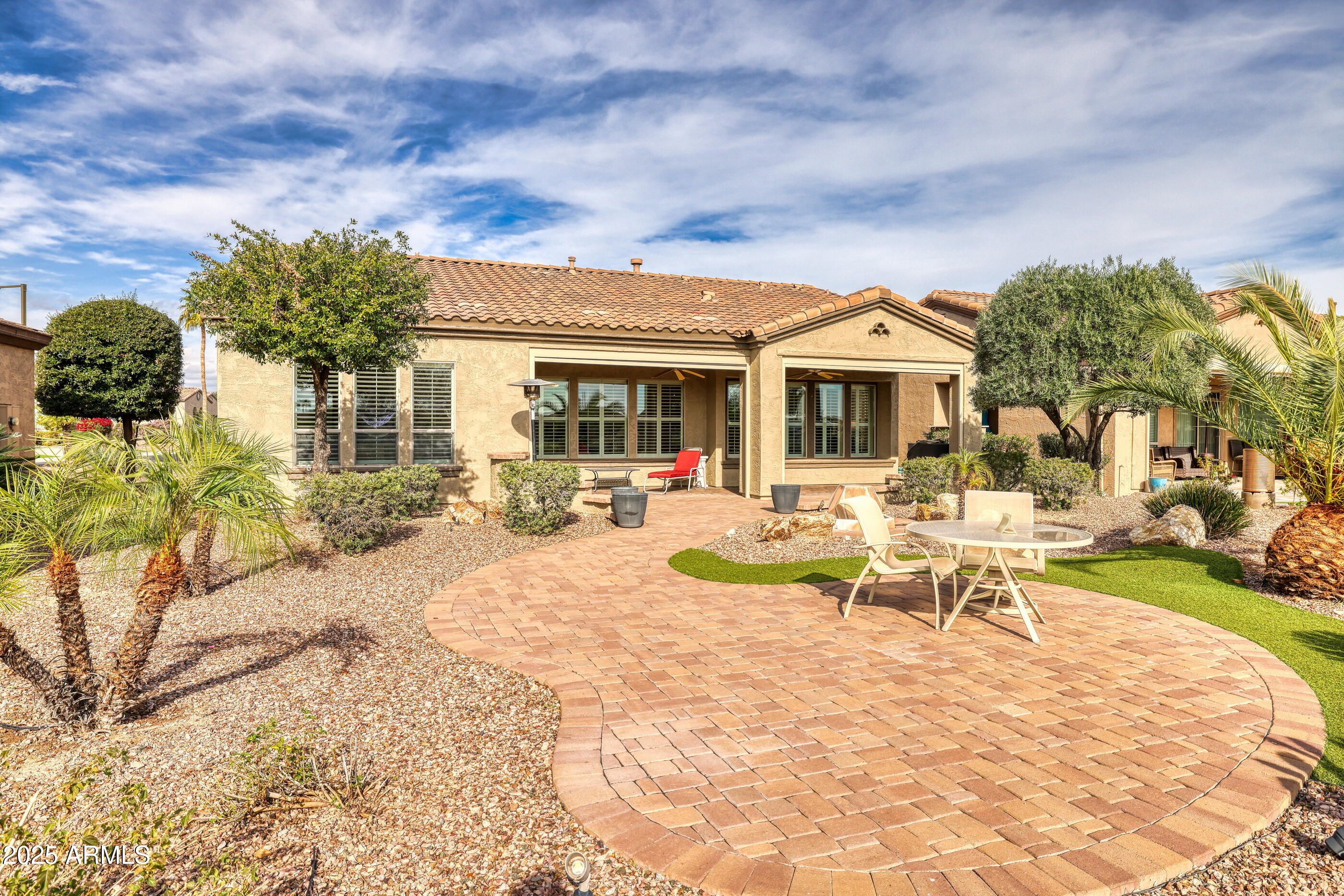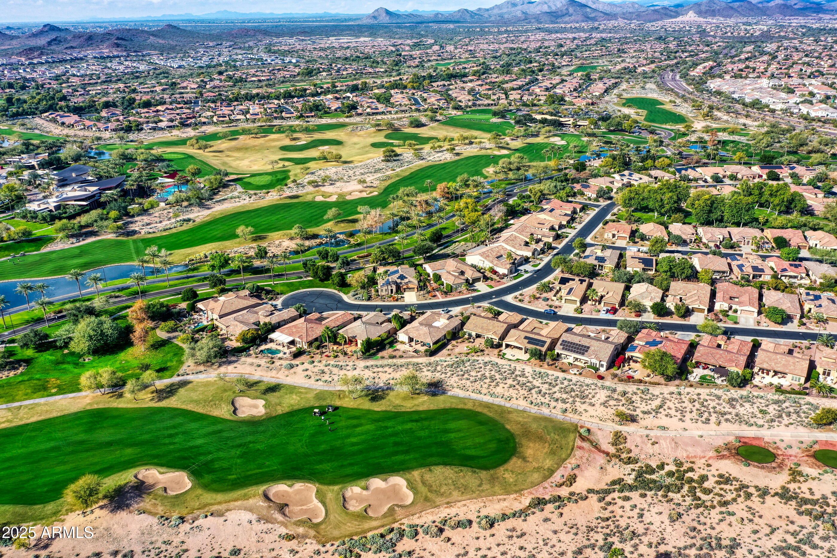 THIS IS A MUST SEE! a SPECTACULAR Libertas Plan on an oversized Golf Course Lot w/ a huge extended paver patio to fully enjoy the view & the setting. This popular 2-bedroom plus den floorplan offers elegant living accented by an entertainer's kitchen w/ new appliances & an adjacent great room beckoning w/ a warm & cozy fireplace. Both the great room & the separate dining area sport attractive crown molding & have magnificent views of the golf course. The den, w/ its corner window, features a large impressive L-shaped built-in...not to be outdone, the spacious primary suite has a bay window to also enjoy the golf course view & an adjacent large master bath area w/ a beautiful tiled shower & dual vanities, both complemented by a large walk-in closet w/ custom built-ins. The comfortable guest suite has a direct connection to the upgraded adjacent bath w/ custom sink, oversized lounging tub, & dual flush toilet. The utility room is accented by a full wall of floor to ceiling cabinets & the rear patio has a new electric roll down sun shade for total sun control. The exterior of the home was painted this year & the sprinkler system was replaced. This home is ready for its new owner! Don't miss this rare combination of a beautifully upgraded home on this superb oversized golf course lot, all of which is located in the award-winning 55+ Community of Trilogy at Vistancia w/ all its manicured grounds & amenities! Don't miss this one!