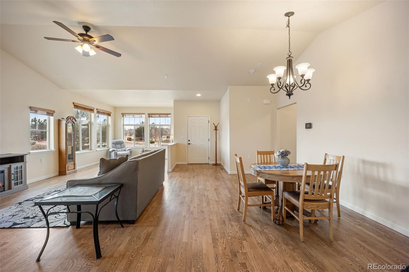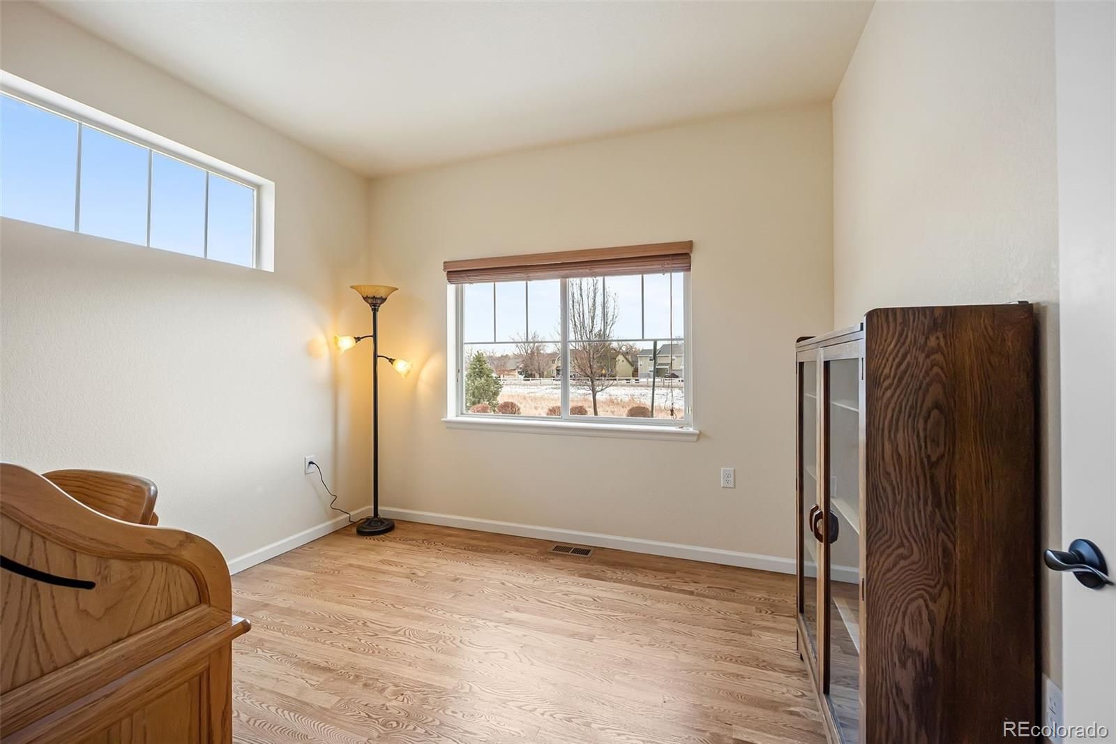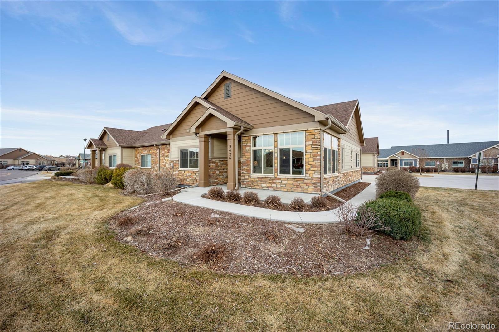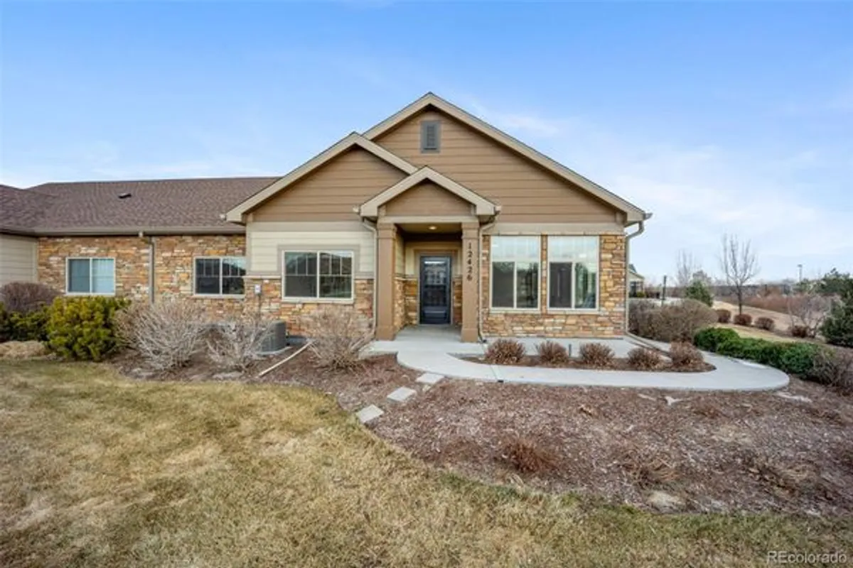 Welcome home to this impeccably maintained property within the desirable Eastlake Lifestyle Community! You'll instantly be drawn to all the natural light and the open layout floor plan allowing for ultimate convenience with everything at your fingertips, not to mention plenty of storage. This home has a new roof and is handicap accessible w/36-inch doors & elevated outlets throughout. The hardwood floors in the main living area create a welcoming, warm touch, while the office off the main living space could easily accommodate a third bedroom. The flow throughout the home is natural and accommodating to include a walk-through from your primary closet into the oversized laundry room allowing for ease with laundry tasks, while your entry off the garage places you near your kitchen for ease with unloading groceries. The sizable kitchen has beautiful black stainless appliances, granite counters, an island/peninsula large enough to easily accommodate 4 stools, as well as a pantry. Both bathrooms are complemented by granite countertops as well, while another upgrade you'll easily take notice of within the primary bedroom is the decorative tray ceiling. The oversized 2-car garage is a woodworker's dream with plenty of custom cabinetry and counter space. If woodworking isn't calling your name, you'll enjoy utilizing the cabinetry for additional storage, and the epoxied garage floors make for easy cleanup. This unit is within very close walking distance to the clubhouse which includes a kitchen, fireplace, area for residents to gather for games, and a stunning outdoor pool, just to name a few of its attributes. You'll love the convenience to walking trails, the Eastlake Nature Preserve, multiple parks, as well as multiple stores, restaurants and all within 3 miles to the convenience of Interstate 25. Whether you are looking to downsize or just attain simpler living with no need to worry about exterior maintenance, you won't want to let this stellar property pass you by!