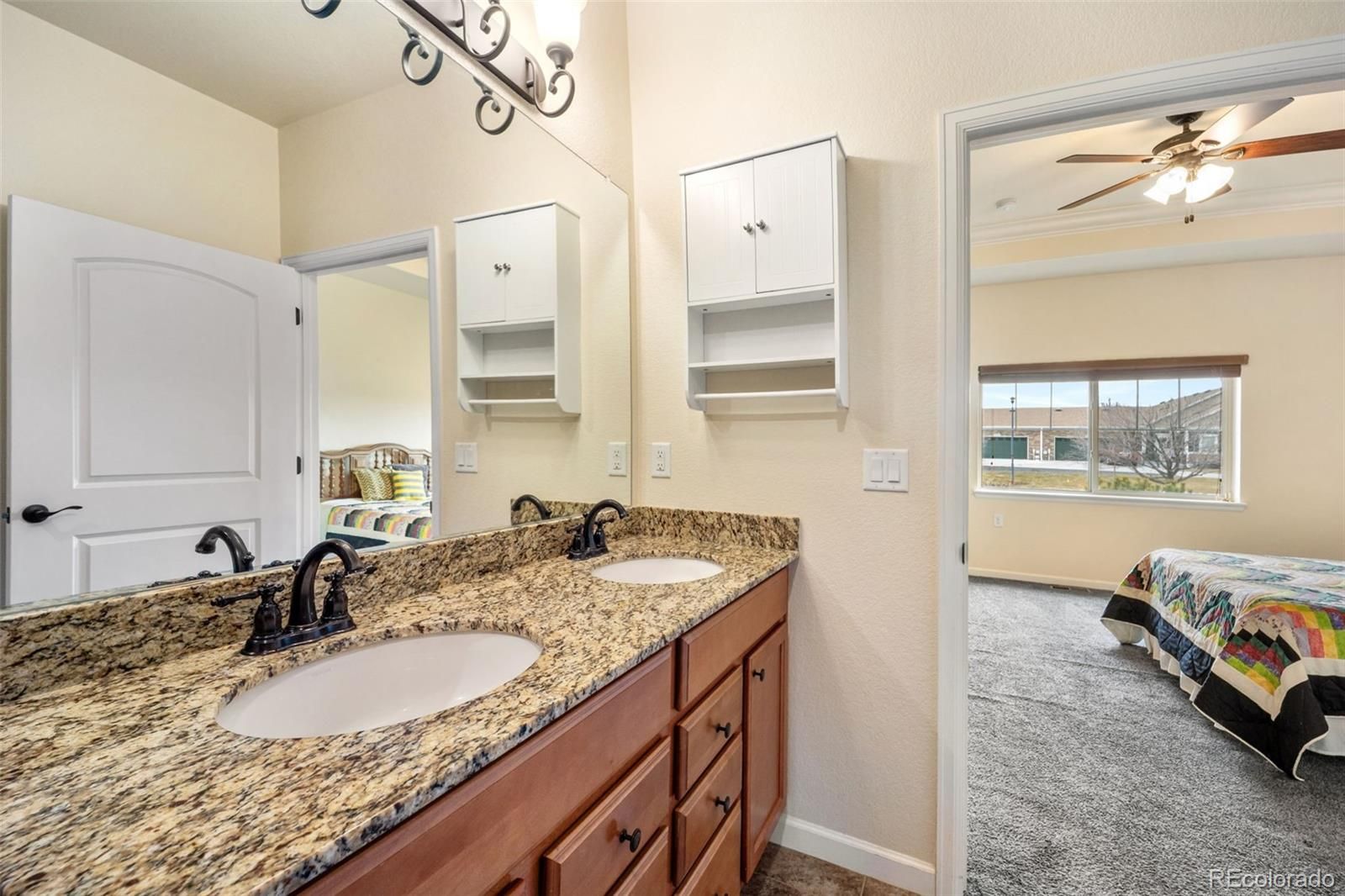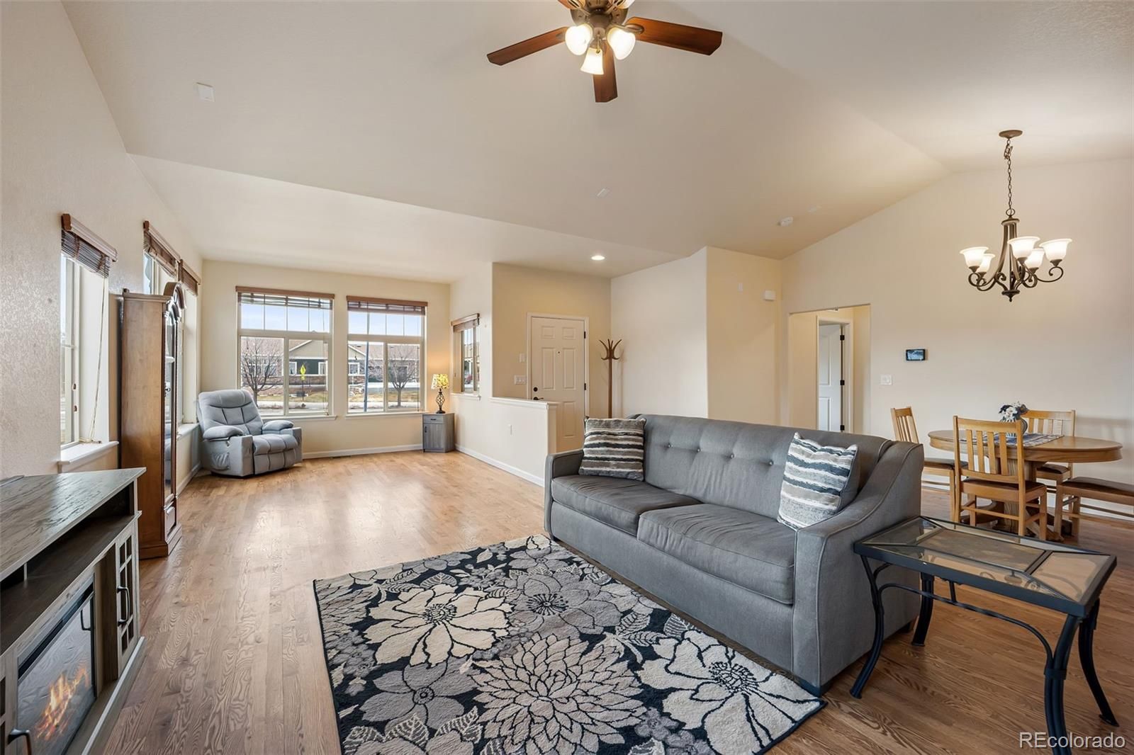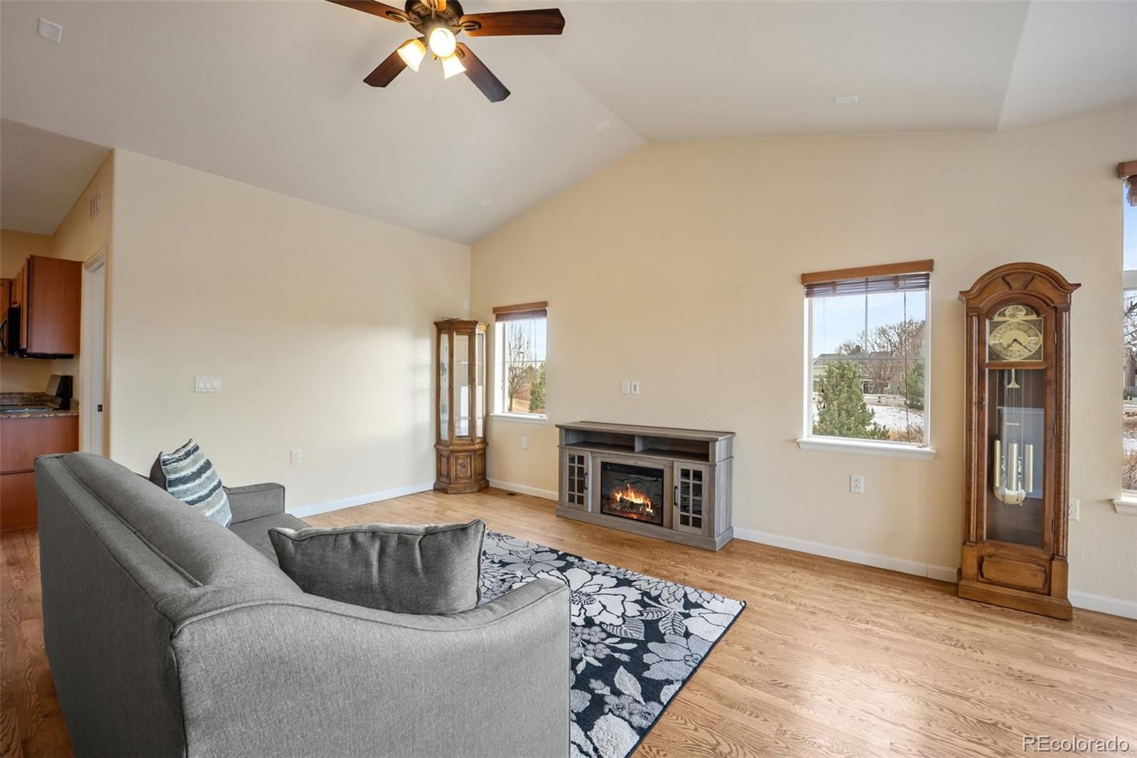 Welcome home to this impeccably maintained property within the desirable Eastlake Lifestyle Community! You'll instantly be drawn to all the natural light and the open layout floor plan allowing for ultimate convenience with everything at your fingertips, not to mention plenty of storage. This home has a new roof and is handicap accessible w/36-inch doors & elevated outlets throughout. The hardwood floors in the main living area create a welcoming, warm touch, while the office off the main living space could easily accommodate a third bedroom. The flow throughout the home is natural and accommodating to include a walk-through from your primary closet into the oversized laundry room allowing for ease with laundry tasks, while your entry off the garage places you near your kitchen for ease with unloading groceries. The sizable kitchen has beautiful black stainless appliances, granite counters, an island/peninsula large enough to easily accommodate 4 stools, as well as a pantry. Both bathrooms are complemented by granite countertops as well, while another upgrade you'll easily take notice of within the primary bedroom is the decorative tray ceiling. The oversized 2-car garage is a woodworker's dream with plenty of custom cabinetry and counter space. If woodworking isn't calling your name, you'll enjoy utilizing the cabinetry for additional storage, and the epoxied garage floors make for easy cleanup. This unit is within very close walking distance to the clubhouse which includes a kitchen, fireplace, area for residents to gather for games, and a stunning outdoor pool, just to name a few of its attributes. You'll love the convenience to walking trails, the Eastlake Nature Preserve, multiple parks, as well as multiple stores, restaurants and all within 3 miles to the convenience of Interstate 25. Whether you are looking to downsize or just attain simpler living with no need to worry about exterior maintenance, you won't want to let this stellar property pass you by!