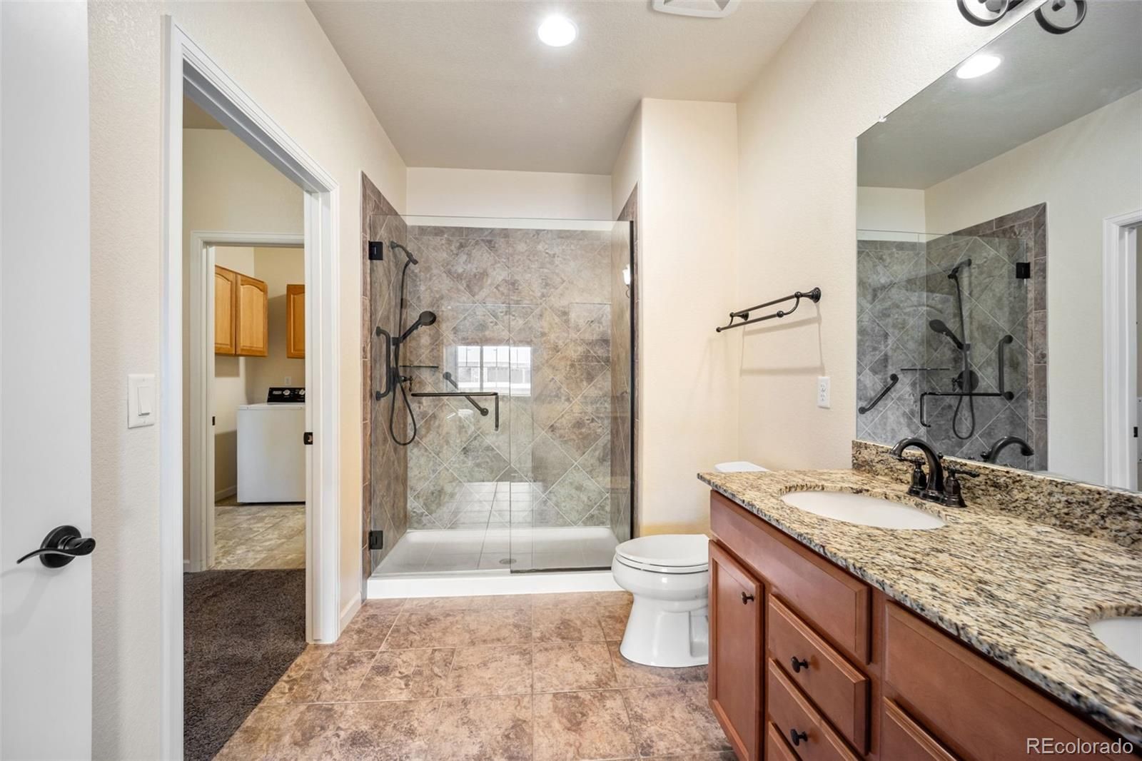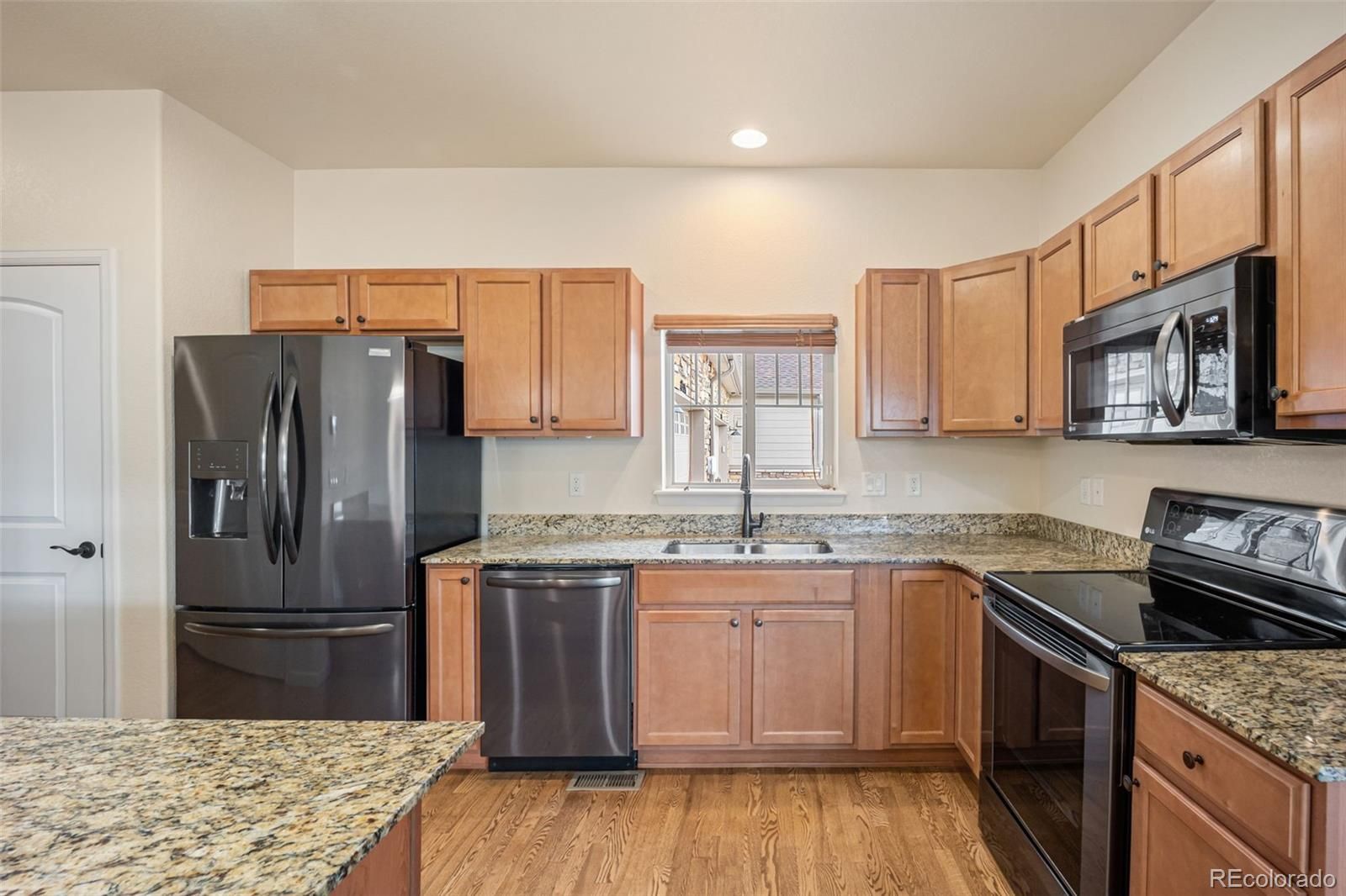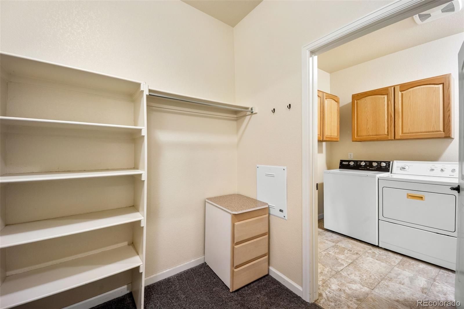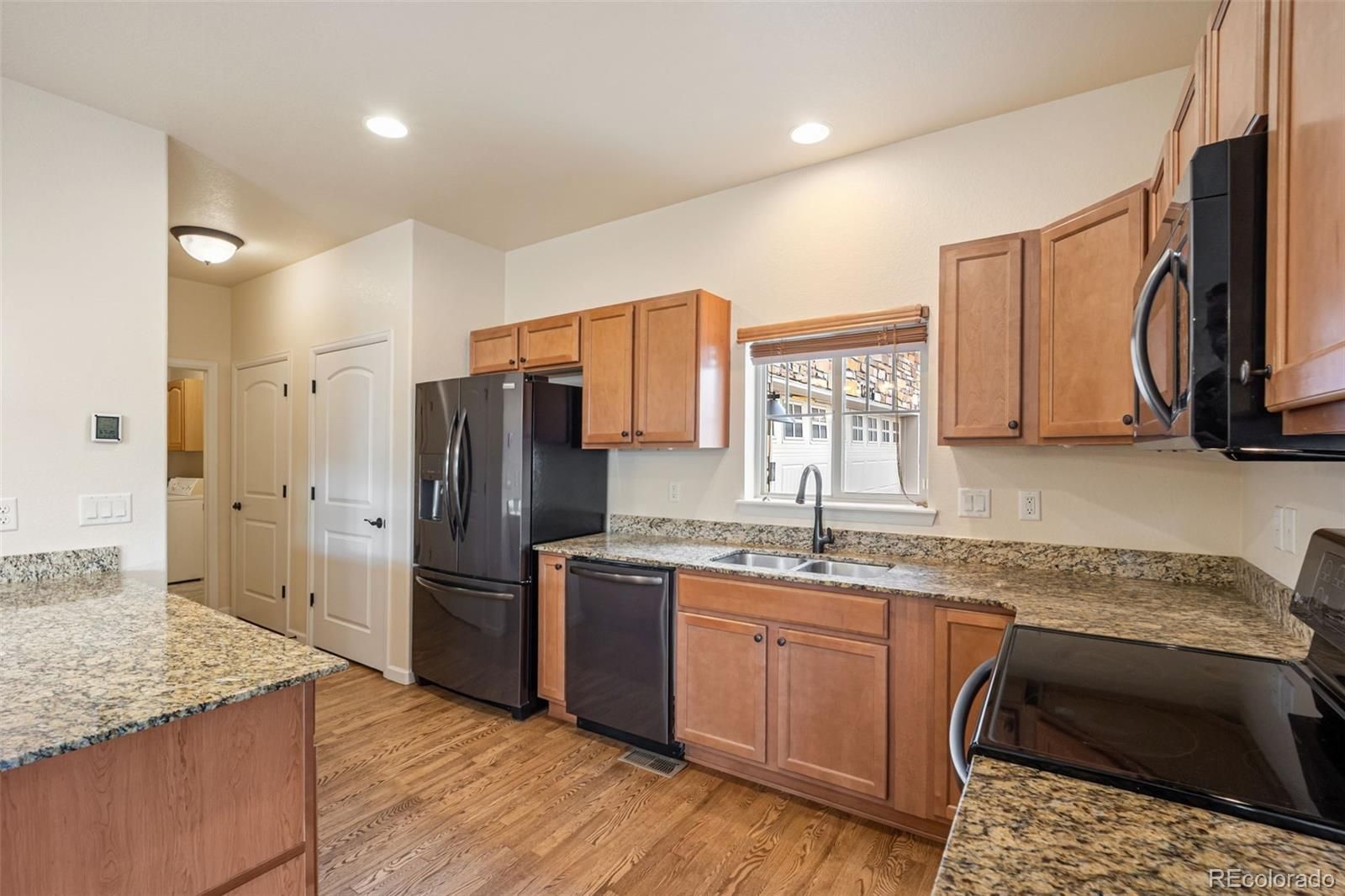 Welcome home to this impeccably maintained property within the desirable Eastlake Lifestyle Community! You'll instantly be drawn to all the natural light and the open layout floor plan allowing for ultimate convenience with everything at your fingertips, not to mention plenty of storage. This home has a new roof and is handicap accessible w/36-inch doors & elevated outlets throughout. The hardwood floors in the main living area create a welcoming, warm touch, while the office off the main living space could easily accommodate a third bedroom. The flow throughout the home is natural and accommodating to include a walk-through from your primary closet into the oversized laundry room allowing for ease with laundry tasks, while your entry off the garage places you near your kitchen for ease with unloading groceries. The sizable kitchen has beautiful black stainless appliances, granite counters, an island/peninsula large enough to easily accommodate 4 stools, as well as a pantry. Both bathrooms are complemented by granite countertops as well, while another upgrade you'll easily take notice of within the primary bedroom is the decorative tray ceiling. The oversized 2-car garage is a woodworker's dream with plenty of custom cabinetry and counter space. If woodworking isn't calling your name, you'll enjoy utilizing the cabinetry for additional storage, and the epoxied garage floors make for easy cleanup. This unit is within very close walking distance to the clubhouse which includes a kitchen, fireplace, area for residents to gather for games, and a stunning outdoor pool, just to name a few of its attributes. You'll love the convenience to walking trails, the Eastlake Nature Preserve, multiple parks, as well as multiple stores, restaurants and all within 3 miles to the convenience of Interstate 25. Whether you are looking to downsize or just attain simpler living with no need to worry about exterior maintenance, you won't want to let this stellar property pass you by!