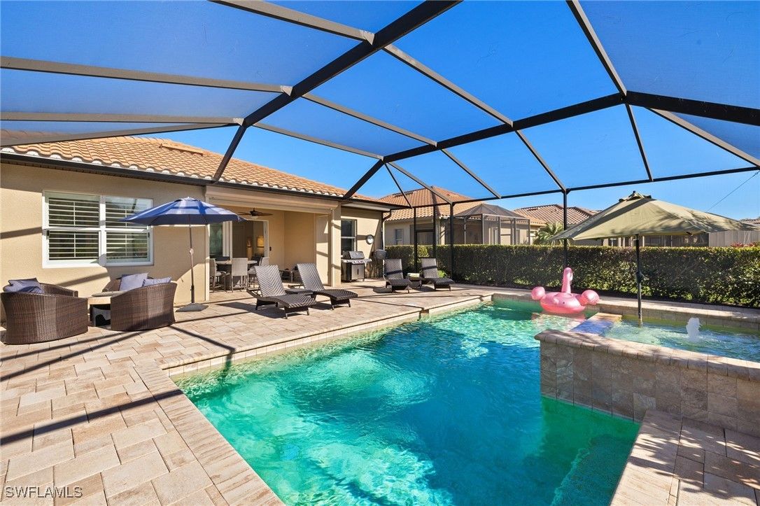 Dream Golf Course Pool Home with Breathtaking Sunsets on a very private lot which has golf course views overlooking a pond with an abundance of wildlife to enjoy. Welcome to 12432 Chrasfield Chase, a stunning pool home nestled in the sought-after Plantation at Somerset golf community. This elegant residence offers the perfect blend of luxury, comfort, and modern living—with sweeping golf course and pond views, vibrant sunsets, and resort-style amenities right outside your door. Enjoy the Florida lifestyle from your extended screened lanai with a western exposre, complete with a heated saltwater pool and spa, ideal for entertaining or relaxing while watching native wildlife and serene sunsets over the course. Inside, a grand foyer opens to an expansive, sun-drenched living area with tray ceilings, plantation shutters, and ceramic plank tile flooring throughout. The open-concept layout flows seamlessly into the dining area and chef-inspired kitchen that walks out to a beutiful extended lanai w/heated salt water pool and spa. FEATURES: Stainless steel appliances Granite countertops Large island with breakfast bar Custom cabinetry Extended coffee/wine bar with large wine cooler Extended 2 stall garage The home offers three spacious bedrooms, including a private master suite with a large walk-in closet and a luxurious en-suite bath featuring dual vanities, soaking tub, and walk-in shower. The two guest bedrooms are tucked away for privacy and share a beautifully designed full bath with a walk-in shower. You'll also love the versatile bonus room—perfect for a home office, media room, or playroom. Additional Features: Extended garage with built in sink, and cabinetry for plenty of room for storage. Whole-house generator with buried propane tank No flood zone Family Golf Membership included (no waiting list for the prestigious Hurdzan-Fry golf course) Community Perks: Newly renovated resort-style amenity center Pool & spa, tennis & pickleball courts State-of-the-art fitness center Country Club with restaurant, grill, and year-round events All this just minutes from RSW Airport, top-rated schools, shopping, dining, and major highways. This is more than a home—it's a lifestyle. Whether you're entertaining, relaxing, or enjoying all the activities this active, welcoming community offers year-round, this exquisite residence is truly one-of-a-kind. READY TO MOVE IN IMMEDIATELY AND START LIVING A GREAT RESORT LIFE Schedule a private showing!