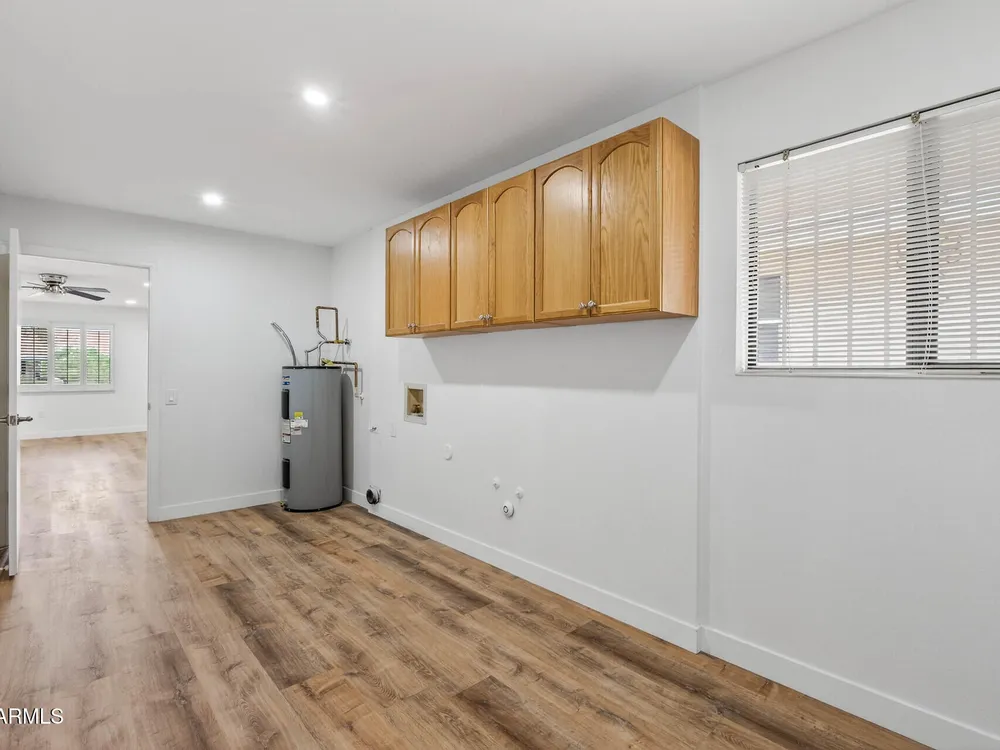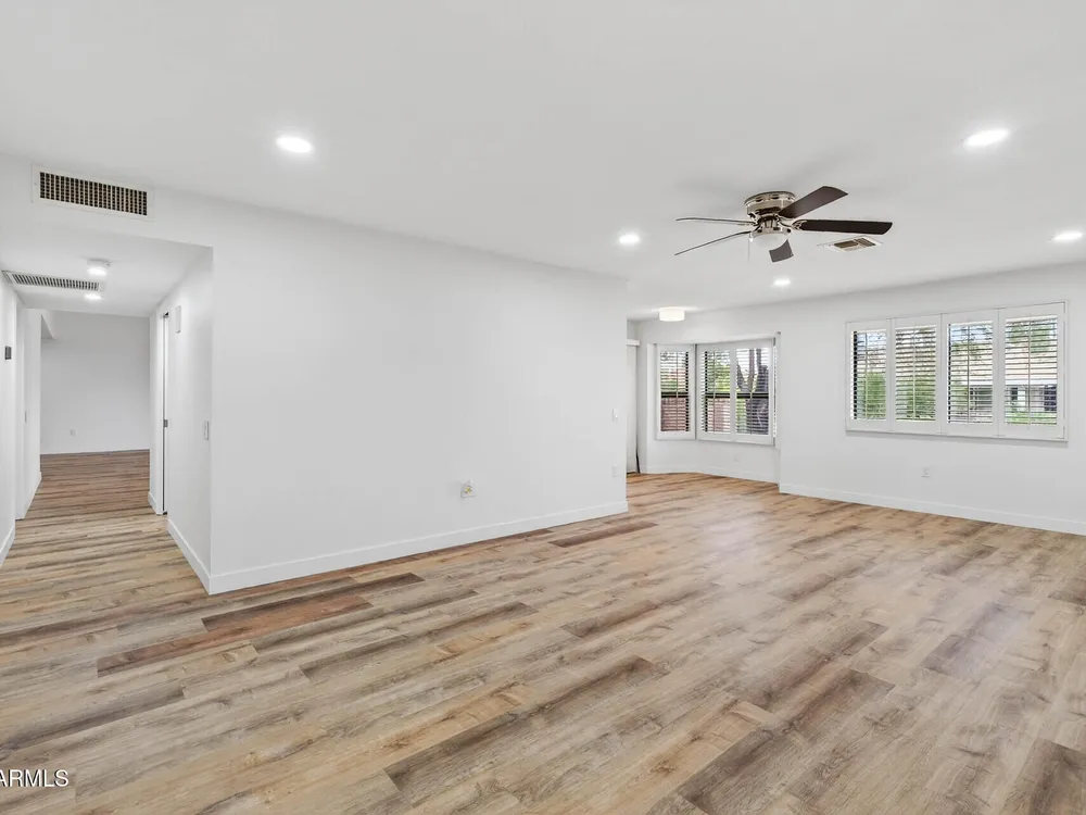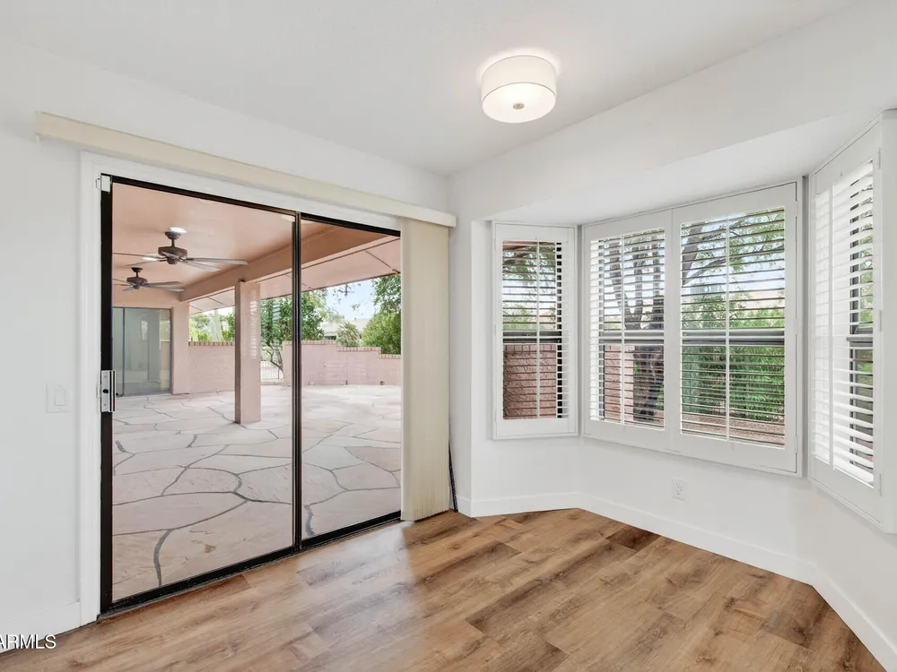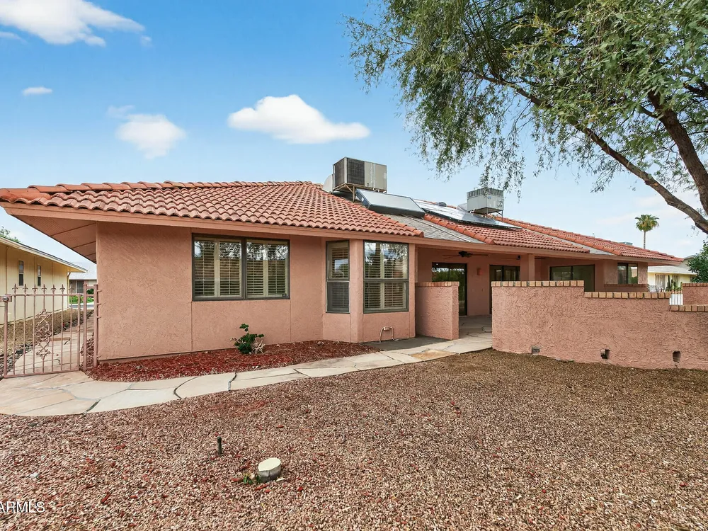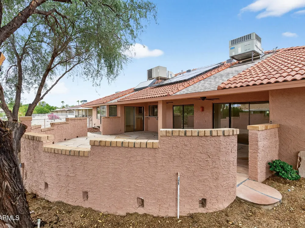 PRICED TO SELL! This 3 Bdrm home comes with new LVP flooring throughout + new carpet in the bedrooms. The kitchen features updated cabinets, a pantry and newer Frigidaire appliances. Both bathrooms have been updated. The interior is newly painted. The home has updated lighting & fans throughout. The 2 guest bdrms have entry capable closets and the Primary has 2 entry capable & customized closets. Enjoy your own private courtyard off the primary bedroom. In the rear you are treated to a large covered patio with shade, which is walled in for privacy from neighbors. Laundry is plumbed in both the garage and the large utility room. A 12 KW solar system was installed along with new attic insulation in 2022. Solar loan will be paid off at Close of Escrow. Don't miss this one APS billing history available upon request. Owners history is no guarantee of new owners experience. There is also a solar hot water heater on the roof which was working in 2022 when the current owner installed solar. He disconnected it.
