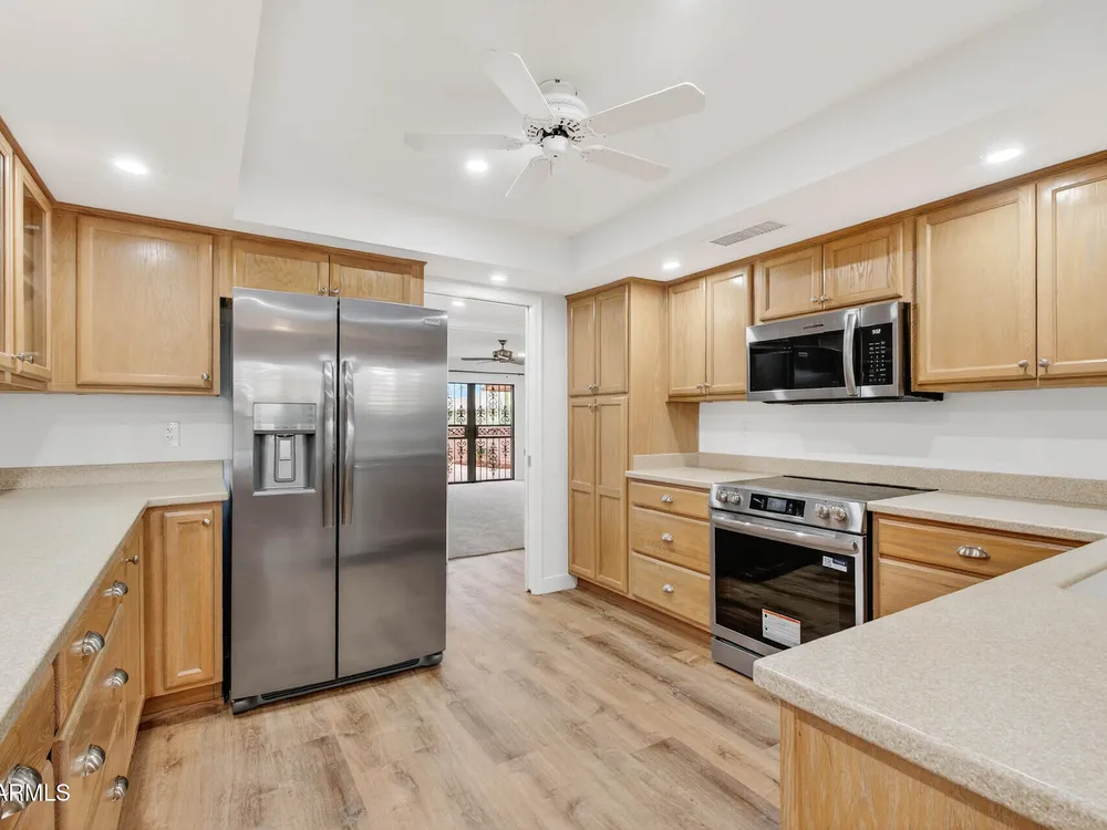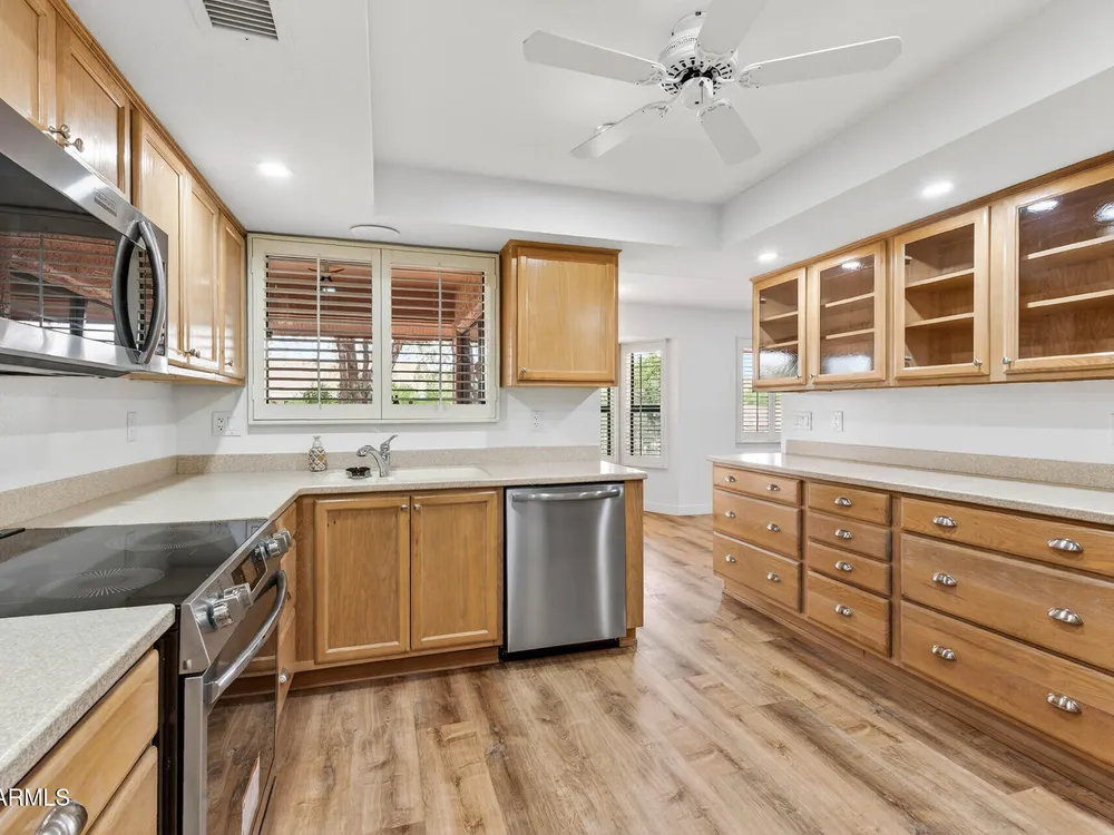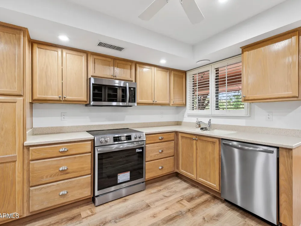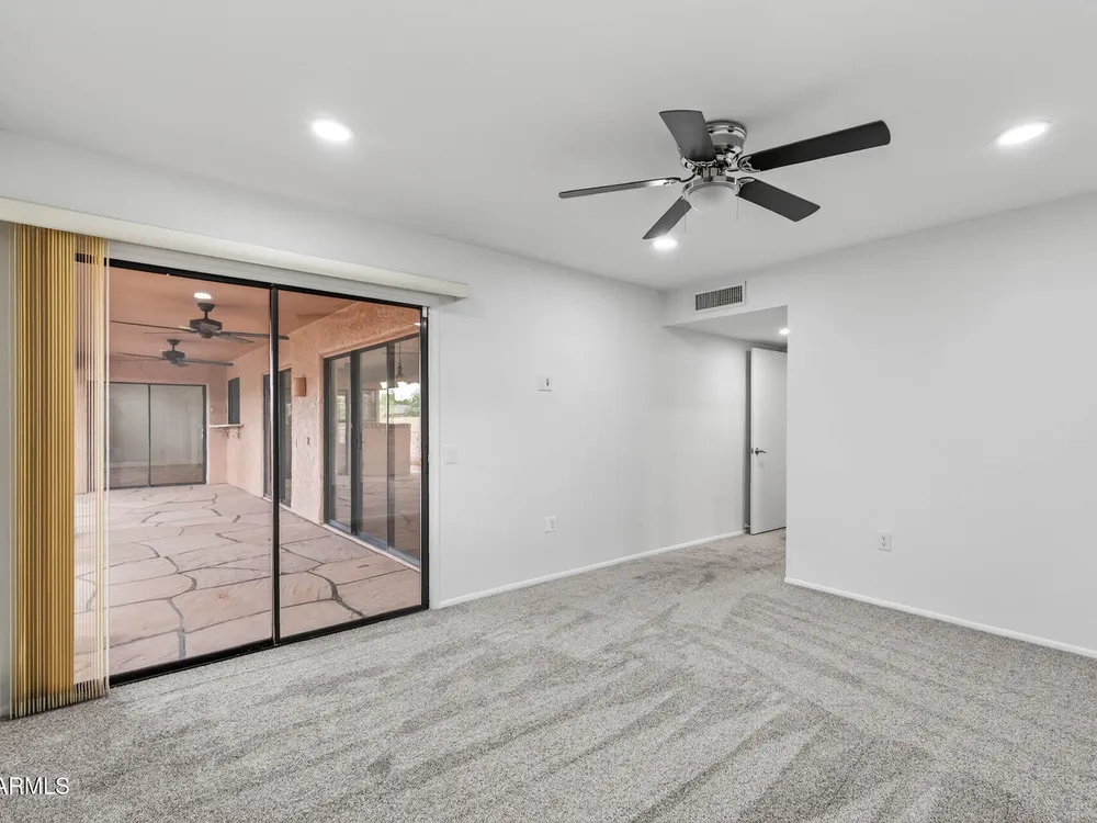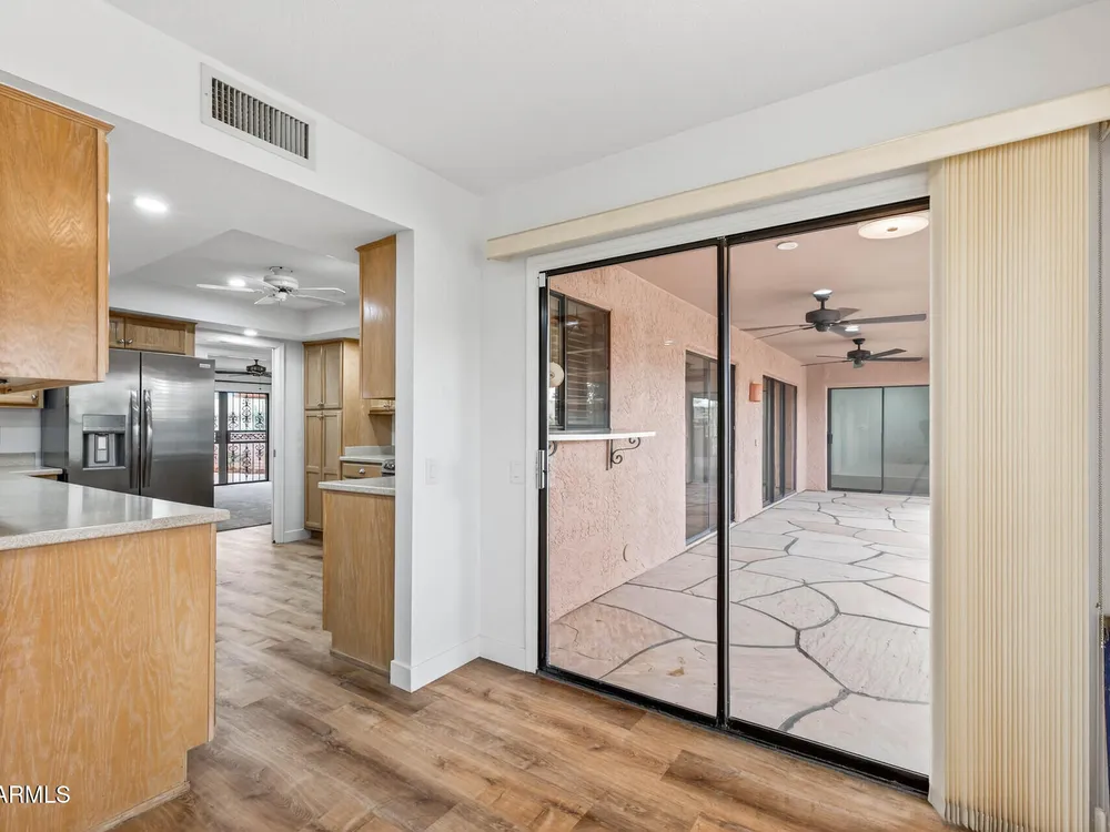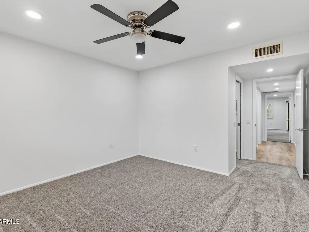 PRICED TO SELL! This 3 Bdrm home comes with new LVP flooring throughout + new carpet in the bedrooms. The kitchen features updated cabinets, a pantry and newer Frigidaire appliances. Both bathrooms have been updated. The interior is newly painted. The home has updated lighting & fans throughout. The 2 guest bdrms have entry capable closets and the Primary has 2 entry capable & customized closets. Enjoy your own private courtyard off the primary bedroom. In the rear you are treated to a large covered patio with shade, which is walled in for privacy from neighbors. Laundry is plumbed in both the garage and the large utility room. A 12 KW solar system was installed along with new attic insulation in 2022. Solar loan will be paid off at Close of Escrow. Don't miss this one APS billing history available upon request. Owners history is no guarantee of new owners experience. There is also a solar hot water heater on the roof which was working in 2022 when the current owner installed solar. He disconnected it.