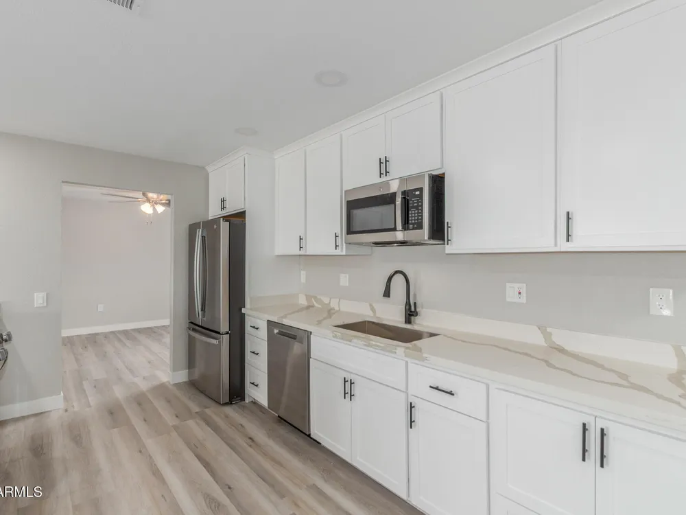 Welcome to this charming remodeled 2-bedroom, 2-bath home situated on a spacious corner lot. Step inside to discover fresh updates throughout, including new appliances, modern finishes, and a thoughtfully designed layout. The updated kitchen flows into a generous bonus family room—perfect for relaxing, entertaining, or creating a home office or play space. Enjoy two updated bathrooms, ample natural light, and functional living areas designed for comfort and convenience. Outside, the fenced yard offers privacy and space for pets, gardening, or outdoor gatherings. This move-in-ready home blends style, functionality, and location.