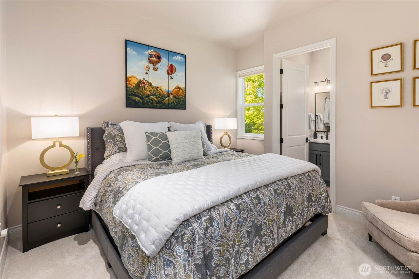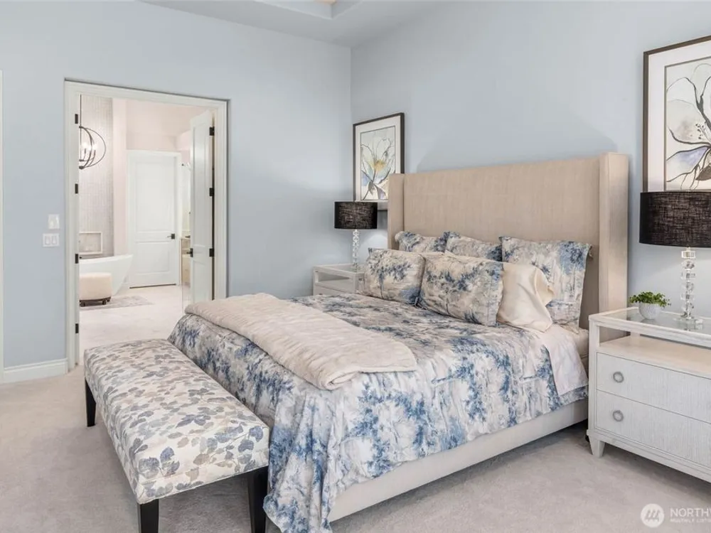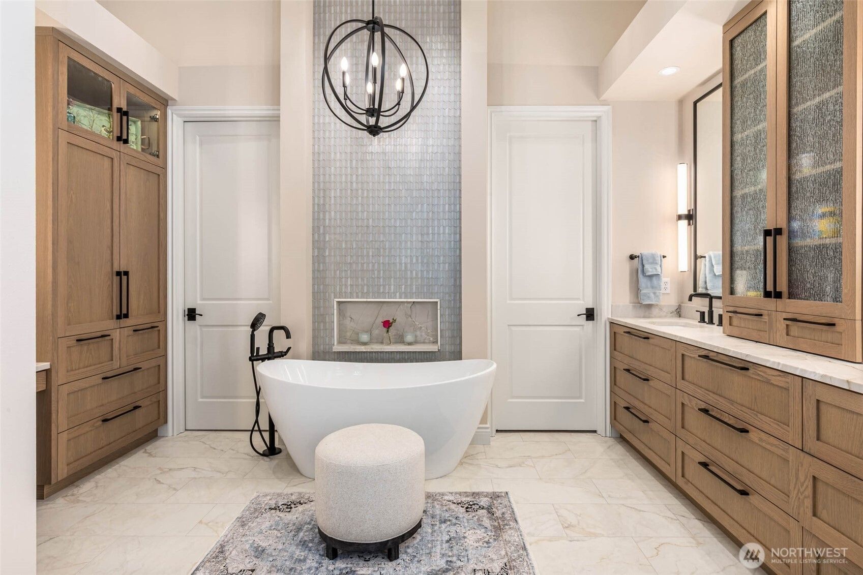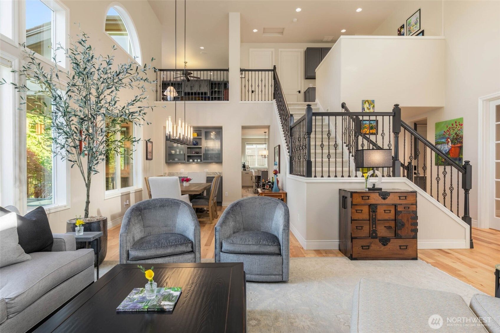 This Custom Maryhill—the crown jewel of the Estate Collection—boasts $600K in premium upgrades and a private lot with serene mountain views. A dramatic great room with 21’ ceilings, birch hardwoods, and gallery-style lighting set the tone. The chef’s kitchen, fully remodeled, features a statement island with farmhouse sink, quartz slab counters, designer backsplash, custom cabinetry, and top-tier appliances. The luxurious primary suite offers bay seating and a spa-inspired bath with heated porcelain floors, soaking tub with glass tile wall, luxe shower, and California Closets. A junior primary, private third bedroom, and media room with view balcony complete the interior. Outdoors, the 900 SF garden-inspired deck creates a stunning retreat.