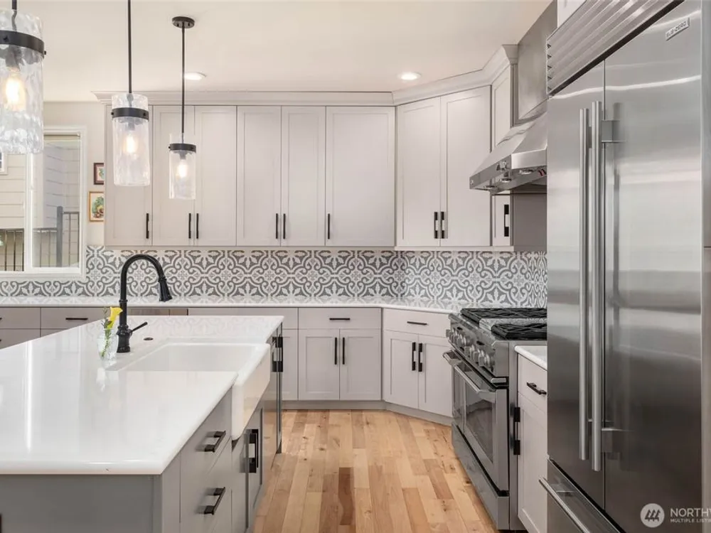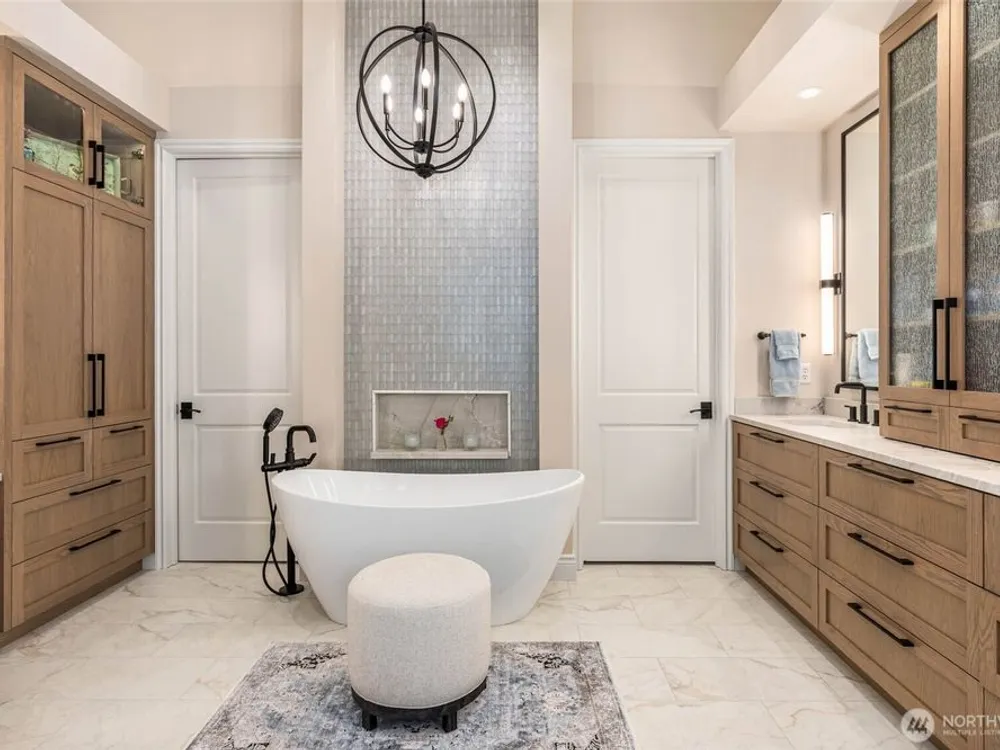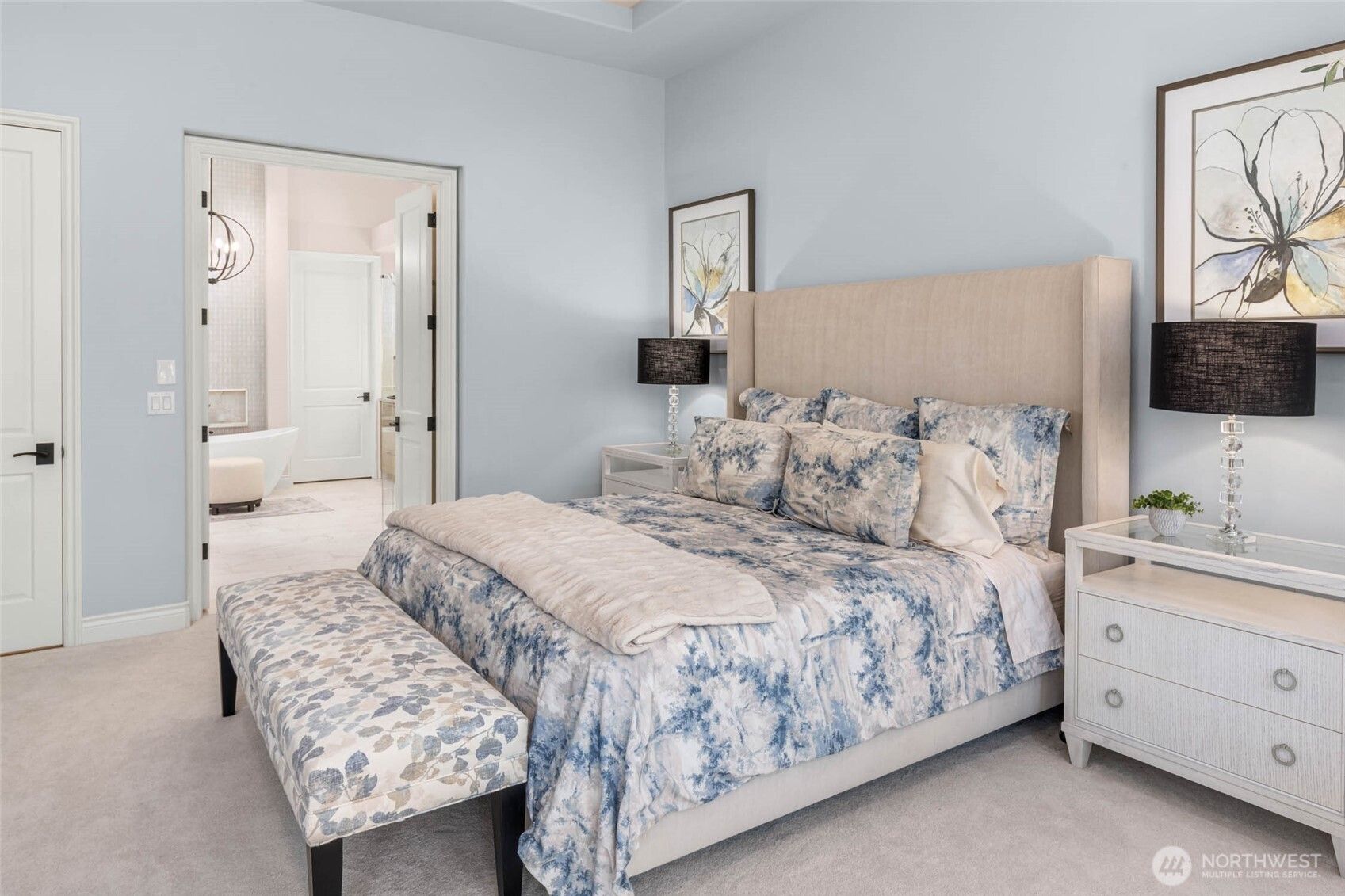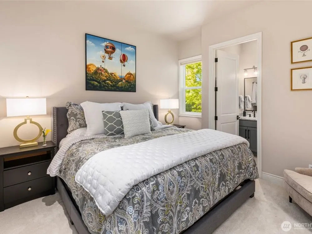 This Custom Maryhill—the crown jewel of the Estate Collection—boasts $600K in premium upgrades and a private lot with serene mountain views. A dramatic great room with 21’ ceilings, birch hardwoods, and gallery-style lighting set the tone. The chef’s kitchen, fully remodeled, features a statement island with farmhouse sink, quartz slab counters, designer backsplash, custom cabinetry, and top-tier appliances. The luxurious primary suite offers bay seating and a spa-inspired bath with heated porcelain floors, soaking tub with glass tile wall, luxe shower, and California Closets. A junior primary, private third bedroom, and media room with view balcony complete the interior. Outdoors, the 900 SF garden-inspired deck creates a stunning retreat.