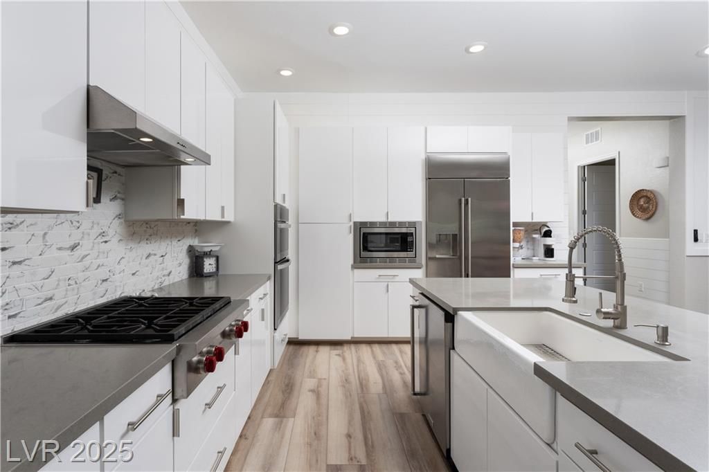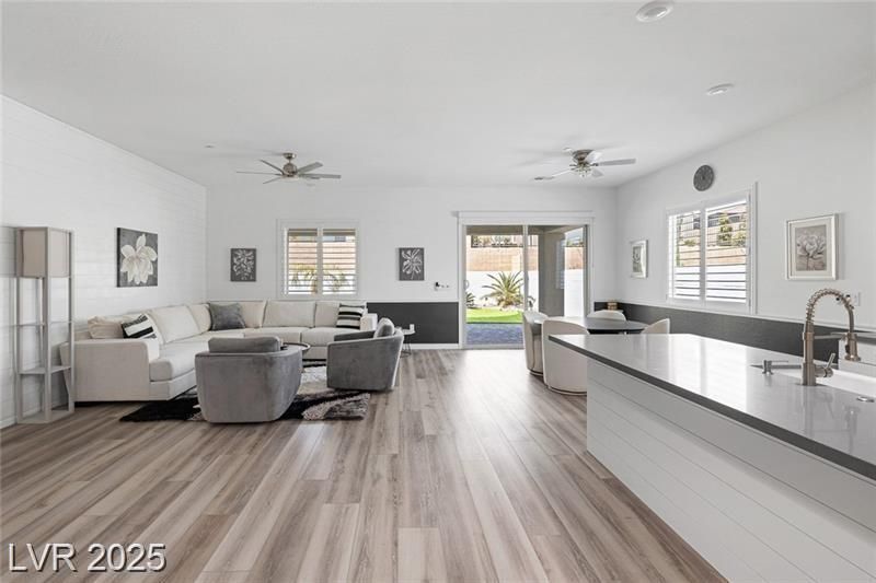 One-of-a-Kind Opportunity to Live in Guard-Gated 55+ Heritage in Summerlin! WELCOME HOME to this highly upgraded home with no expense spared for a premium living experience in a resort neighborhood. This impeccable home shows true pride of ownership with over $185,000 in recent investments, making it one-of-a-kind w/ substantial upgrades including custom woodwork & wall treatments, modern European style cabinets, Sunburst shutters, whole house Lifesource filtration, Rinnai tankless, Solatube skylights, and Core-Tec luxury vinyl plank throughout. With three bedrooms and an oversized great room there is ample space to relax or entertain. The home flows seamlessly to the entertainer's backyard with extended covered patio, outdoor kitchen with griddle, & designer putting green. Like-new and spotless. All this, located near Red Rock in exclusive Heritage at Stonebridge w/ beautiful clubhouse & amenities including year-round heated pool! If Buyer prefers, Seller is open to a leaseback.