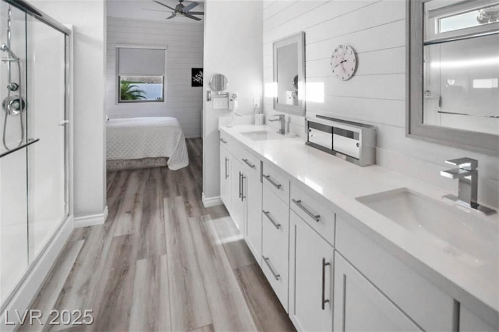 Welcome to a one-of-a-kind home in the guard-gated 55+ Heritage at Stonebridge in Summerlin, where luxury meets comfort. Meticulously maintained and thoughtfully upgraded with over $185,000 in recent enhancements, this home shines with custom woodwork, elegant wall treatments, modern European cabinetry, Sunburst shutters, LifeSource whole-house water filtration, Rinnai tankless water heater, Solatube skylights, and Core-Tec luxury vinyl plank flooring throughout.The spacious layout features three bedrooms and an oversized great room, perfect for hosting or unwinding. Enjoy effortless indoor-outdoor living in the beautifully designed backyard with an extended covered patio, outdoor kitchen with griddle, and designer putting green. Ideally located near Red Rock Canyon and resort-style amenities including a stunning clubhouse and year-round heated pool, this home offers an exceptional lifestyle opportunity.