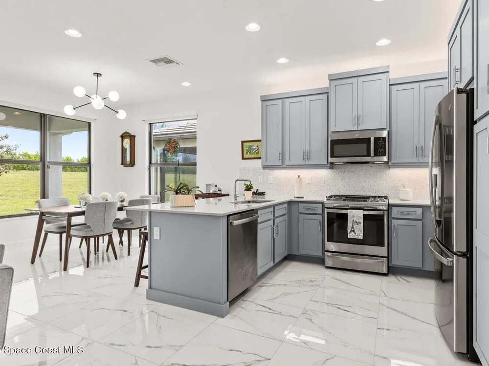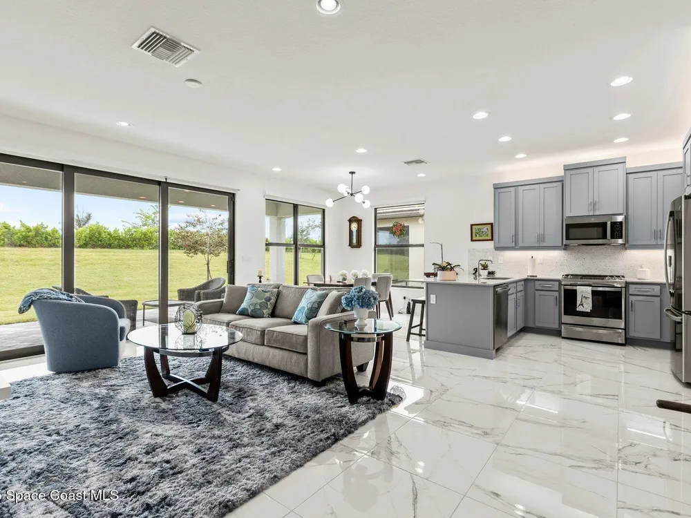 Come see this welcoming, move in ready, impeccably updated, 2024 construction in Valencia Walk @ Riverland. The owners created a luxurious custom space to live and entertain guests. Upgraded cabinetry, quartz counter tops, upgraded floors & lighting is noticeable upon entry. The primary bedroom is spacious & the primary bath is simply wonderful. The floor plan flows & is functional. Now that you can see the inside, step out on to your back patio, take a seat, sit back, relax and call this home. Riverland is an over 55 community that has something for everyone. Walk, jog, drive your golf cart. Head to the fitness center or go relax by one of the three pools. Visit the cultural center, clubhouse, restaurants & shops. Publix is even on site. Port St Lucie offers a variety of restaurants & shopping. The beach is a short drive & there is a Cleveland Clinic off of I95.