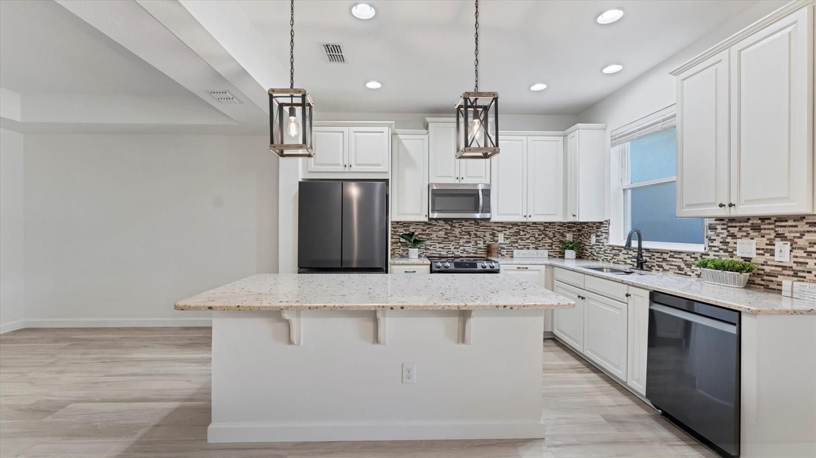 Move-in ready Low maintenance stunner is ready for its new family. Light, Bright & like new without the wait or hassles of construction. Pack your bags and get ready to enjoy the good life in your new home. The split floor plan offers plenty of privacy for you and your guests. Private back yard views greet you from the moment you enter this tastefully updated oasis. From the freshly painted interior to the new luxury vinyl flooring, you'll appreciate all of the attention given to updating and maintaining the home. High ceilings and an open floor plan allow you to entertain seamlessly. Kitchen features include solid wood cabinetry, black stainless-steel appliances (all but microwave are 3 years young), a large island w/ breakfast bar, new pendant lighting, granite counters, backsplash & disposal. The split staircase gives a truly private feel to your owner's area shared only with your large laundry room complete with washer and dryer that are only 6 months old. The large Owners Bedroom offers private views, a large 6x14 walk-in closet with custom built-ins and an owner’s bathroom complete with updated tile shower, Oversized dual sink vanity with great storage, new lights, mirrors, faucets and fixtures, and a private water closet. The carpet in the home is like-new and less than a year old. The home features updated fans, lights and fixtures throughout. Both secondary bedrooms are generously sized. Bedroom 2 has a walk-in closet and bedroom 3 has a built-in closet with closet system to maximize your storage. Speaking of storage... this home is not lacking…. from the giant under stair storage, to the large closet in the laundry room & the added overhead storage in your 2 Car garage, there is plenty of space for your personal things. Both Secondary bathrooms have updated lights, mirrors, faucets and fixtures. Enjoy quiet mornings or peaceful sunset painted skies from your brick paver, screened in back lanai. Grab a book or your favorite drink and unwind without interruption. If you’ve been looking for a great home with all the big things taken care of, this one will check all the boxes. Looking for a maintenance free community with Low Dues in Lakewood Ranch? The amenity rich community of Harmony will not disappoint! From the fitness center, playground, park & walking paths to the Large, heated walk-in pool complete with large paver patio. This community has something for everyone. If you have a 4-legged friend in need of a new home this pet friendly community is the perfect fit. Top Rated schools including LECOM are just minutes away. Great location for those who need to commute. Close to some of the best shopping, dining and entertainment around. Just a few miles to some of the top beaches in the US. Schedule a tour, fall in love, Welcome Home!!