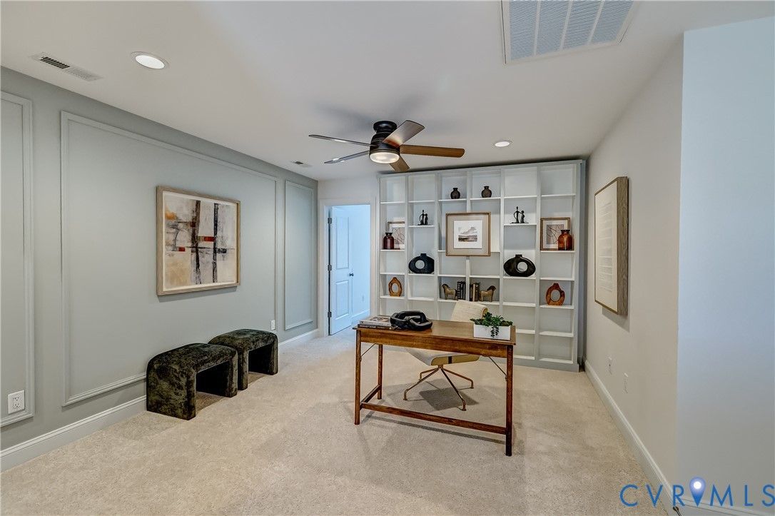 - Bookcases, Built-in Features, Bedroom on Main Level, Ceiling Fan(s), Dining Area, Double Vanity, Eat-in Kitchen, Granite Counters, High Ceilings, Kitchen Island, Loft, Bath in Primary Bedroom, Main Level Primary, Pantry, Recessed Lighting, Walk-In Closet(s)