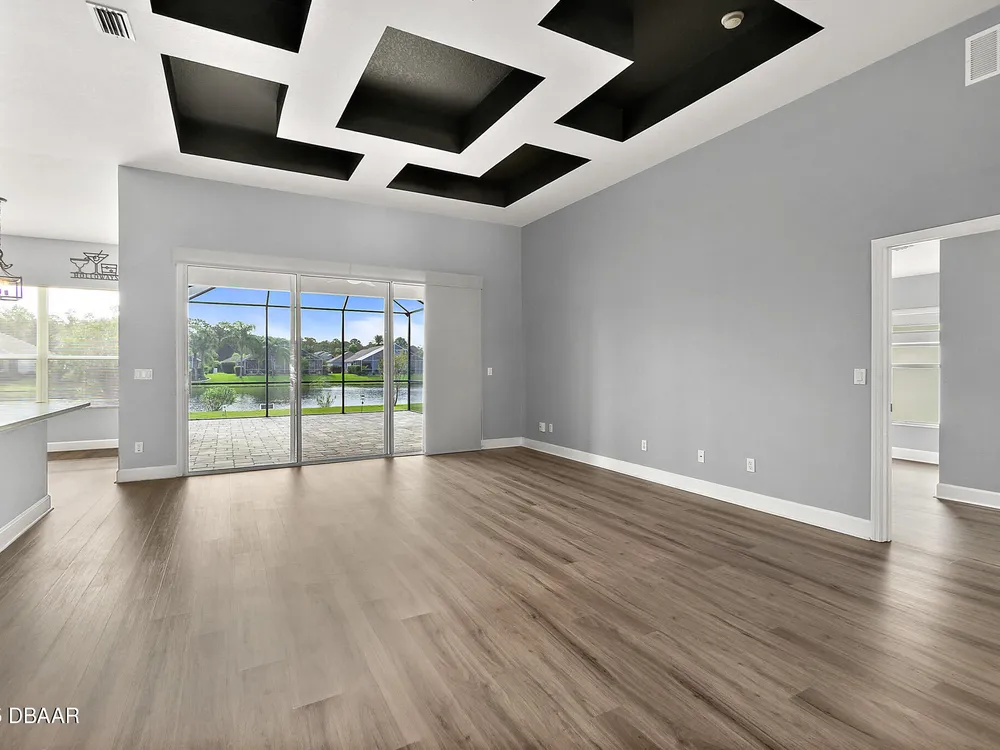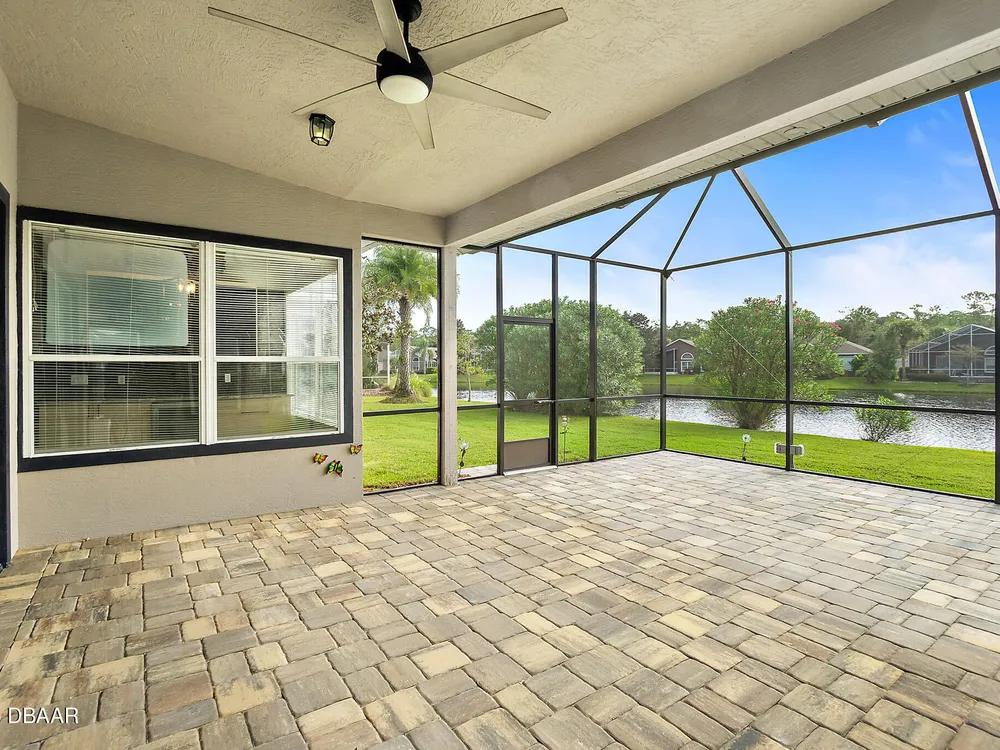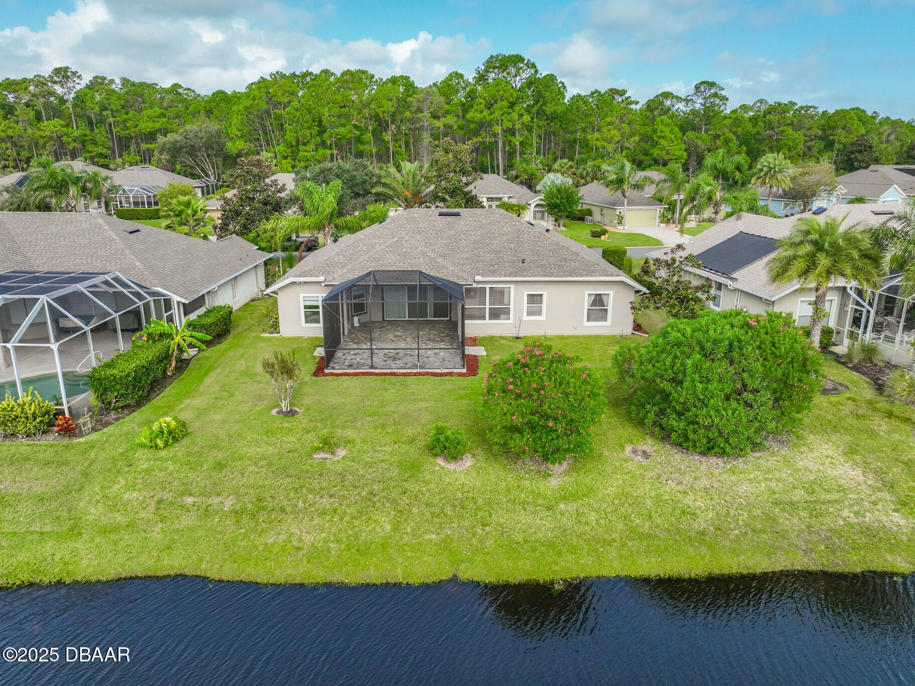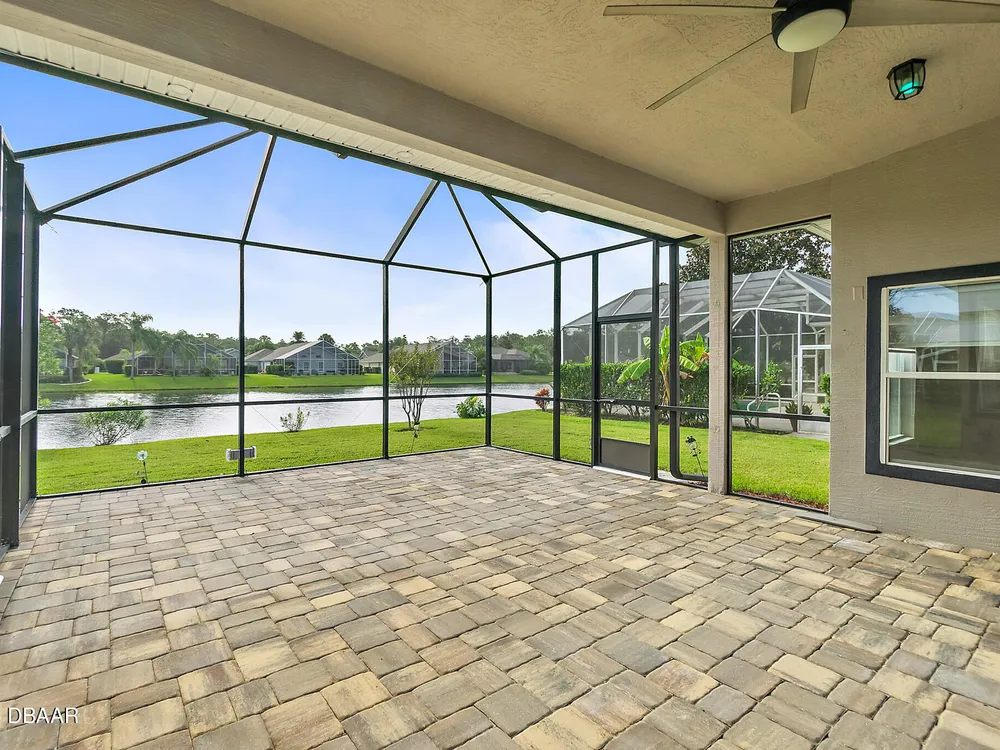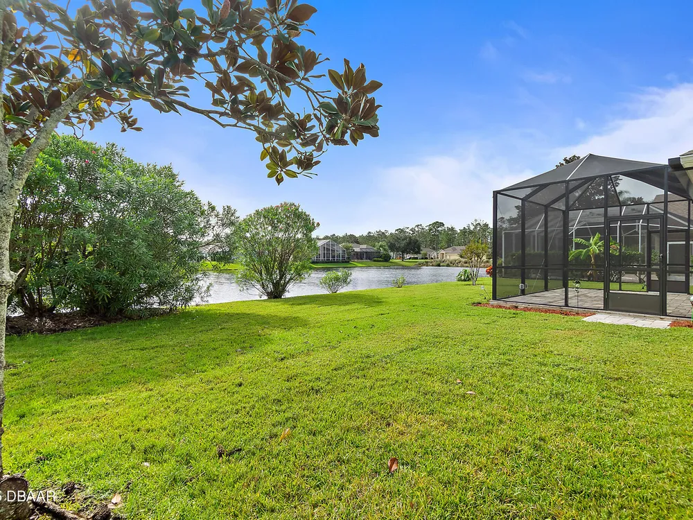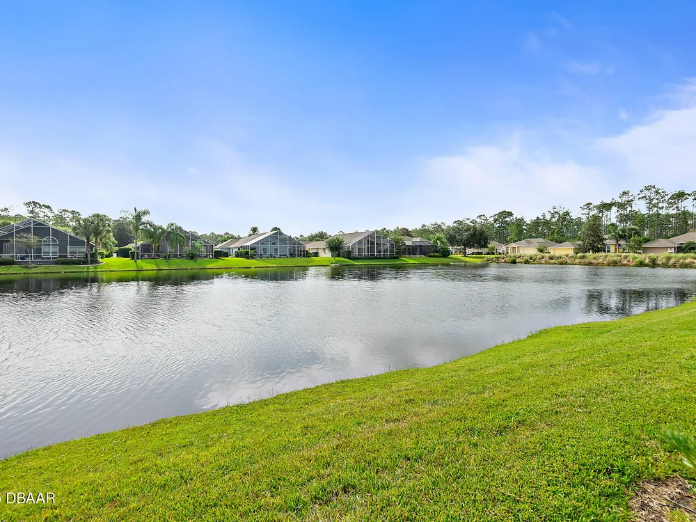 Nestled within Plantation Bay, one of Central Florida's most sought-after guard gated golf communities, this fully updated, elegant waterfront home offers the ideal blend of modern comfort, timeless style, and resort-style living. Featuring 3 spacious bedrooms, 2 luxurious bathrooms, and nearly 1,900 square feet of meticulously designed living space, this residence is a private sanctuary that delivers both function and sophistication. From the moment you arrive, you're welcomed by stunning double etched glass doors that lead you to a spacious, open-concept floor plan highlighted by a dramatic coffered ceiling, gorgeous vinyl plank flooring, and breathtaking water views that immediately draw you in. The living and dining areas offer a seamless flow, ideal for both effortless entertaining and everyday relaxation. At the heart of the home lies the custom-designed chef's kitchen, showcasing striking granite countertops, a stylish tile backsplash, and upgraded cabinetry with deep pull-outs for maximum functionality. Culinary enthusiasts will appreciate the premium stainless steel appliances, hood range, and a dedicated custom coffee bar complete with additional granite counter space and storage, all thoughtfully designed with finishes that elevate the space while providing both beauty and performance. The split bedroom floor plan offers ideal privacy, with an expansive primary suite tucked away to one side of the home. Enjoy peaceful water views, a custom walk-in closet thoughtfully designed with built-in shelving for maximum organization, and a spa-inspired en suite bath featuring a sleek granite-topped vanity. On the opposite side, two generously sized guest bedrooms share a beautifully updated full bathroom, perfect for family, guests, or a home office setup. Step outside to the extended screened lanai, where you can relax and unwind while taking in serene waterfront views, the perfect setting for morning coffee, alfresco dining, or simply enjoying Florida's beautiful weather year-round. Other key notable features include: roof 2022, new screen enclosure (2024), new lanai pavers, and new carpet. Plantation Bay isn't just a neighborhood; it's a golf-cart-friendly community that masterfully blends convenience with peaceful relaxation. You'll find yourself perfectly tucked away, yet still conveniently located to everything you could desire. Plantation Bay offers an impressive array of amenities designed for an active and social lifestyle. Enjoy multiple clubhouses, a fitness center, lighted tennis and pickle ball courts, 45 holes of championship golf and a brand-new, state-of-the-art $30 million clubhouse. While memberships are optional, the opportunities for recreation and community engagement here are truly boundless.