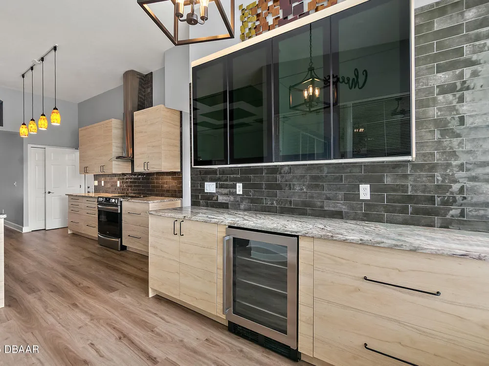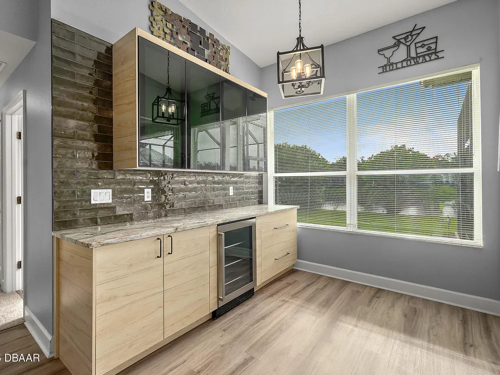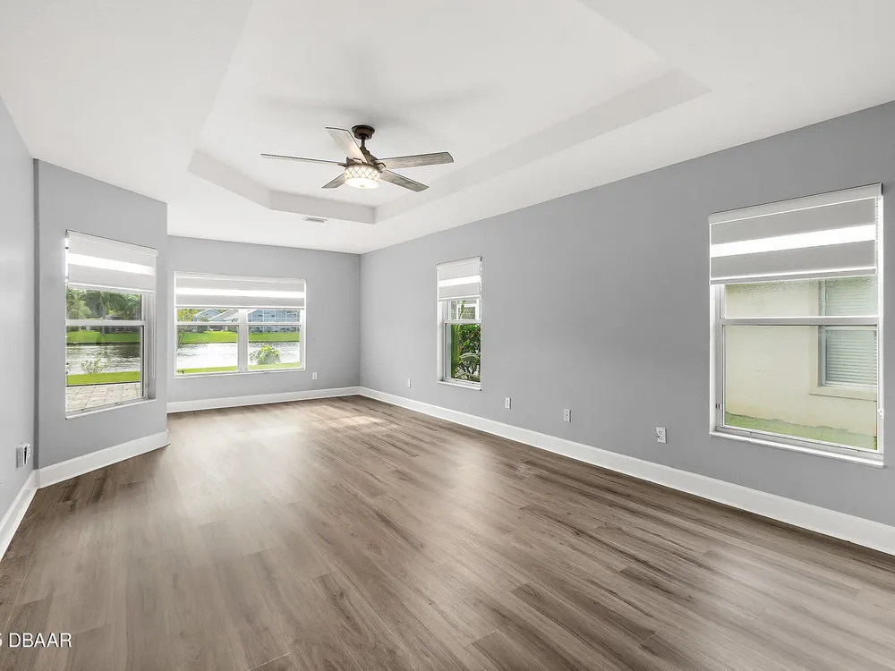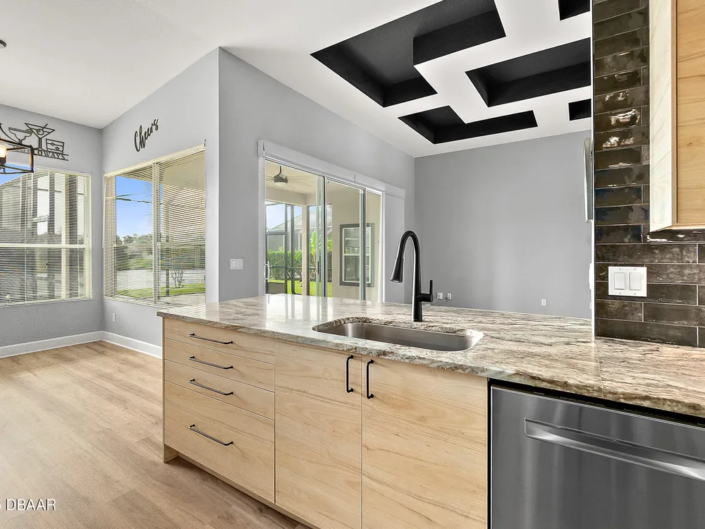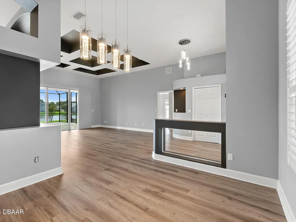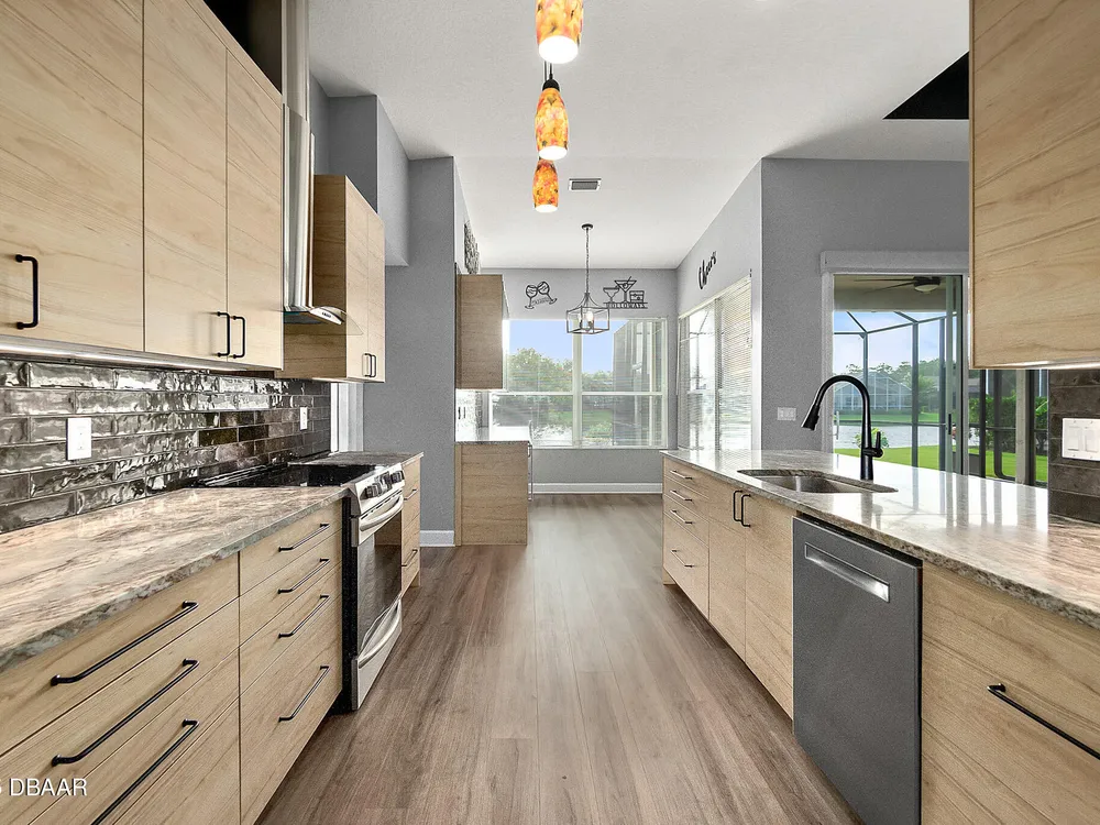 Nestled within Plantation Bay, one of Central Florida's most sought-after guard gated golf communities, this fully updated, elegant waterfront home offers the ideal blend of modern comfort, timeless style, and resort-style living. Featuring 3 spacious bedrooms, 2 luxurious bathrooms, and nearly 1,900 square feet of meticulously designed living space, this residence is a private sanctuary that delivers both function and sophistication. From the moment you arrive, you're welcomed by stunning double etched glass doors that lead you to a spacious, open-concept floor plan highlighted by a dramatic coffered ceiling, gorgeous vinyl plank flooring, and breathtaking water views that immediately draw you in. The living and dining areas offer a seamless flow, ideal for both effortless entertaining and everyday relaxation. At the heart of the home lies the custom-designed chef's kitchen, showcasing striking granite countertops, a stylish tile backsplash, and upgraded cabinetry with deep pull-outs for maximum functionality. Culinary enthusiasts will appreciate the premium stainless steel appliances, hood range, and a dedicated custom coffee bar complete with additional granite counter space and storage, all thoughtfully designed with finishes that elevate the space while providing both beauty and performance. The split bedroom floor plan offers ideal privacy, with an expansive primary suite tucked away to one side of the home. Enjoy peaceful water views, a custom walk-in closet thoughtfully designed with built-in shelving for maximum organization, and a spa-inspired en suite bath featuring a sleek granite-topped vanity. On the opposite side, two generously sized guest bedrooms share a beautifully updated full bathroom, perfect for family, guests, or a home office setup. Step outside to the extended screened lanai, where you can relax and unwind while taking in serene waterfront views, the perfect setting for morning coffee, alfresco dining, or simply enjoying Florida's beautiful weather year-round. Other key notable features include: roof 2022, new screen enclosure (2024), new lanai pavers, and new carpet. Plantation Bay isn't just a neighborhood; it's a golf-cart-friendly community that masterfully blends convenience with peaceful relaxation. You'll find yourself perfectly tucked away, yet still conveniently located to everything you could desire. Plantation Bay offers an impressive array of amenities designed for an active and social lifestyle. Enjoy multiple clubhouses, a fitness center, lighted tennis and pickle ball courts, 45 holes of championship golf and a brand-new, state-of-the-art $30 million clubhouse. While memberships are optional, the opportunities for recreation and community engagement here are truly boundless.