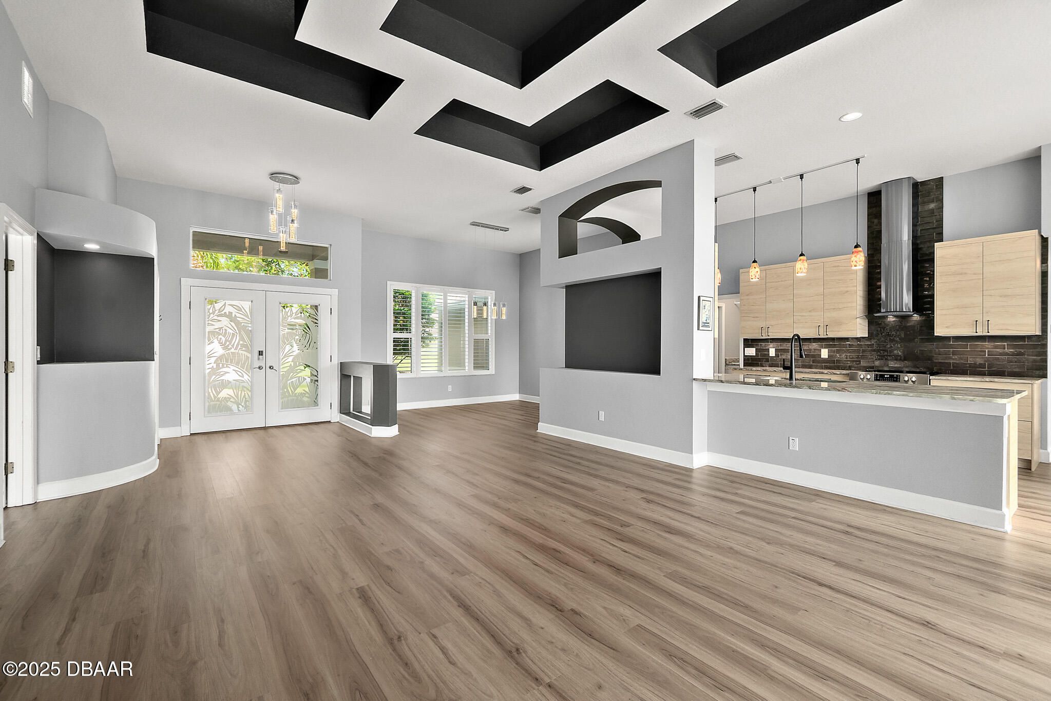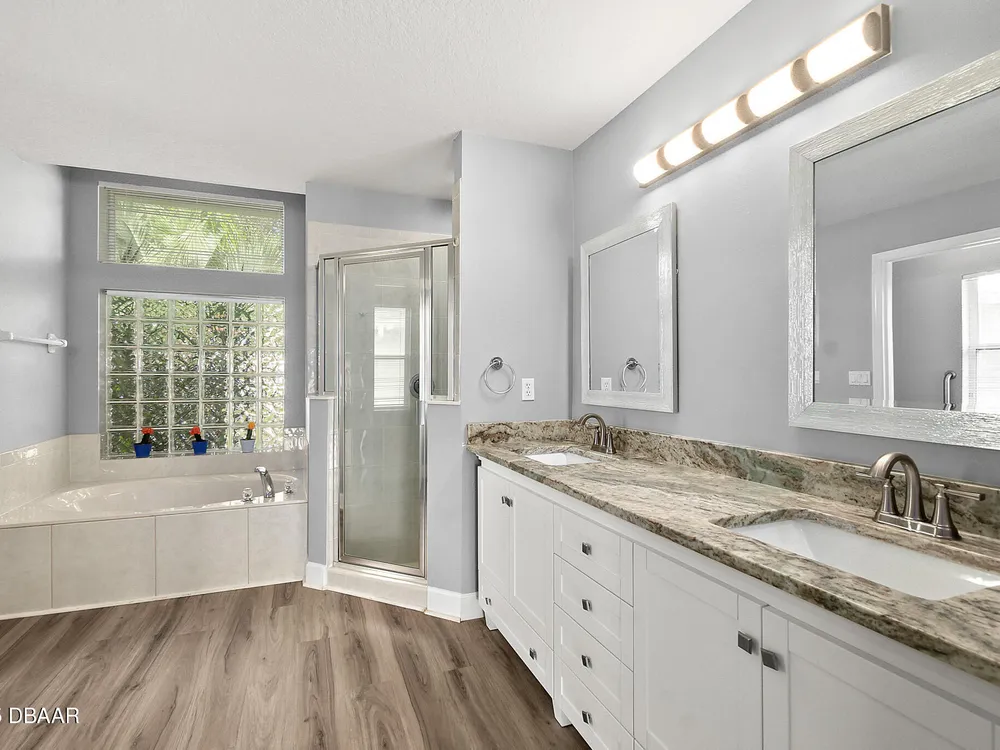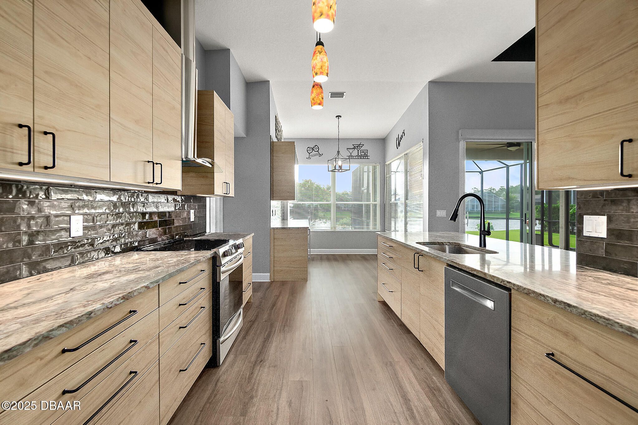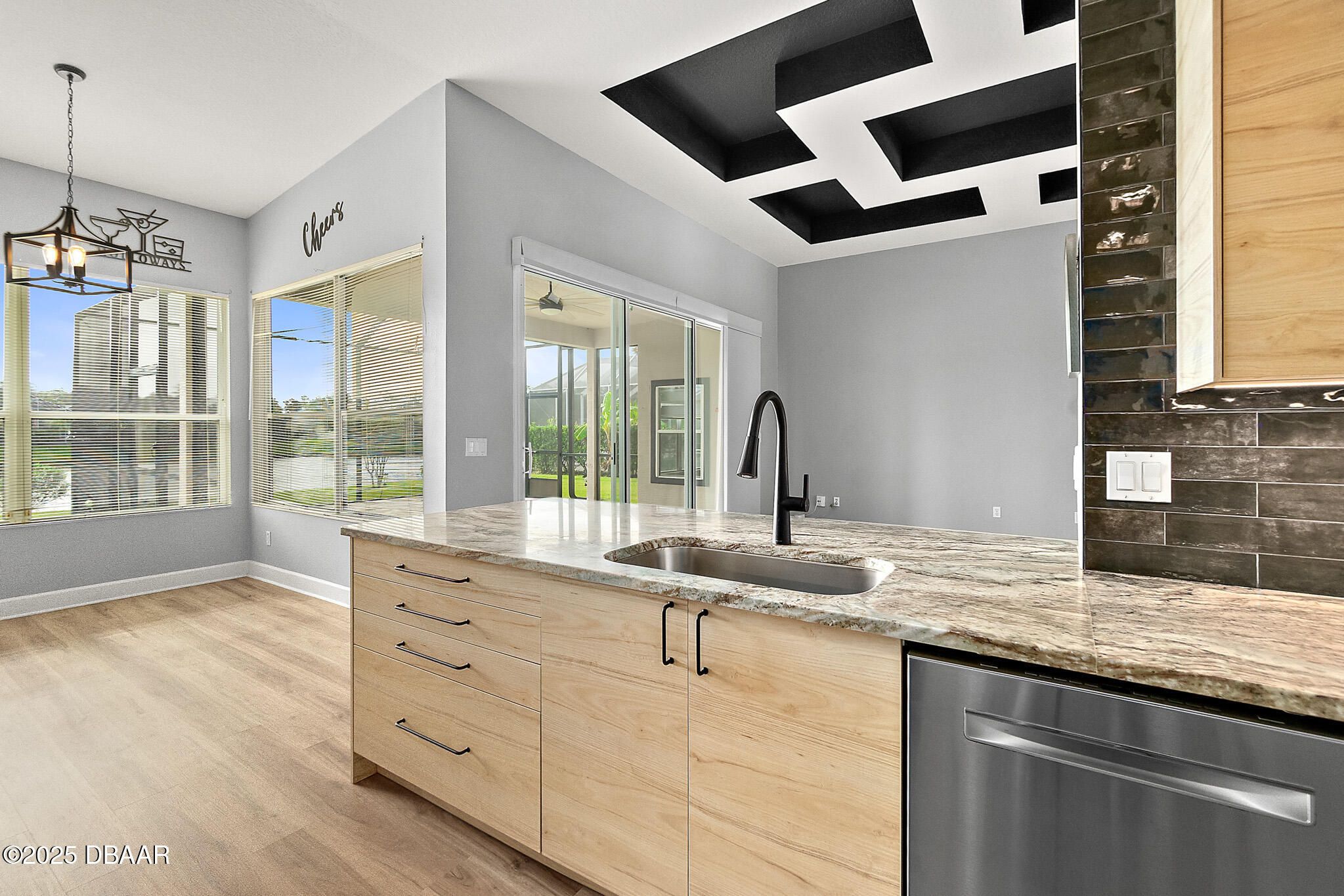 Nestled within Plantation Bay, one of Central Florida's most sought-after guard gated golf communities, this fully updated, elegant waterfront home offers the ideal blend of modern comfort, timeless style, and resort-style living. Featuring 3 spacious bedrooms, 2 luxurious bathrooms, and nearly 1,900 square feet of meticulously designed living space, this residence is a private sanctuary that delivers both function and sophistication. From the moment you arrive, you're welcomed by stunning double etched glass doors that lead you to a spacious, open-concept floor plan highlighted by a dramatic coffered ceiling, gorgeous vinyl plank flooring, and breathtaking water views that immediately draw you in. The living and dining areas offer a seamless flow, ideal for both effortless entertaining and everyday relaxation. At the heart of the home lies the custom-designed chef's kitchen, showcasing striking granite countertops, a stylish tile backsplash, and upgraded cabinetry with deep pull-outs for maximum functionality. Culinary enthusiasts will appreciate the premium stainless steel appliances, hood range, and a dedicated custom coffee bar complete with additional granite counter space and storage, all thoughtfully designed with finishes that elevate the space while providing both beauty and performance. The split bedroom floor plan offers ideal privacy, with an expansive primary suite tucked away to one side of the home. Enjoy peaceful water views, a custom walk-in closet thoughtfully designed with built-in shelving for maximum organization, and a spa-inspired en suite bath featuring a sleek granite-topped vanity. On the opposite side, two generously sized guest bedrooms share a beautifully updated full bathroom, perfect for family, guests, or a home office setup. Step outside to the extended screened lanai, where you can relax and unwind while taking in serene waterfront views, the perfect setting for morning coffee, alfresco dining, or simply enjoying Florida's beautiful weather year-round. Other key notable features include: roof 2022, new screen enclosure (2024), new lanai pavers, and new carpet. Plantation Bay isn't just a neighborhood; it's a golf-cart-friendly community that masterfully blends convenience with peaceful relaxation. You'll find yourself perfectly tucked away, yet still conveniently located to everything you could desire. Plantation Bay offers an impressive array of amenities designed for an active and social lifestyle. Enjoy multiple clubhouses, a fitness center, lighted tennis and pickle ball courts, 45 holes of championship golf and a brand-new, state-of-the-art $30 million clubhouse. While memberships are optional, the opportunities for recreation and community engagement here are truly boundless.