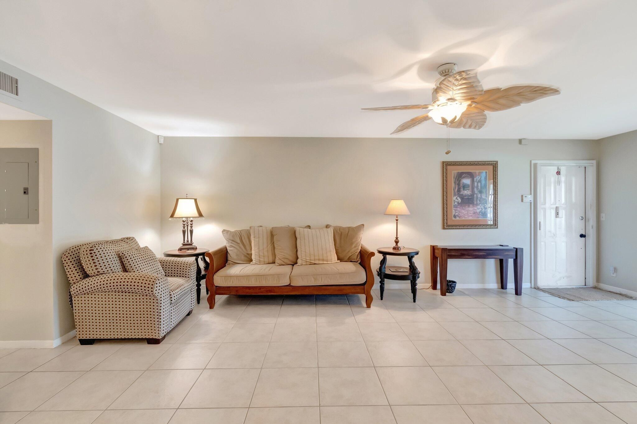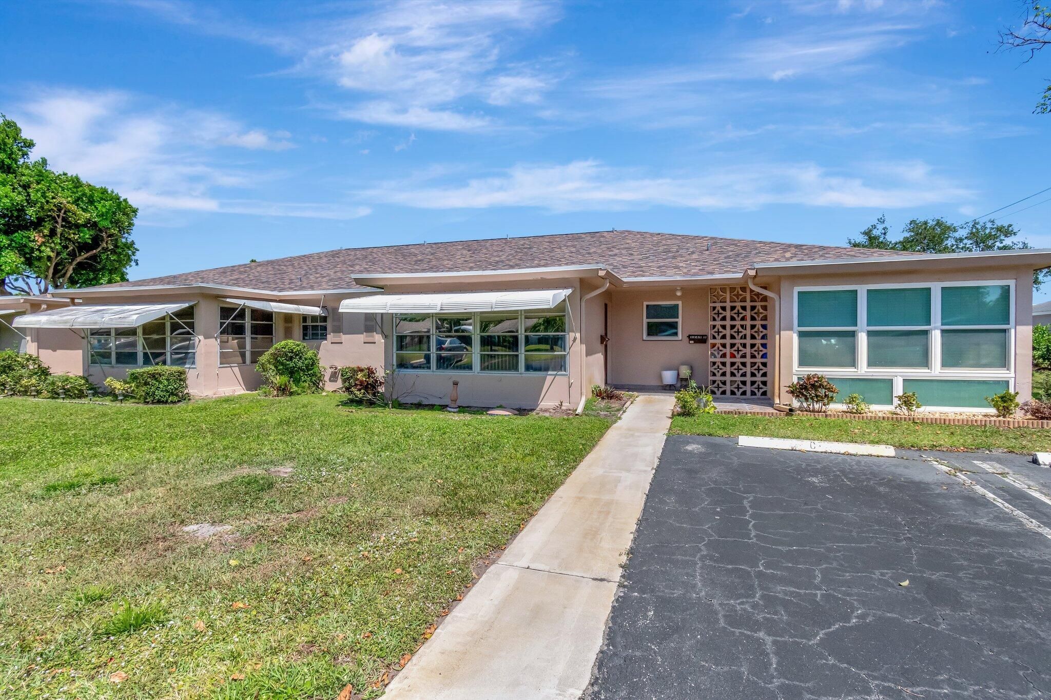 SPACIOUS & BRIGHT VILLA! Conveniently located Villa style condo on a quiet cul de sac in High Point Section 6. HUGE 1 bedroom, 2 full bath condo offered furnished/unfurnished with large tile floors throughout. Beautifully maintained! Smooth ceilings enhance the brightness of the condo, no popcorn. Lovely bright, cozy Florida room with quality built-ins for extra storage. Pavered back patio w/plenty of ''green space'', perfect for BBQ's or relaxing with a good book. GE Electric panel, NEW water heater (2025), Roof 2019. W/D allowed inside unit! Enjoy the wonderful amenities of High Point of Delray section 6, including pool, tennis/pickleball game courts and clubhouse. Well located near shopping, a variety of amazing restaurants, I95 and apprx 5 miles to the beach! VA Loans Welcome!