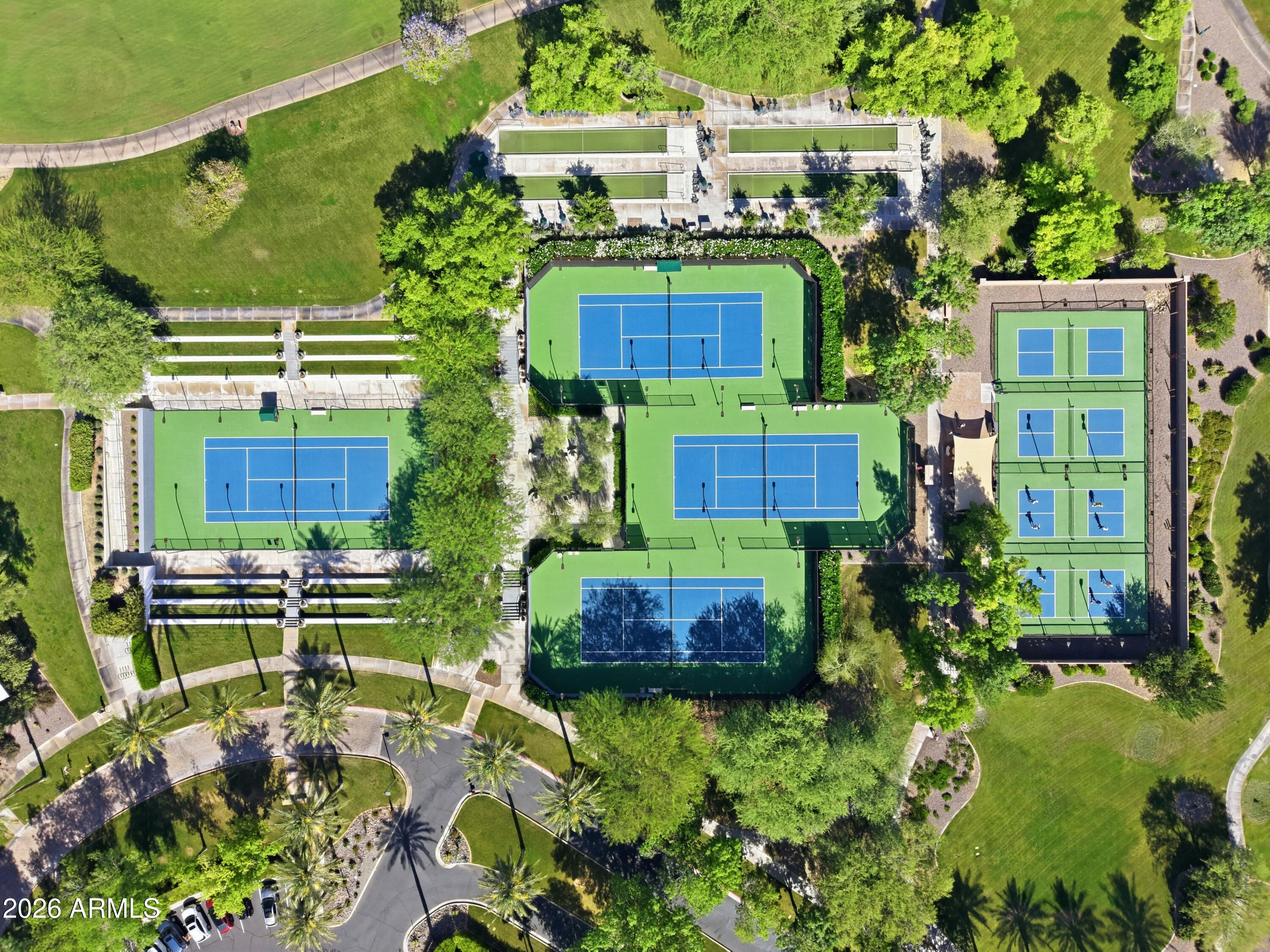 - Pool, Racquetball, Golf, Pickleball, Gated, Community Spa Htd, Community Media Room, Guarded Entry, Tennis Court(s), Biking/Walking Path, Fitness Center