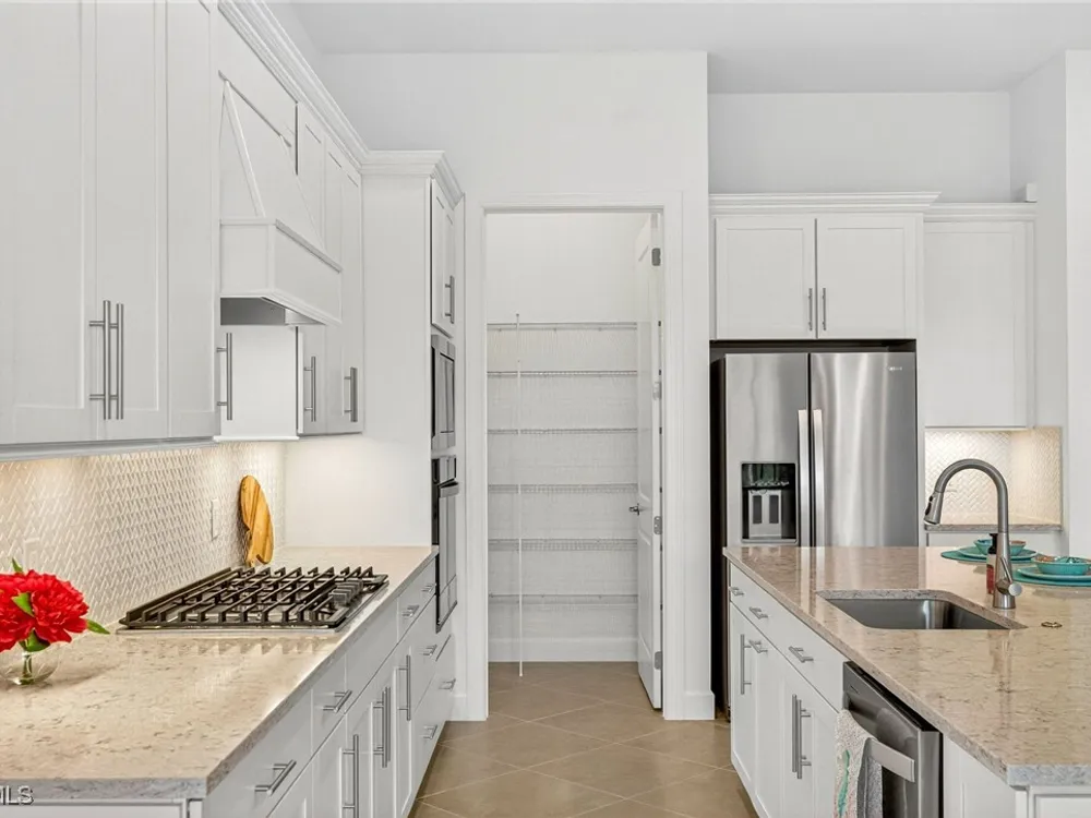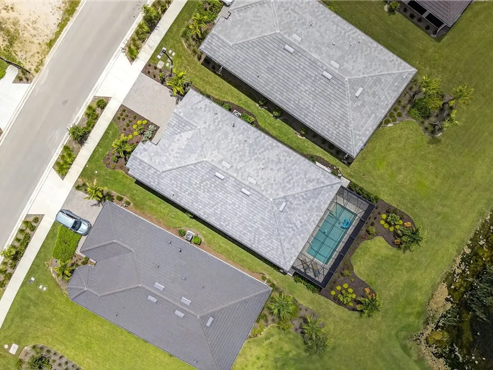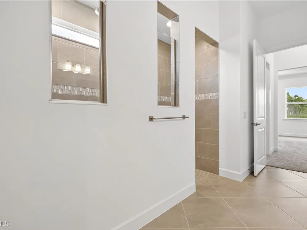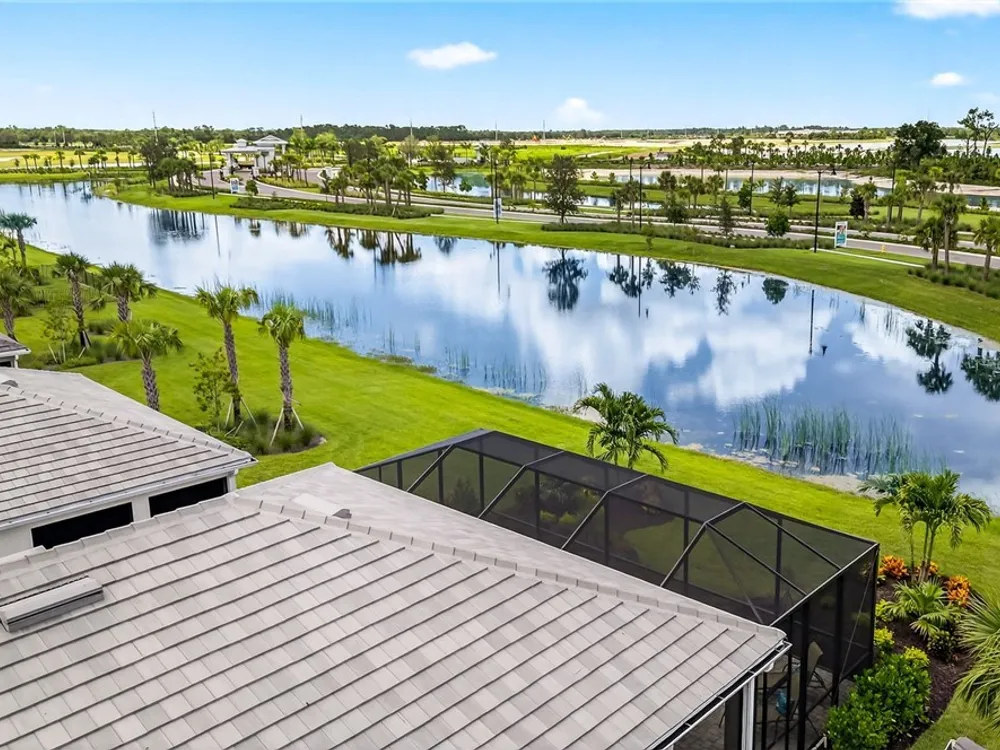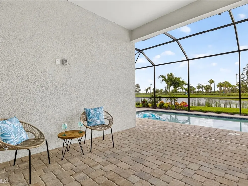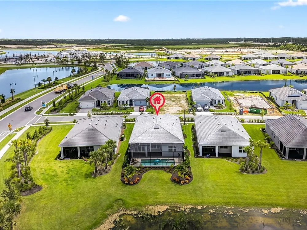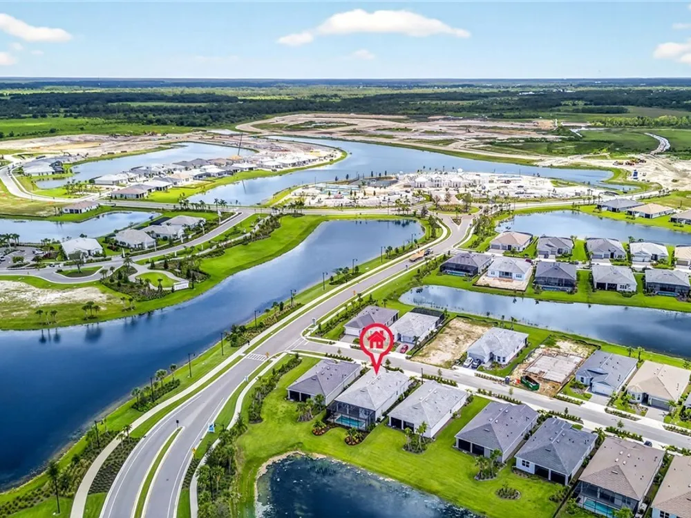 Babcock Ranch is a fast-growing top 10 planned community in the US, and is the hurricane resistant, solar powered and self-sustainable town of the future. This like-new DiVosta (Pulte) Prestige model located in Babcock Ranch is in the active adult TerraWalk community. There are loads of upgrades in this home, including a third bedroom and half bath, ideal for day and dinner guests. The beautiful white cabinets, built-in oven and island with quartz countertops make your kitchen a perfect place to spend time with family and friends. The fabulous diamond pattern tile runs throughout the main living space of the home. The private primary ensuite boasts frameless glass doors for the shower, dual sinks in the large vanity, and two large walk-in closets. A second ensuite with a bath and walk-in closet is a perfect guest hideaway. Additional upgrades include professionally replaced landscaping, hurricane rated windows and doors, all new screens and added shelving in all closets and pantries. Another BIG bonus... this home is covered by a transferrable warranty from the builder, Pulte's 1-2-5-10 plan. Everything is fully covered through the end of April 2026. As you look out back to your magnificent outdoor space, you will notice two sets of triple sliding doors leading to your private outdoor oasis. Just past the covered lanai area is your own inground pool under a screened cage, and it all overlooks a pond where you can fish or just enjoy the abundance of nature. TerraWalk is an exceptional community, with an eight-acre, resident-only amenity campus scheduled for a December 2025 completion. There will soon be a resort style pool with poolside service, bar, restaurant, pickle ball and tennis courts, bocce, fitness center, even a dog park. This is a prime community that will be a showpiece for all of Babcock Ranch to envy.