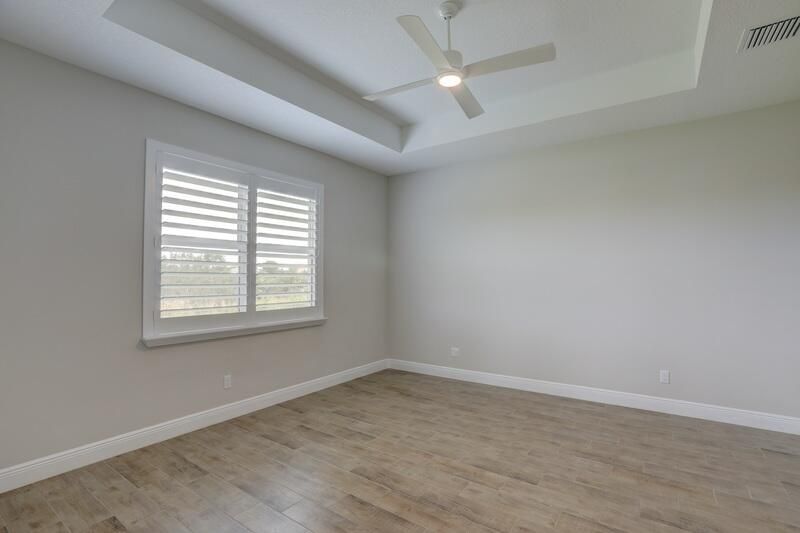 PRICED TO SELL! Like-new GHO home featuring 2 bedrooms plus a den/office or optional 3rd bedroom, 2.5 baths, and a 2-car garage with A/C and epoxy flooring. The gourmet kitchen offers quartz countertops, a large island, double ovens, and stainless-steel appliances, opening to a bright living and dining area with a built-in serving cabinet—ideal for entertaining. Tile flooring throughout, volume ceilings, plantation shutters, and impact windows and doors. The spacious primary suite includes large his-and-her closets. Enjoy a screened porch and private yard backing up to a serene preserve. Resort-style amenities, HOA covers lawn care, irrigation, cable, internet, alarm services, and more. This is an exceptional value in Lake Park at Tradition - 55+ community. Act NOW! szsapproxsubtoerr