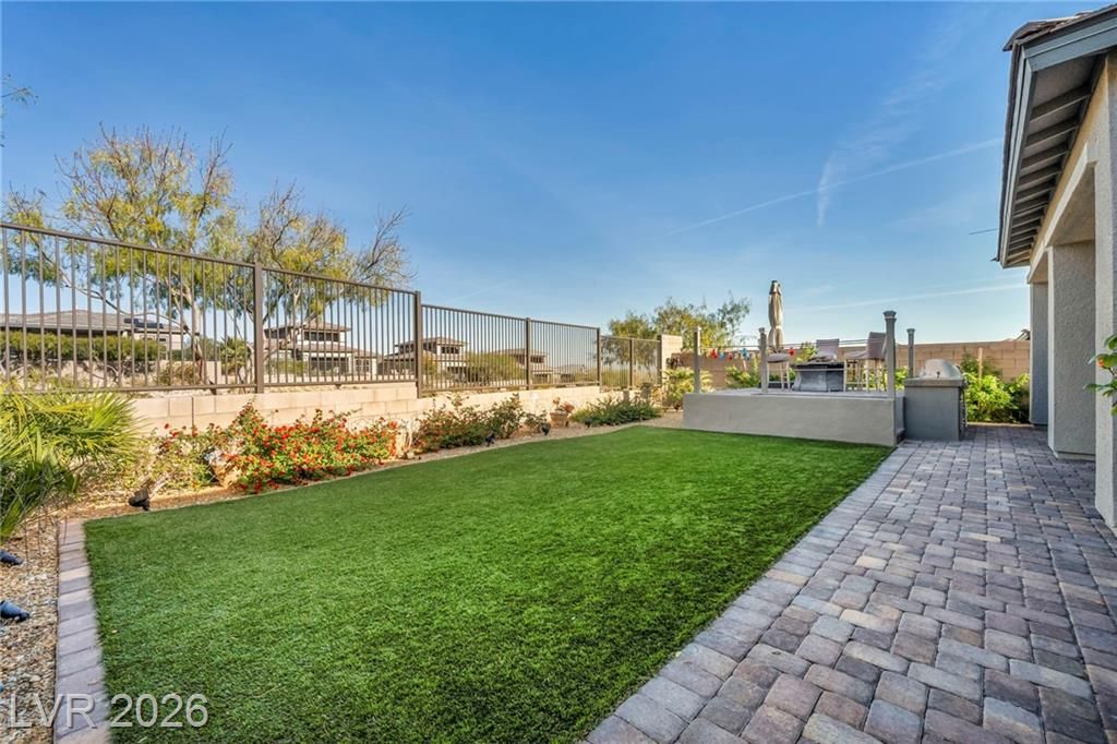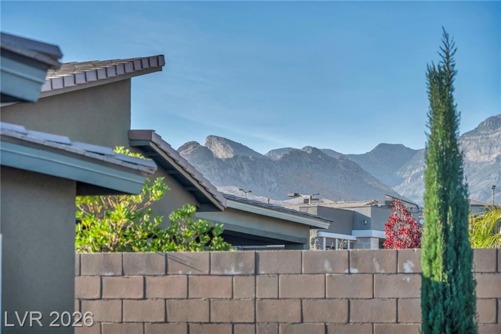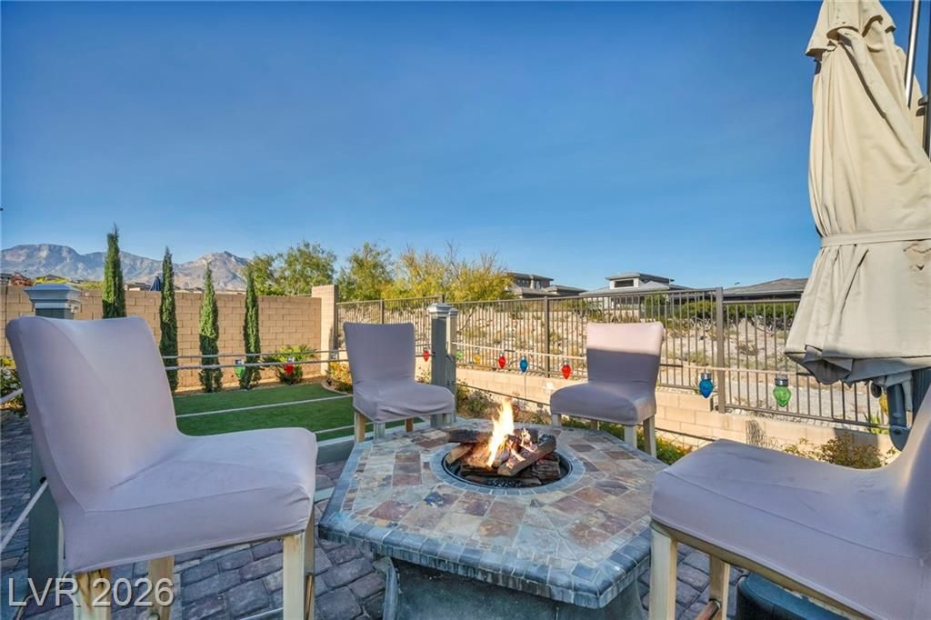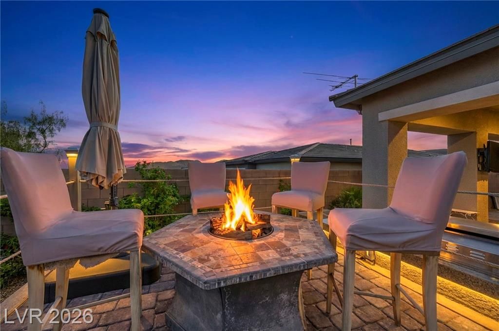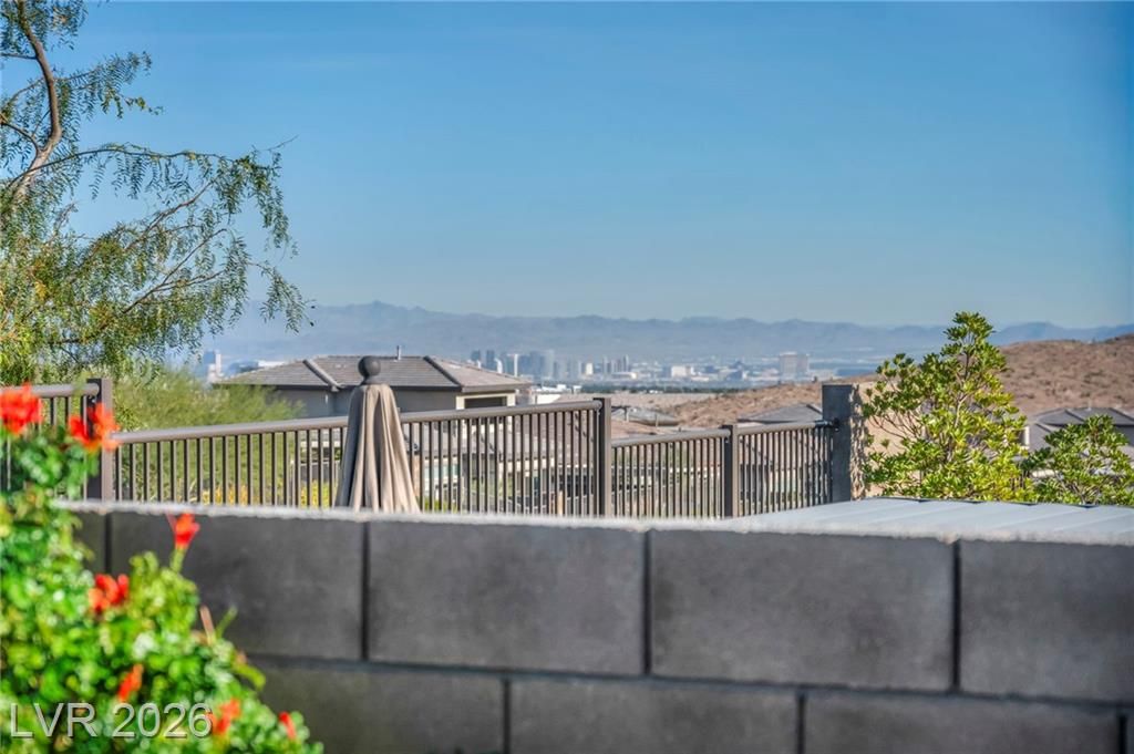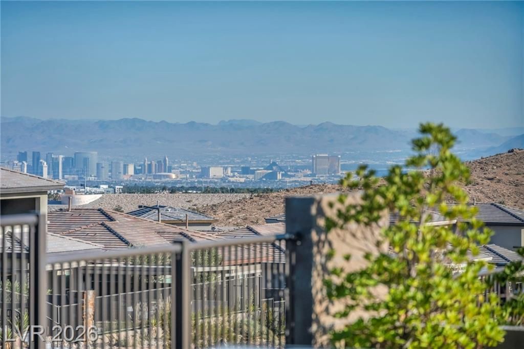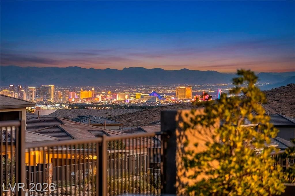 Breathtaking Strip & Mountain Views! This modern 2022-built home sits on an incredible lot with no rear neighbors, offering unobstructed views of the Strip and surrounding mountains. Inside, enjoy 2 bedrooms, 2 bathrooms, ceiling fans, fireplaces, and a primary suite with direct backyard access. The kitchen boasts granite countertops, a striking upgraded backsplash, a large island, stainless steel appliances, and LVP flooring. Step outside to a beautifully finished backyard complete with a built-in BBQ and firepit—perfect for entertaining. Situated in the gated Heritage community within Stonebridge, Summerlin, residents have access to a full clubhouse with pool, spa, fitness center, pickleball, and a variety of activities. Conveniently located just minutes from Red Rock Canyon, Downtown Summerlin, and Red Rock Casino & Resort, this home offers the ultimate Vegas lifestyle with top-notch amenities and recreation.