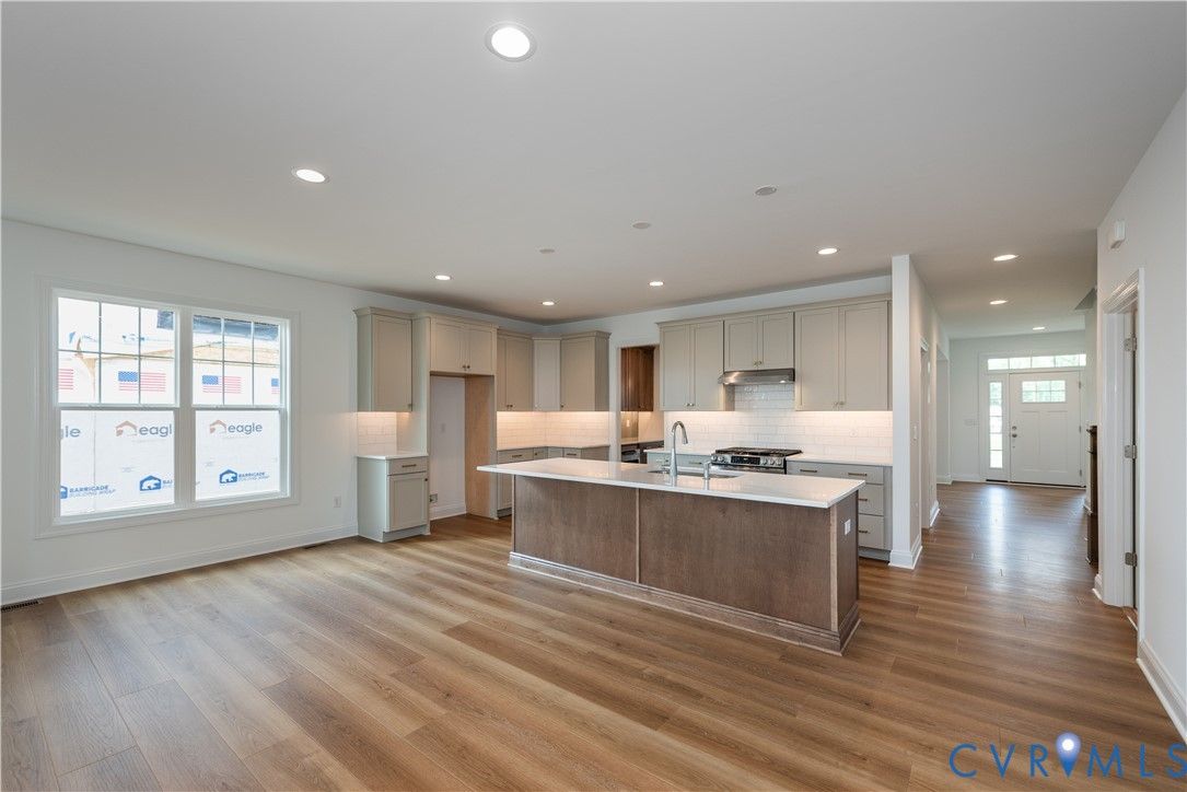 MOVE-IN READY: EARLY 2026 – The Linden III offers over 2,600 sq ft of thoughtfully designed living across two levels, featuring 3 bedrooms, 2.5 baths, and a layout built for both everyday comfort and effortless entertaining. The main level centers around an expansive kitchen with quartz countertops, upgraded cabinetry, and a large island overlooking the open breakfast nook and family room featuring a gas fireplace. A formal dining room sits at the front of the home, while a private study offers flexible space for work or quiet retreat. Tucked away on the first floor, the primary suite provides a serene escape with an enlarged all-ceramic Serenity Shower, dual vanities, and a generous walk-in closet. A central laundry room adds convenience to daily living. Upstairs, a loft landing leads to two additional bedrooms and a full bath, plus a conditioned unfinished storage area for long-term organization. Additional highlights include hardwood-style flooring throughout key areas, upgraded lighting, stylish bathroom fixtures, and a stamped concrete patio extension. Located in the low-maintenance Readers Branch community with active amenities and convience to Short Pump.