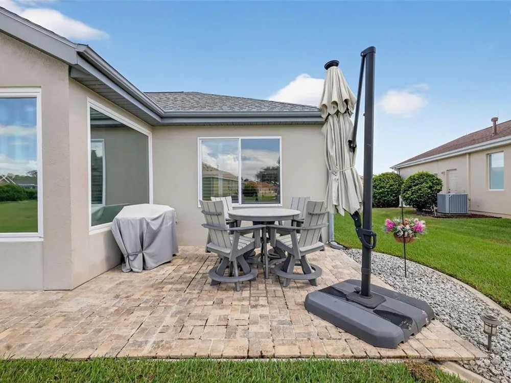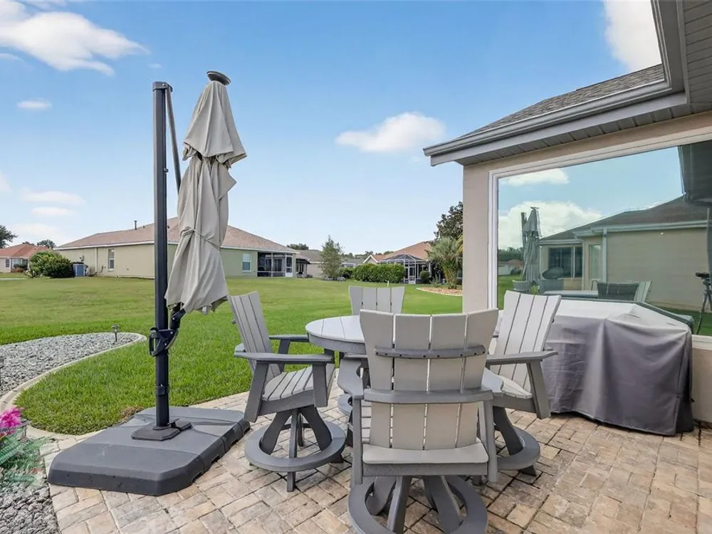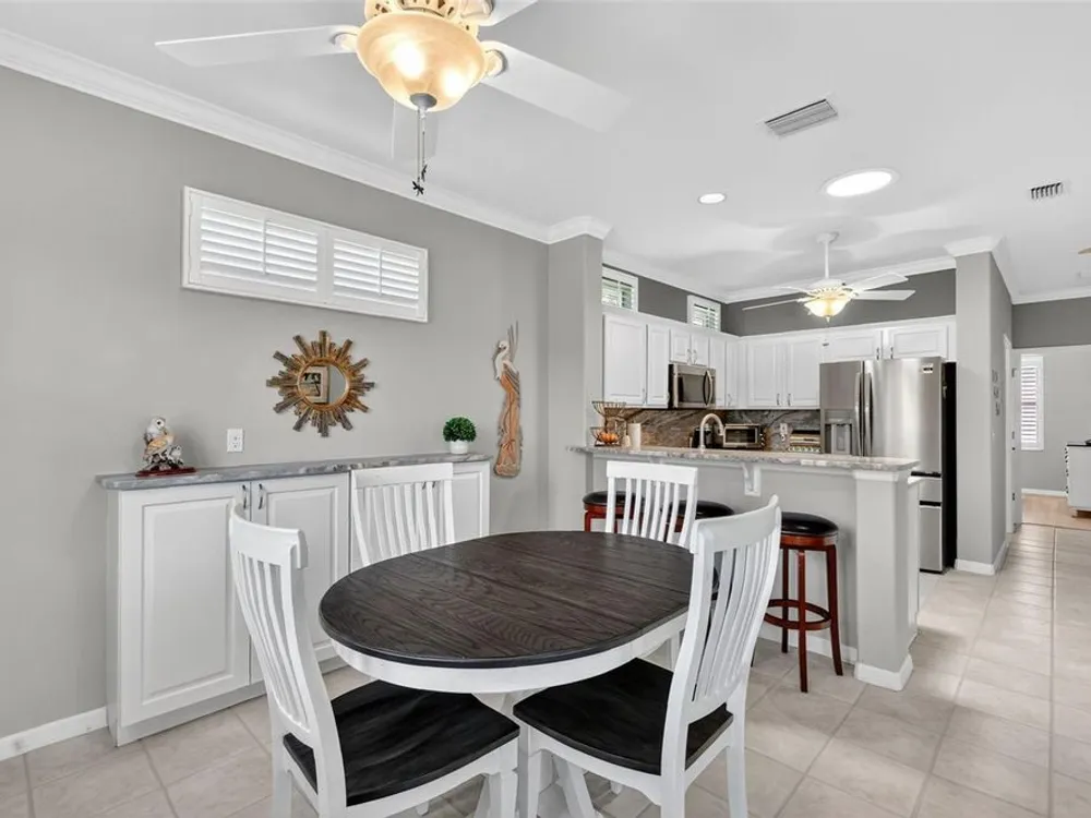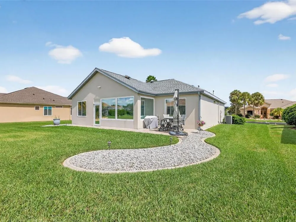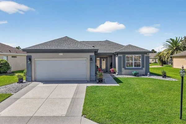 This TURNKEY updated, furnished 2-bedroom, 2-bathroom home is truly inviting. As you approach the residence, you will appreciate the mature landscaping, epoxy driveway and walkway, as well as the landscape curbing complemented by rock beds. Upon entering the home, you will be captivated by its modern charm, highlighted by the glass front door leading to a tiled entryway. The living room is filled with natural light from the windows, a solar tube, and a fan/light combination, connecting to the updated kitchen. This kitchen boasts granite countertops, newer stainless-steel appliances, recessed cabinets, and a pantry. The dining area provides an excellent space for entertaining guests. The owner's suite is a welcoming retreat featuring LVP flooring, a walk-in closet, and an ensuite bathroom equipped with custom mirrors, double sinks, and glass doors leading to a step-in shower with a seat. The guest bedroom also offers a spacious layout with LVP flooring and a fan/light combination with convenient access to updated guest bathroom. The glass enclosed lanai, complete with air conditioning, serves as a versatile space for various uses. The backyard is equally impressive, featuring a pavered sitting area adorned with an umbrella and outdoor furniture, creating an ideal setting for relaxation and enjoyment. Several additional enhancements have been made, including crown molding, plantation shutters, an upgraded air conditioning controller, a new irrigation system that provides control over the B Hive sprinkler, and the installation of more economical sprinkler heads. Del Webb Spruce Creek is a gated 55+ community offering an active lifestyle. Community offers clubhouse with recreation including a swimming pool, fitness room, billiards, pickleball courts, softball clubs, and more. Whether you’re looking for a winter retreat or a home to enjoy year-round, this could be the perfect fit! Quick close possible—ask how to make this home yours today!