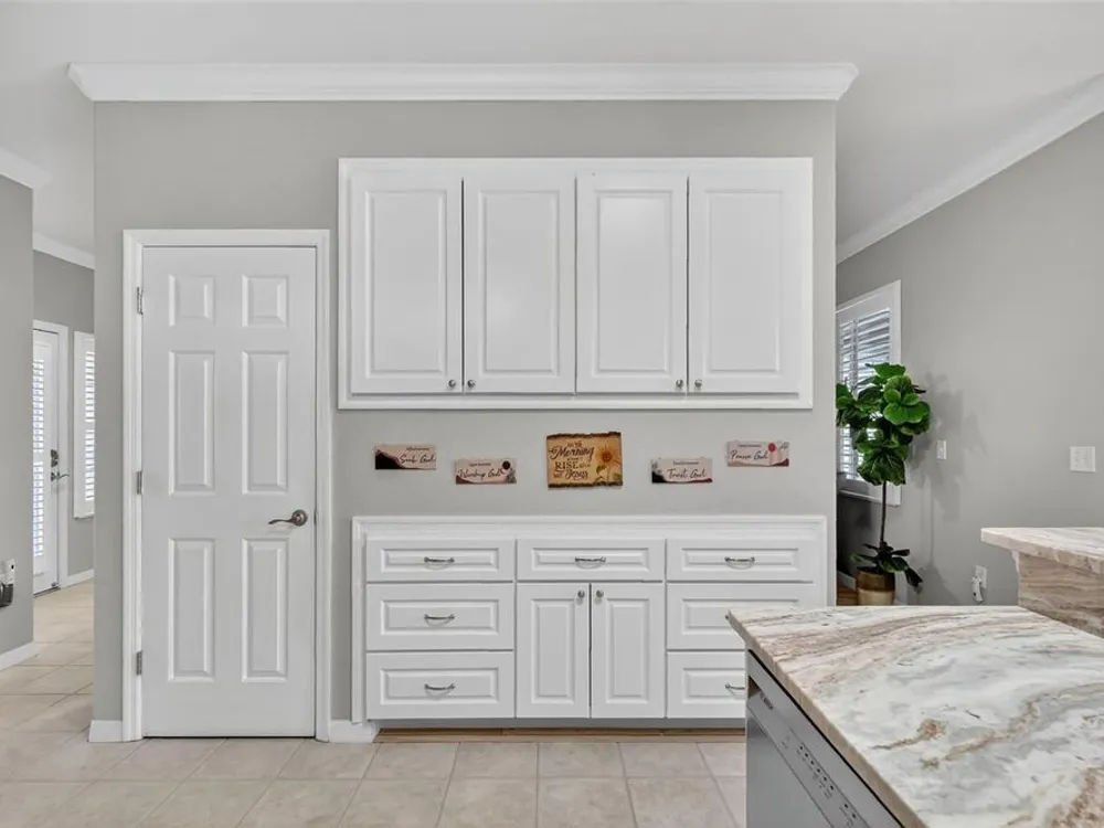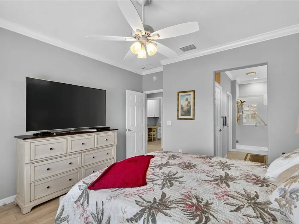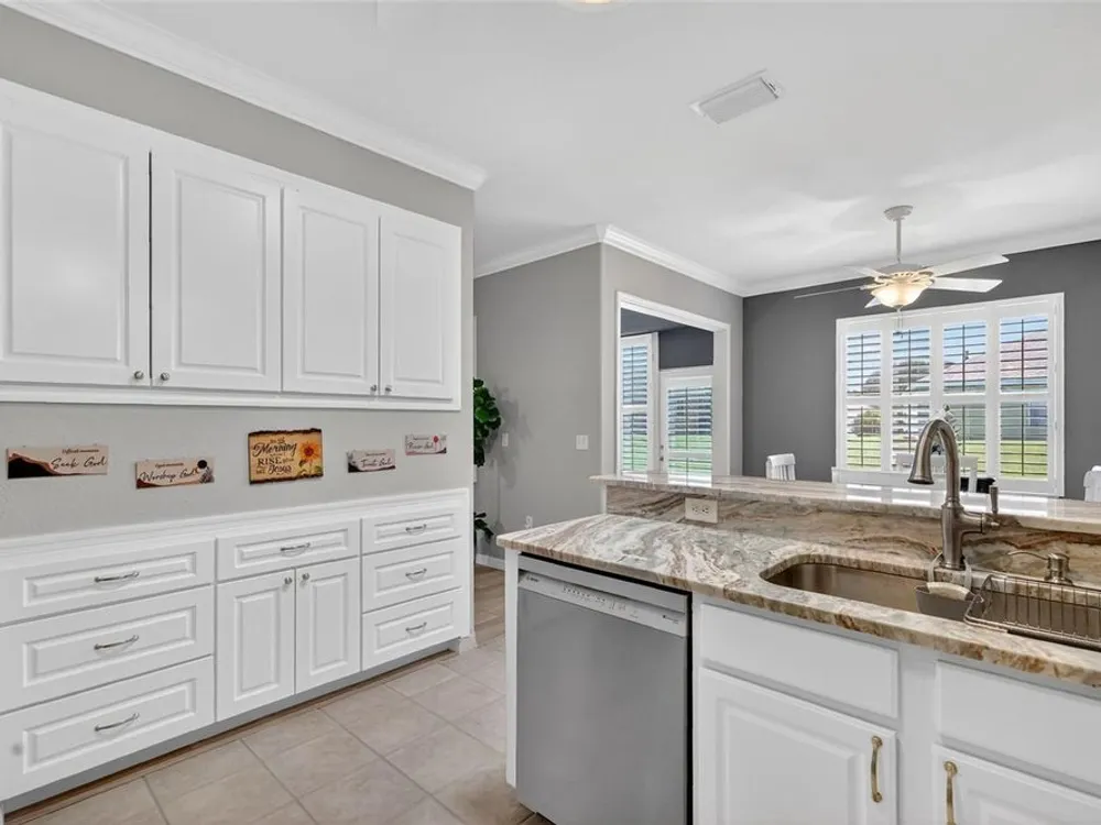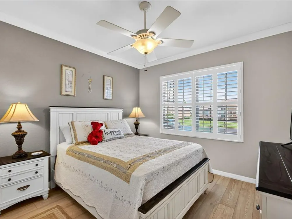 - Ceiling Fan(s), Crown Molding, Main Level Primary, Split Bedrooms, Stone Counters, Thermostat