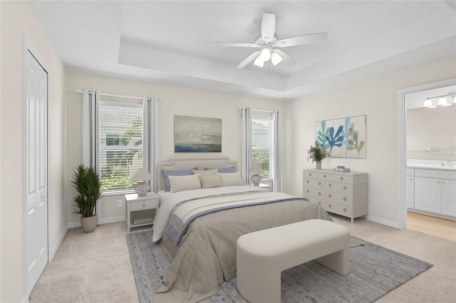 One or more photo(s) has been virtually staged. Tucked into the heart of Grand Palm, this charming 2-bedroom, 2-bath cottage welcomes you with an easy, effortless lifestyle from the moment you arrive. Sunlight pours through oversized front windows, filling the open living space with warmth and creating the perfect backdrop for everyday living or relaxed entertaining. Updated light fixtures and LED lighting throughout the home enhance the bright, airy feel while adding modern style and energy efficiency. The living room flows seamlessly into the kitchen and dining area which creates an inviting layout designed for connection, comfort, and simplicity. The kitchen is both stylish and functional, featuring a center island, granite countertops, refinished cabinetry, and plenty of workspace for casual meals or quiet mornings at home. The primary suite offers a peaceful retreat with a walk-in closet and an ensuite bath complete with a walk-in shower, while the second bedroom provides privacy for guests or a home office. Designed with ease in mind, this one-level home is ideal for those seeking low-maintenance living, making it perfect for a single homeowner, a retired couple, or anyone ready to simplify without sacrificing quality. Thoughtful upgrades add peace of mind, including a new HVAC system, new water heater, new washer and dryer, refinished cabinetry throughout, a freshly epoxied garage floor, and hurricane shutters for easy storm preparation. Meticulously maintained and truly move-in ready, this home shines both inside and out. Beyond the front door, Grand Palm offers a resort-inspired lifestyle surrounded by nature. Start your mornings on miles of scenic walking and biking trails winding through lakes and preserves, spend afternoons by the lagoon-style pools or enjoying pickleball and bocce, and wind down with neighbors at community events, food truck nights, and holiday gatherings. With a fitness center, dog parks, social clubs, and year-round activities, it’s easy to feel connected here yet peaceful enough to feel like a getaway. Just minutes from downtown Wellen Park, shopping, dining, and Gulf Coast beaches, this home delivers the perfect blend of comfort, community, and convenience. Welcome home to Grand Palm, where life feels lighter, slower, and just a little more joyful. ¤ Please see 3D Tour and Video ¤