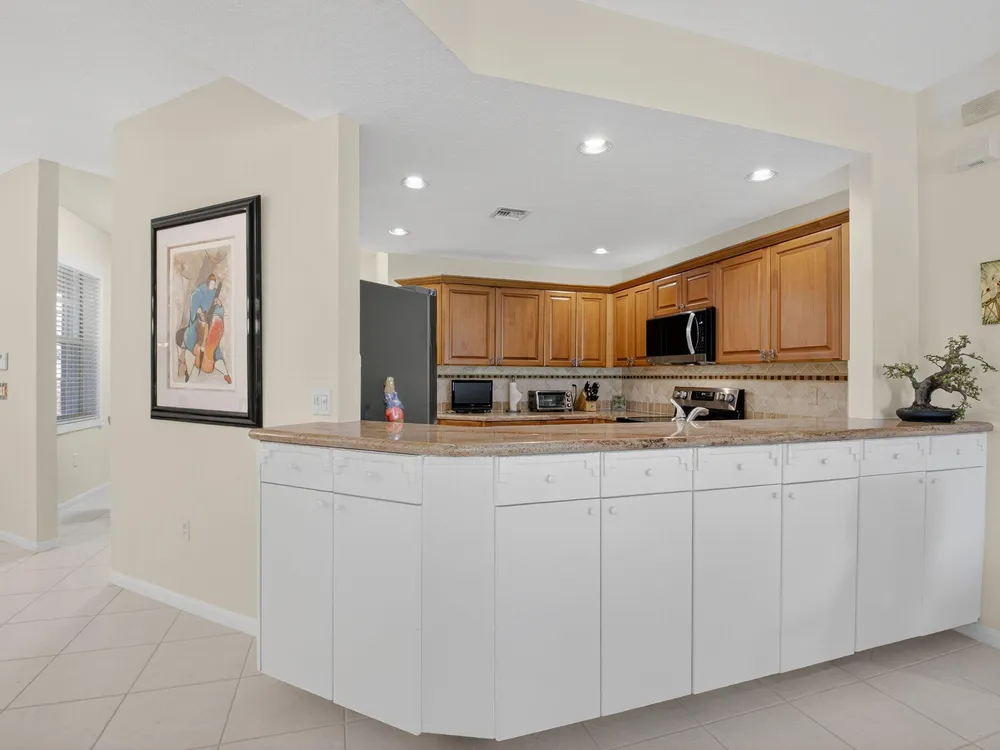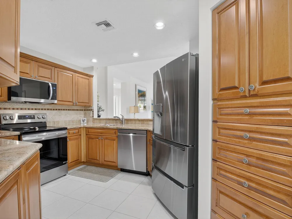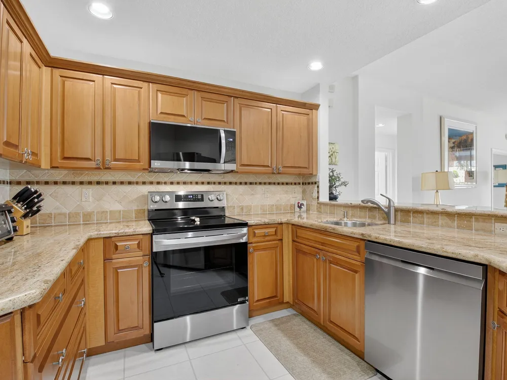 Enjoy Picturesque Lake Views and Serene Garden Surroundings! This updated 1st floor, 3-bed/2-bath home features a 1-car garage, storm shutters,, a great kitchen with newer SS appliances, custom cabinetry & granite counters. Bathrooms have been tastefully updated. Relax and take in the tranquil lake views from the spacious, glass-enclosed, screened-in patio. The living area features ceramic tile flooring, with laminate in the bedrooms. Modern, immaculate furnishings are available and can be included for the buyer's convenience. Roof installed in 2024-no assessments. Condo fee includes water, alarm, internet, insurance, landscaping. Coral Lakes is a most active community with a newly renovated clubhouse, cafe, theatre, tennis, pickleball, gym, billiards & much more.