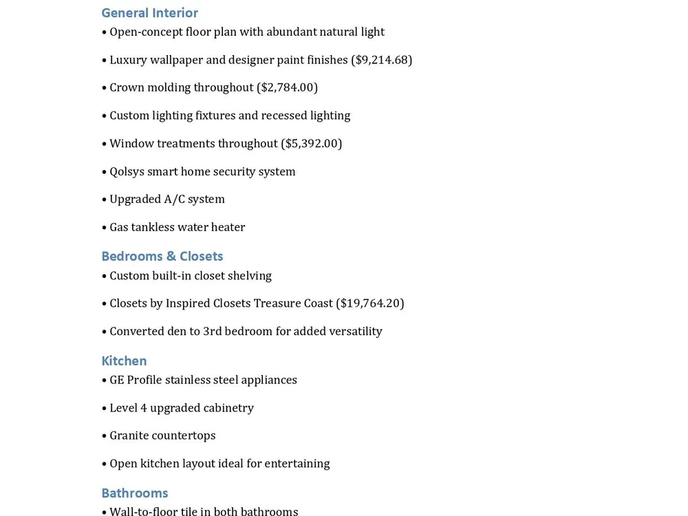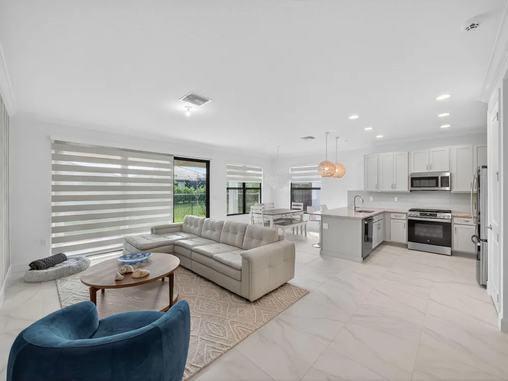 Experience luxury living at its finest in this meticulously upgraded 3-bedroom, 2-bathroom home located in the prestigious Valencia Walk at Riverland community. Every inch of this residence showcases elegance, craftsmanship, and thoughtful design. Step inside to an open floor plan enhanced by luxury wallpaper, designer paint, and custom lighting fixtures that create a warm, inviting atmosphere. The crown molding adds timeless sophistication throughout, while Closets by Inspired Closets Treasure Coast and built-in custom shelving maximize organization and style.