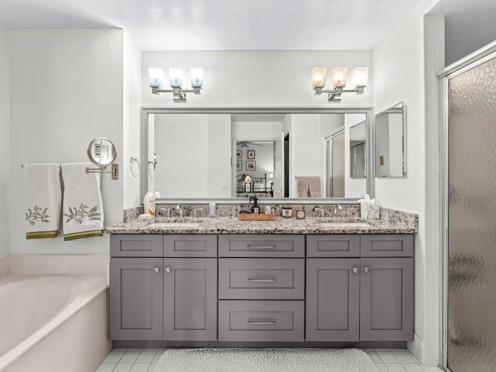 - Entry Level Living Area, Pantry, Garden Tub/Roman Tub, High Ceilings, Walk-In Closet(s), Home Office, Breakfast Area, Separate/Formal Dining Room, Blinds, Drapes, Sliding Window(s), Dual Sinks, Primary Downstairs, Separate Shower, Bathtub, Storm Shutters