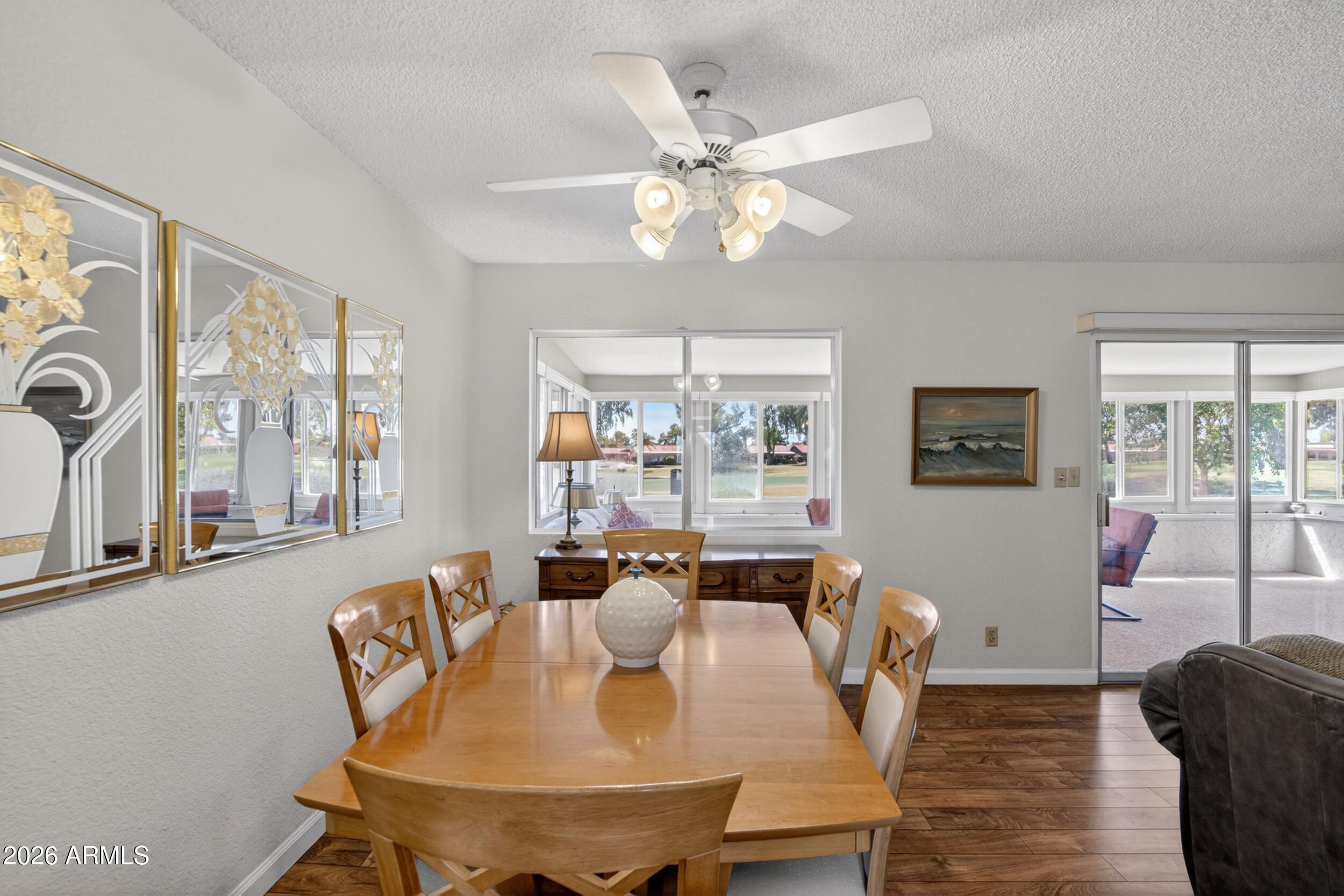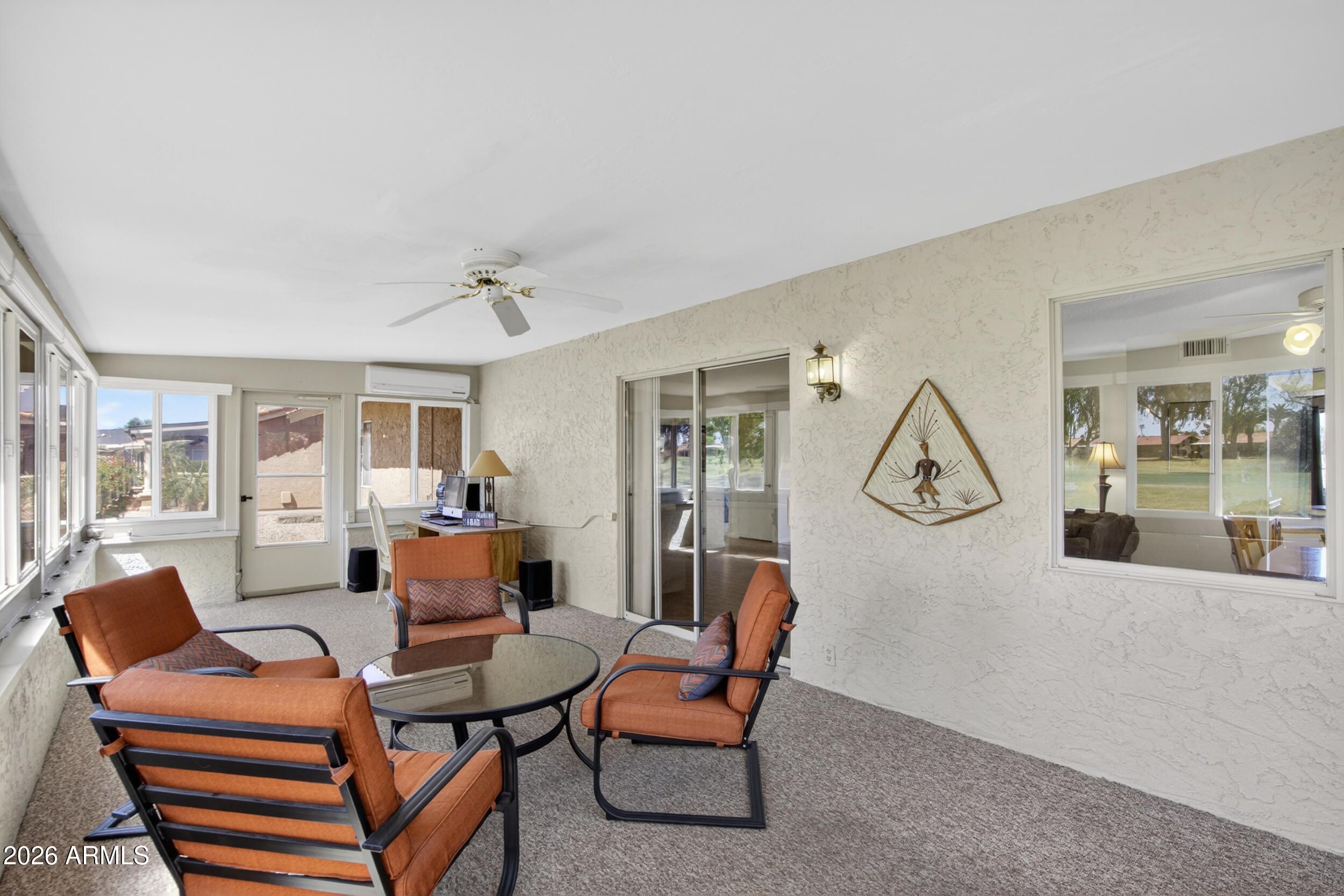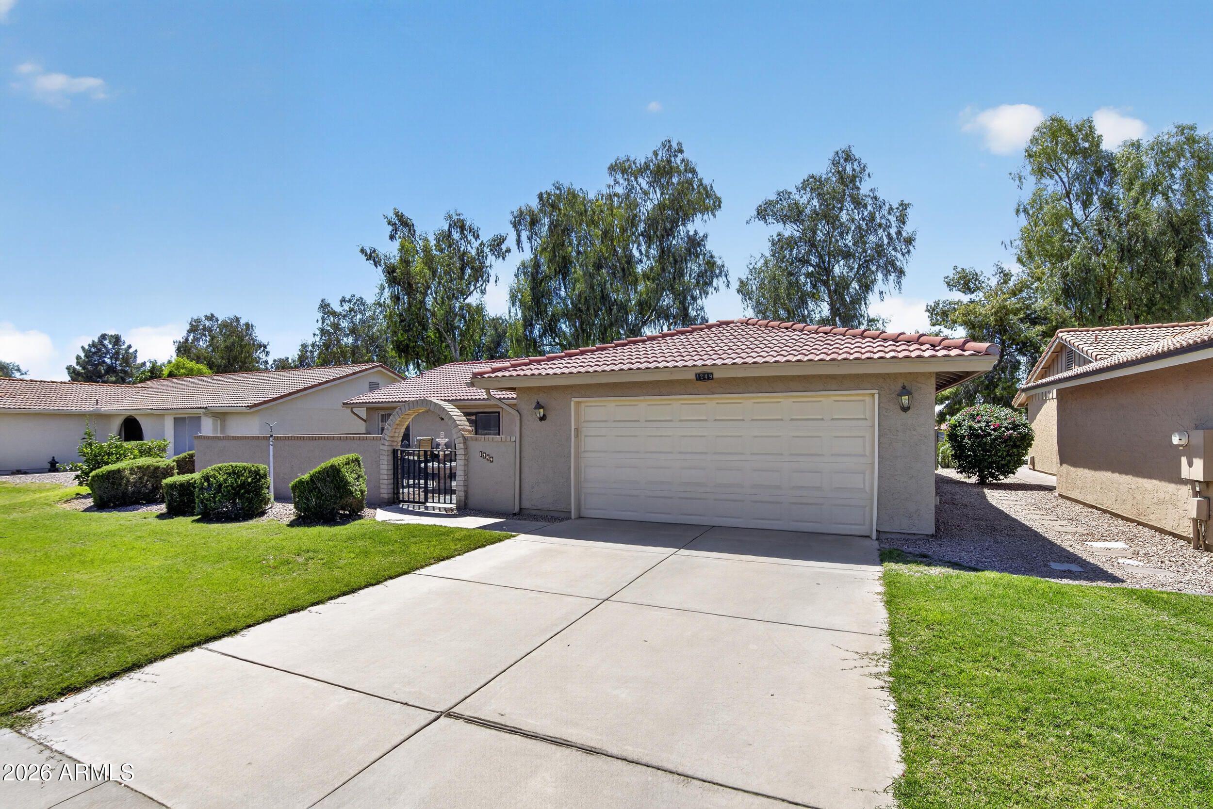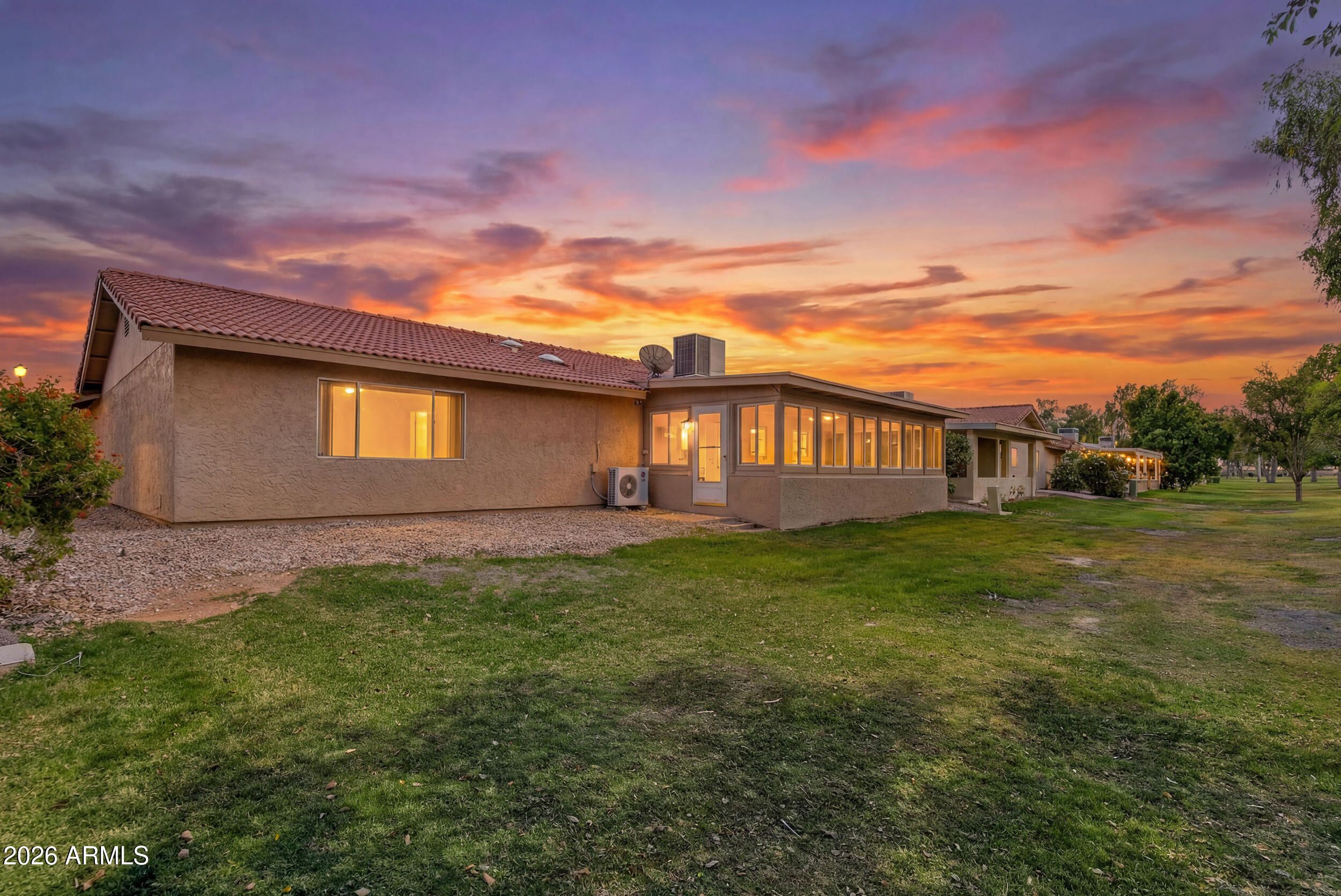 WELCOME TO THIS 2 BEDROOM, 2 BATH GOLF COURSE LOT HOME IN THE 55+ COMMUNITY OF LEISURE WORLD. Set along the 2ND HOLE of LEISURE WORLD COUNTRY CLUB, the backyard opens to sweeping golf course views and a quiet setting that is hard to find. The home offers SPACIOUS LIVING AREAS and a LARGE PRIMARY SUITE with great natural light, a WALK IN CLOSET, dual granite vanity, and walk in shower. The AIR CONDITIONED ARIZONA ROOM provides additional space to unwind, read, or gather with friends while enjoying the view. Out front, a WELCOMING COURTYARD with a WATER FEATURE creates a charming entry. The TWO CAR GARAGE includes built in cabinets for extra storage. Located near Banner Baywood Medical Center, shopping, dining, parks, and convenient access to the US 60 and Loop 202.