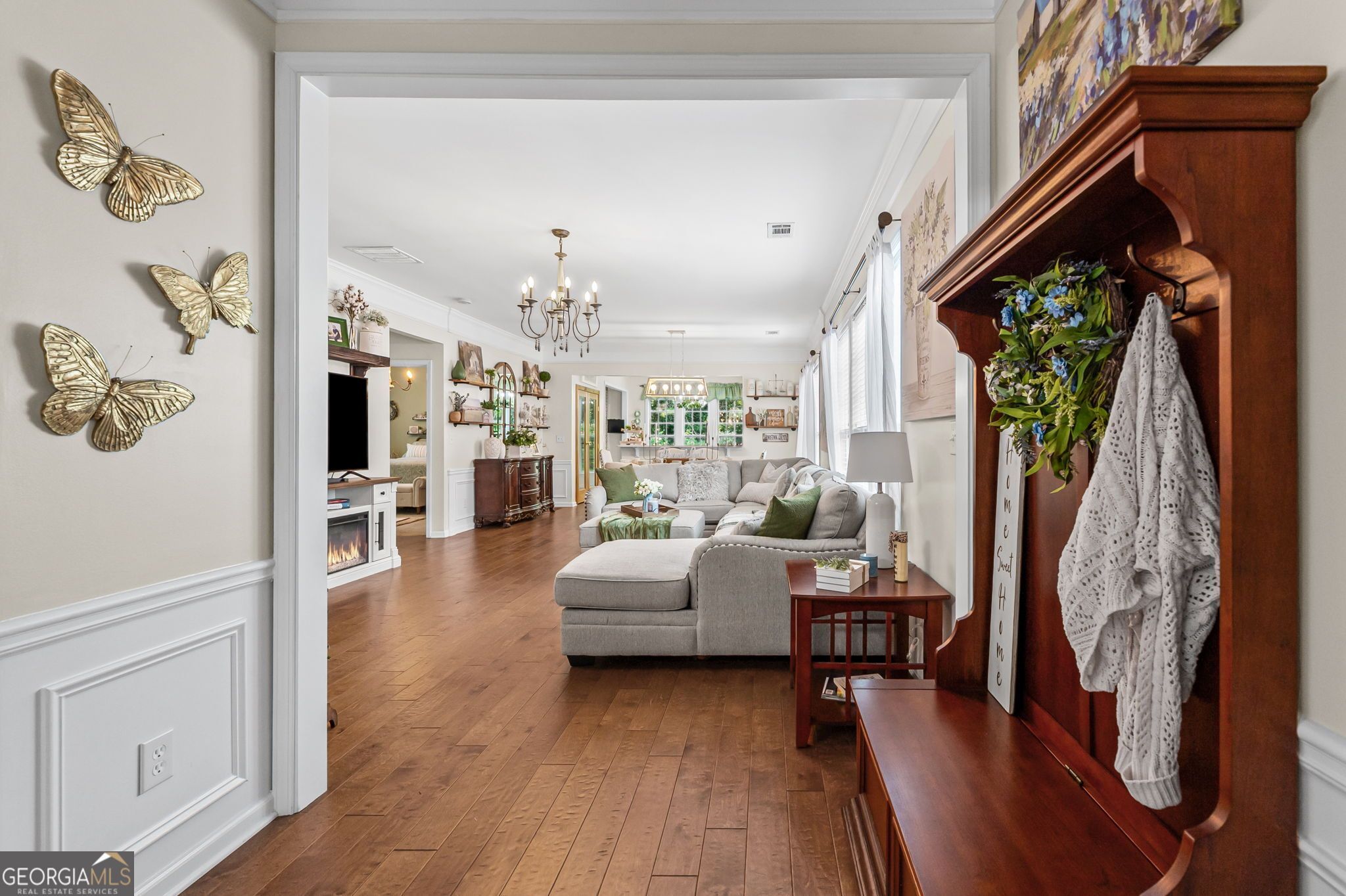 Looking for the WOW factor? Look no further this home is stunning! The seller is quite the decorator and has transformed this home into a showplace, and the yard will check all of those boxes, privacy, tranquility and beauty best describe it. The Pine Spring plan features 3 bedrooms, 2 full baths, office and large sunroom and is open concept. Featuring 5" hardwood floors, crown molding, new quartz counter tops, new sink, new stainless appliances and a new roof the shingles are architectural. A large Master suite with walk-in closet, the ensuite has double sinks, cultured marble, large shower. The garage has walk-up staircase with door. Custom painted cabinetry in kitchen and baths. The backyard has covered porch wpergola, water feature, wrought iron fence and lush vegetation which is very beautiful. Don't take my word for it a must see.