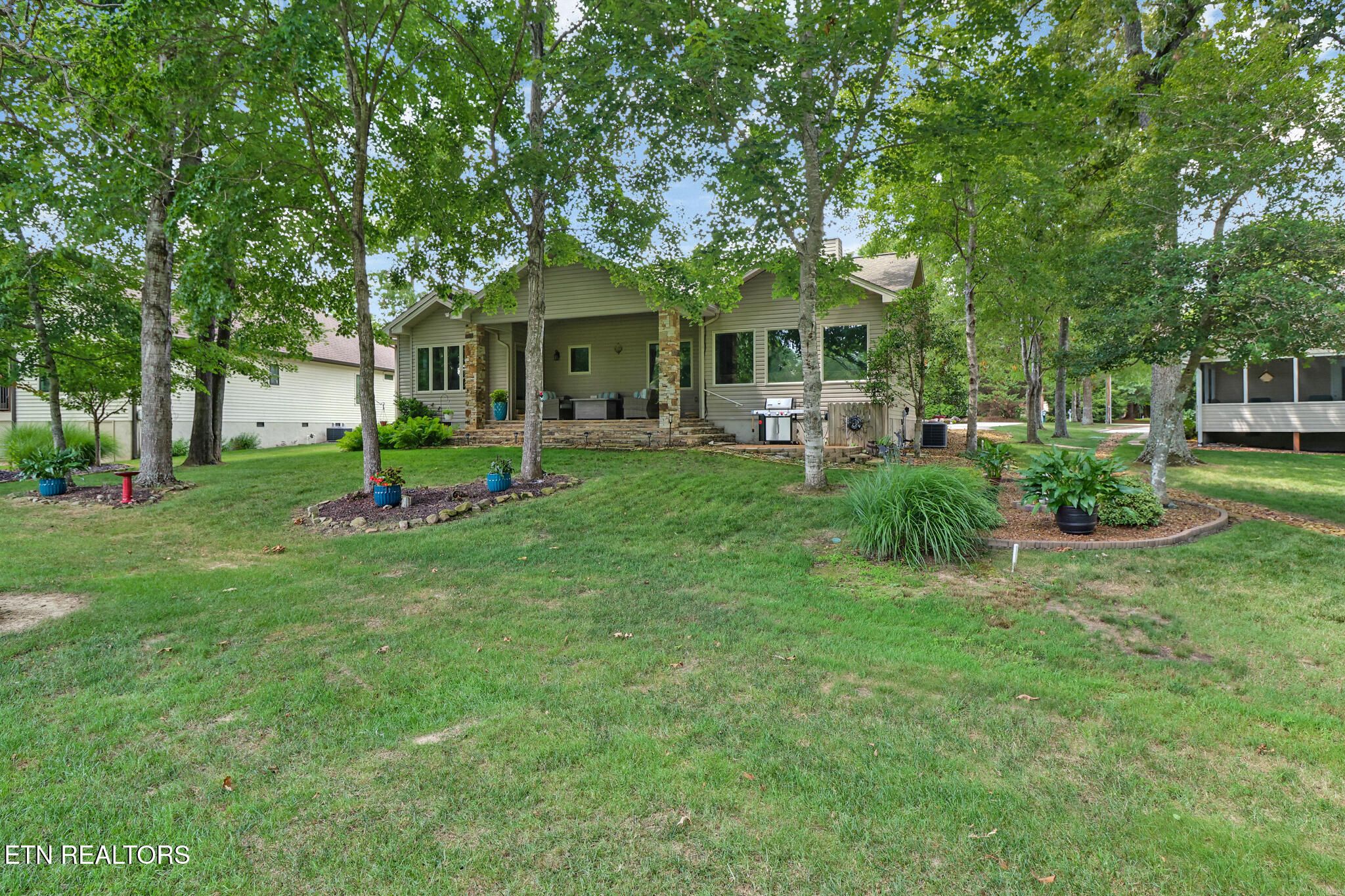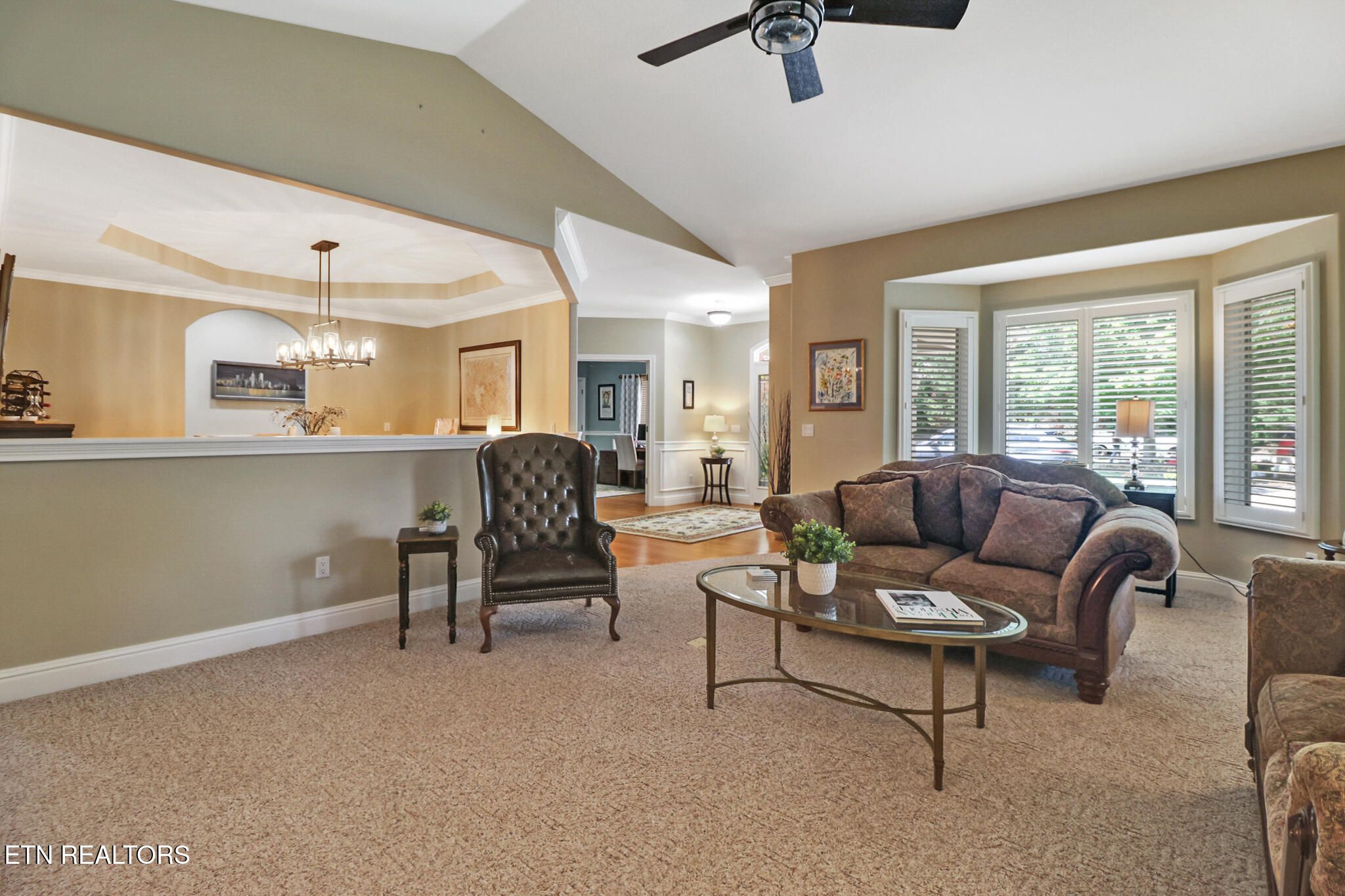 Elegant Golf-Front Ranch with Premium Views & Upscale Comforts! This beautiful 2,468 sq ft ranch-style retreat is located at the pristine 17th green of the sought-after Brae Golf Course. This meticulously maintained home combines timeless design, creating a warm and welcoming atmosphere inside and out. The lot has been newly landscaped, giving impressive curb appeal and has a charming covered entry with stone pillars. Step inside to the living room with vaulted ceilings, crown molding, and large picture windows that bathe the home in natural light while showcasing tranquil green views. A two-sided fireplace seamlessly connects the main living room and the sunroom, adding warmth and character. The main living area features a striking floor-to-ceiling stacked stone fireplace, perfect for cozy evenings or hosting guests in style. The sunroom offers lots of windows to enjoy the golf views, along with bookshelves and a new TV that conveys. The spacious kitchen boasts solid wood cabinetry, sleek solid-surface countertops, island, tile backsplash, and black appliances. A formal dining room with tray ceiling and an updated light fixture completes the entertaining space. The expansive master suite is a true haven, offering not one but two walk-in closets, large windows with serene golf course views, and a spa-like en-suite bath. Enjoy total comfort and functionality with plenty of space to unwind. Additional bedrooms are thoughtfully designed with ample closet space and natural light. The oversized garage is a car enthusiast's dream, featuring custom storage cabinets, epoxy-style floor, and plenty of room for tools or recreational gear. A repainted dog run/fence is located outside the garage door. The crawl space has been encapsulated. The backyard is a private sanctuary, featuring a spacious covered patio, gas firepit, and new patio furniture and gas grill that convey with the home. Enjoy peaceful views of the manicured golf course just steps away from your door, but far enough to give you privacy. Whether you're an avid golfer, entertainer, or nature lover, this exceptional property is a rare find—combining elegant living with unbeatable views and amenities. A list of upgrades and items that stay with the home are in the MLS documents. Schedule your showing today!